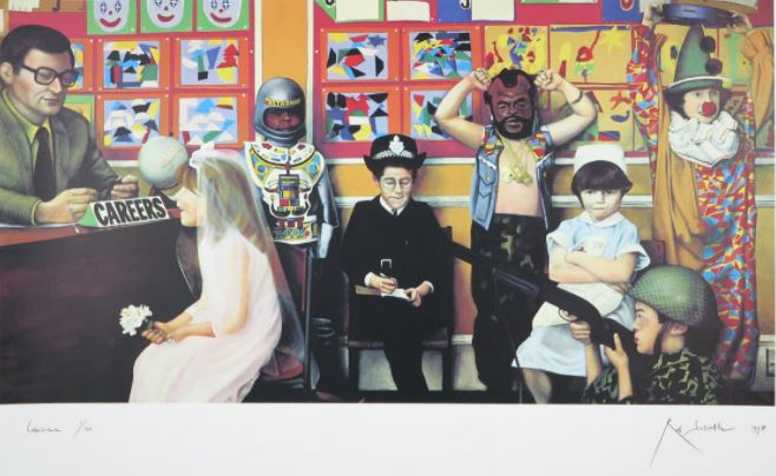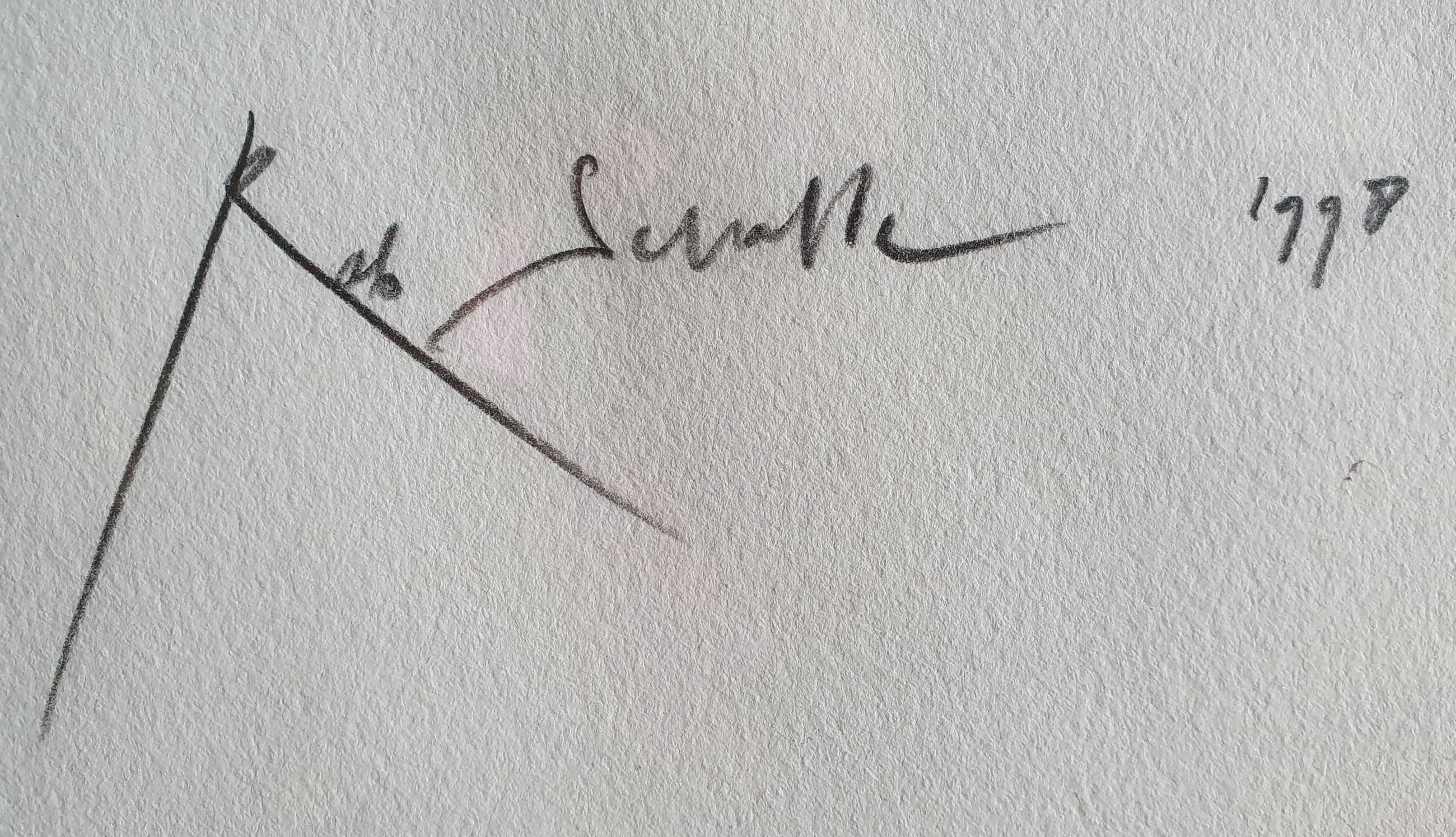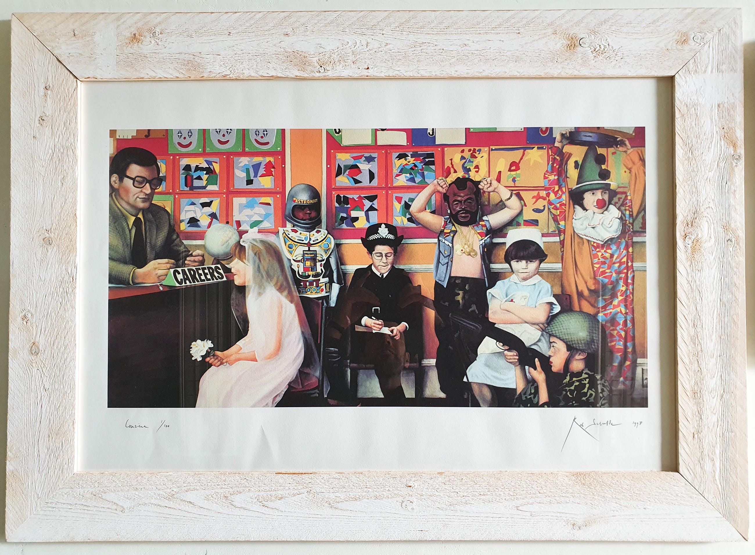 Fraaie grote zeefdruk getiteld 'Carrière' van de hand van Rob Scholte, gesigneerd en genummerd in potlood. Dit is nummer 1 in een oplage van 100 exemplaren. Het geheel is gevat achter museumglas in mooie brede gebleekt houten lijst.