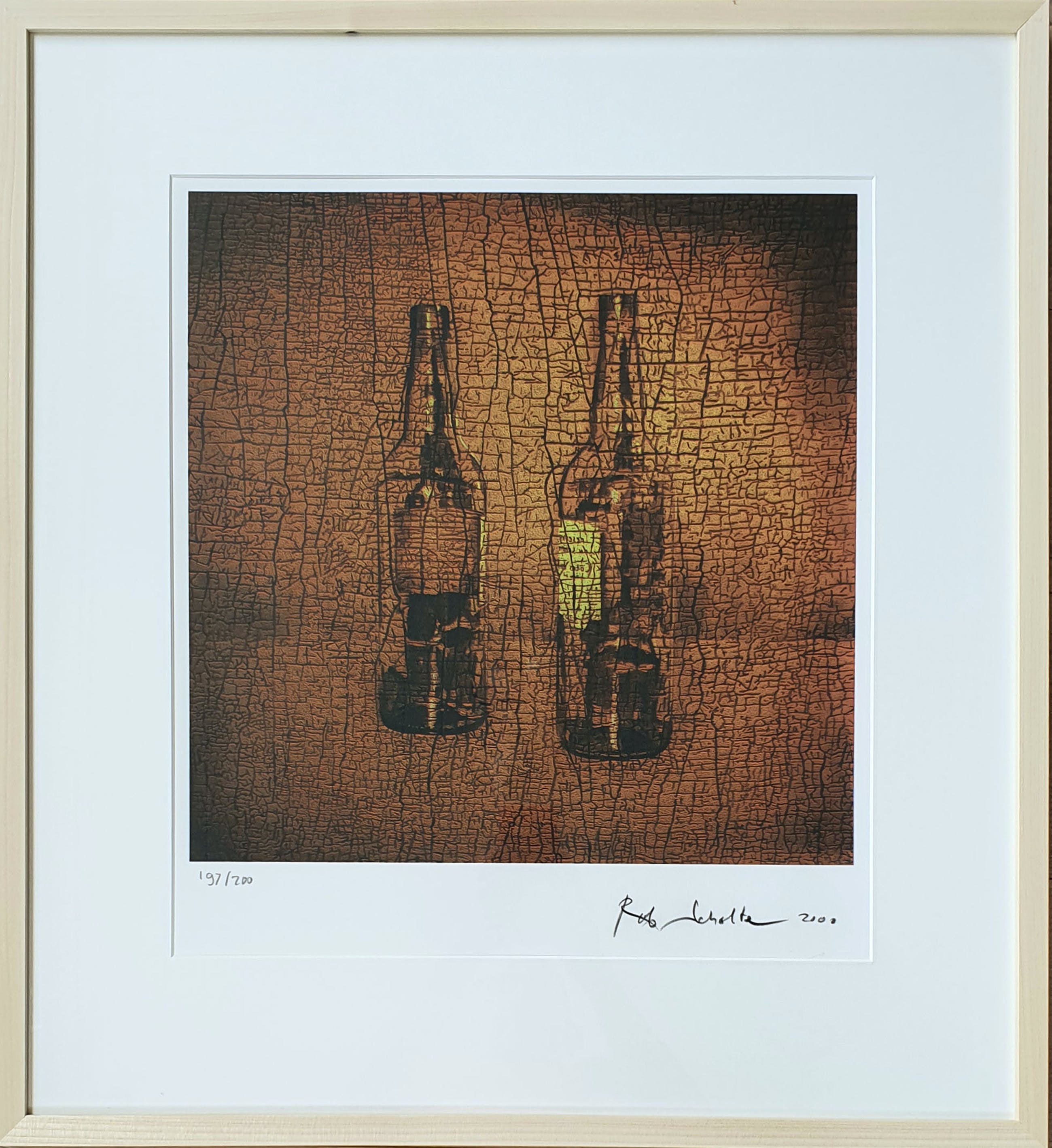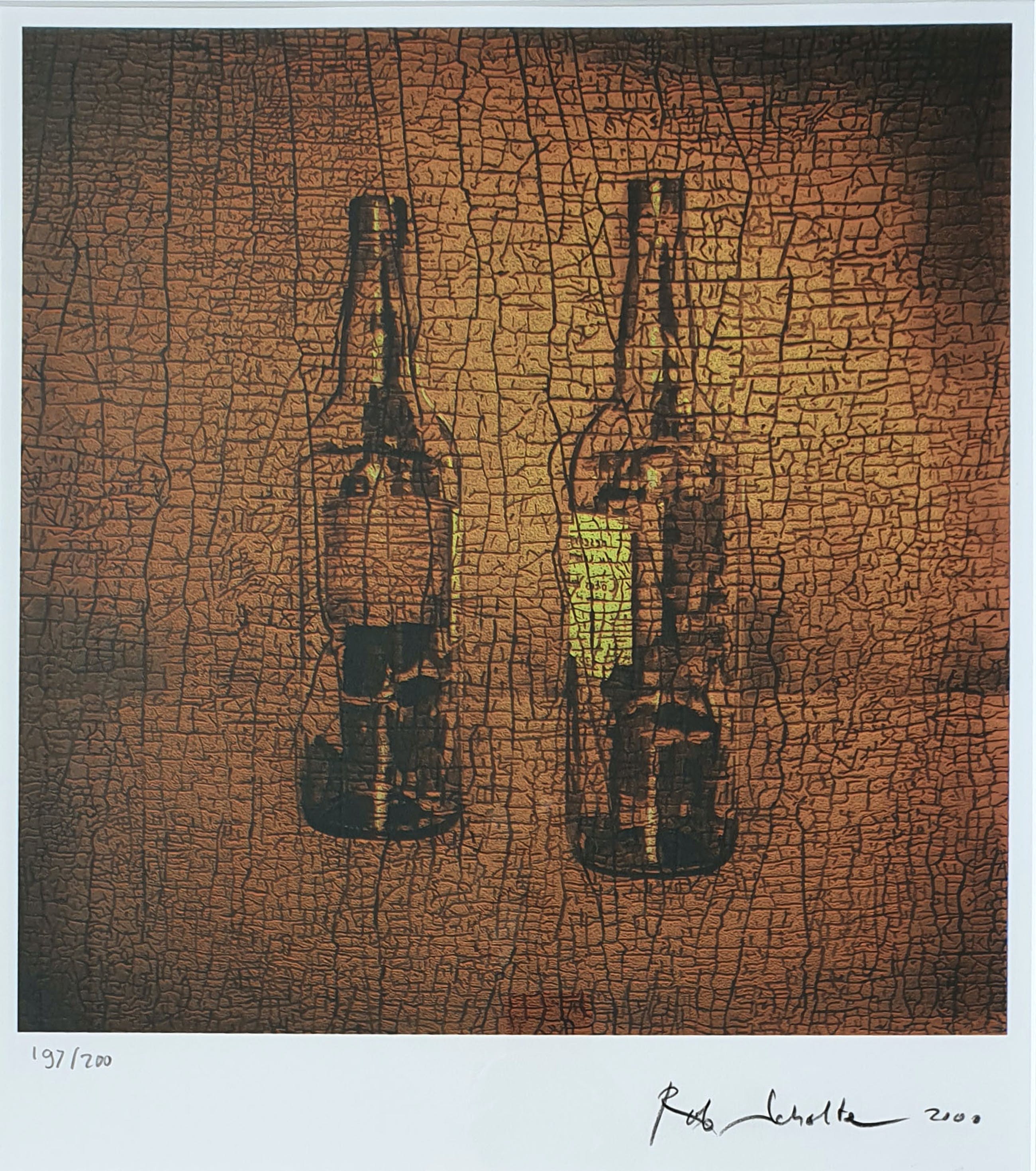 Fraaie zeefdruk uit de serie "Mis en bouteille dans Noscaves" van Rob Scholte. Het werk is handgesigneerd en genummerd door de kunstenaar.
