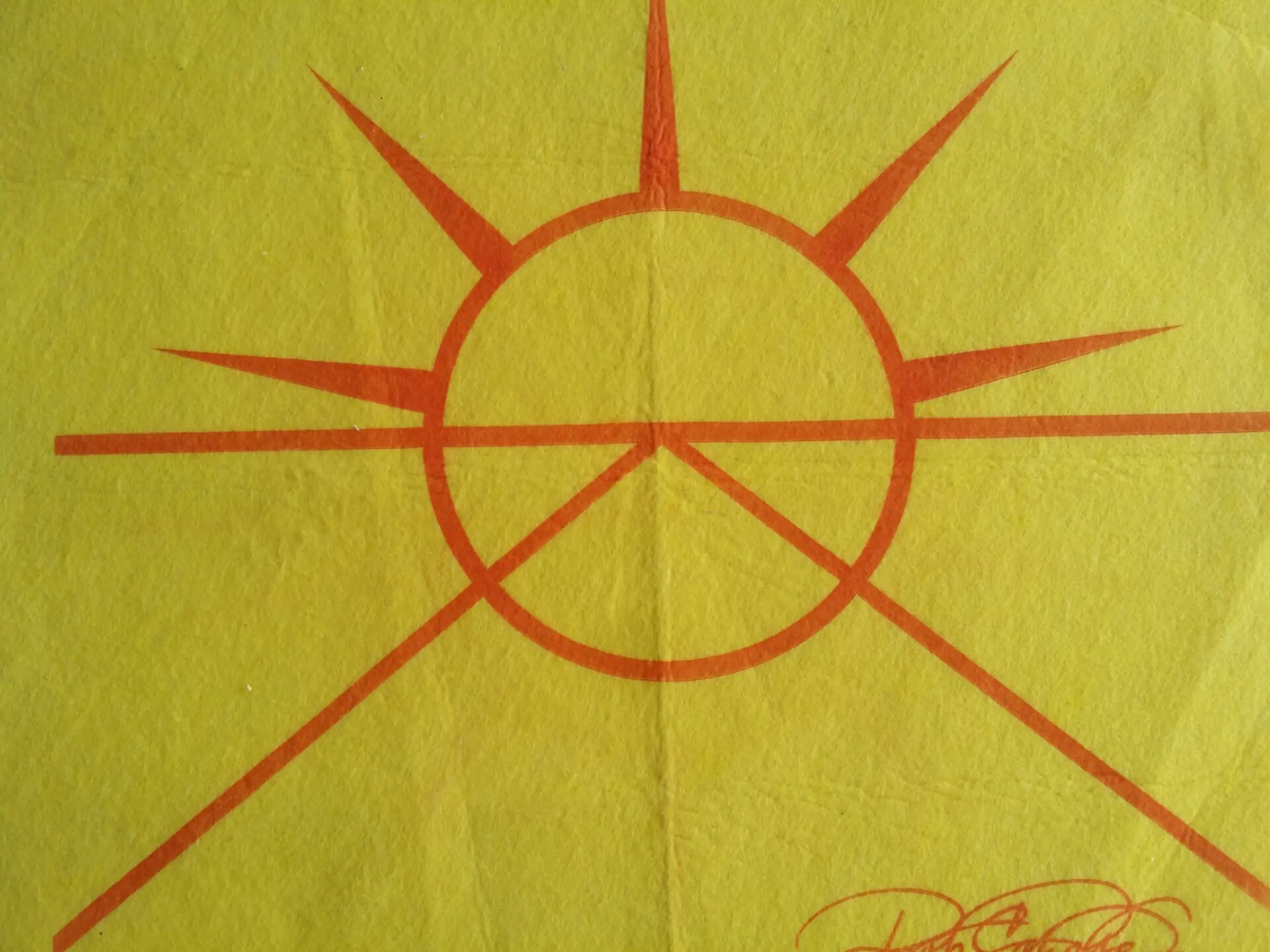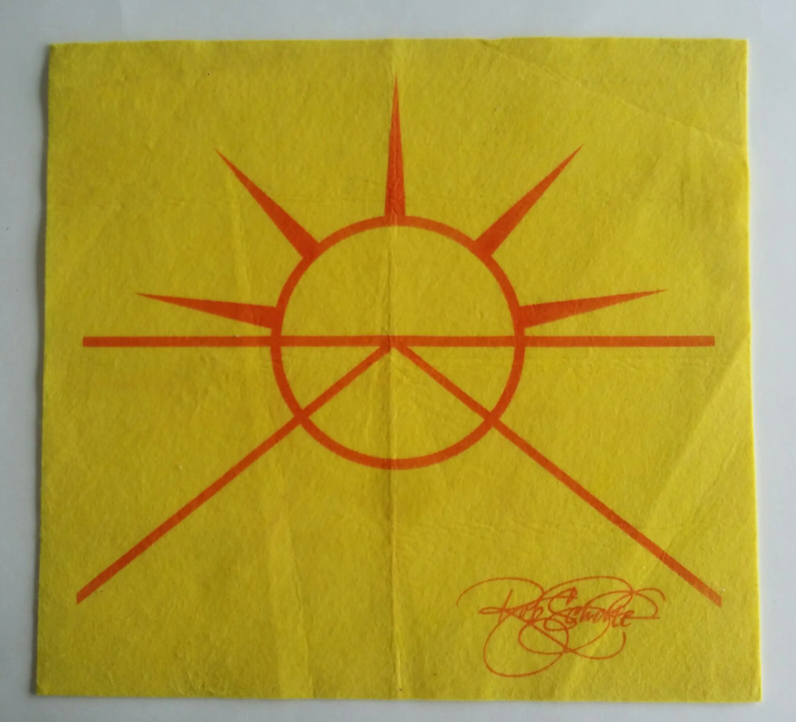 Uniek object. Logo serie Golden Horizon op doek. Materiaal zoals schoonmaakdoek.