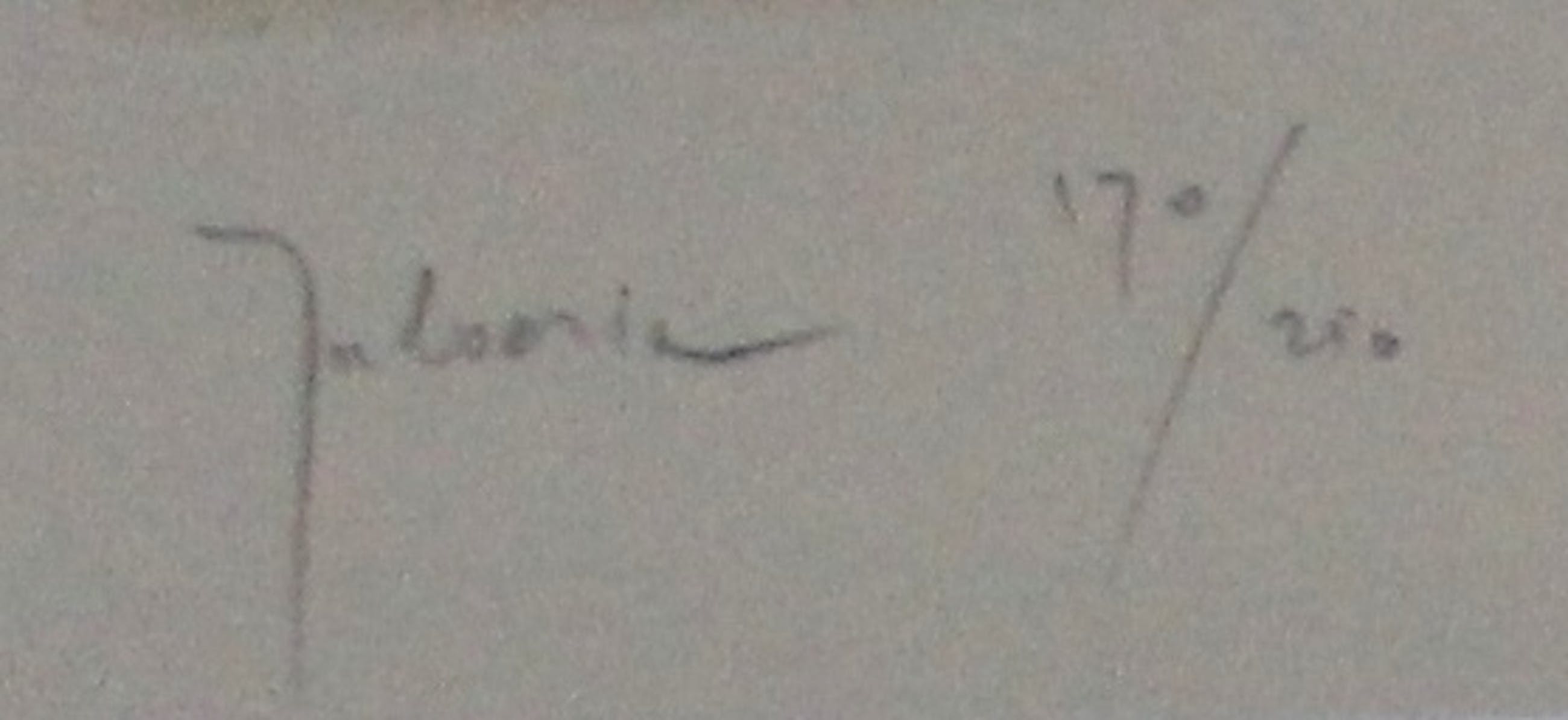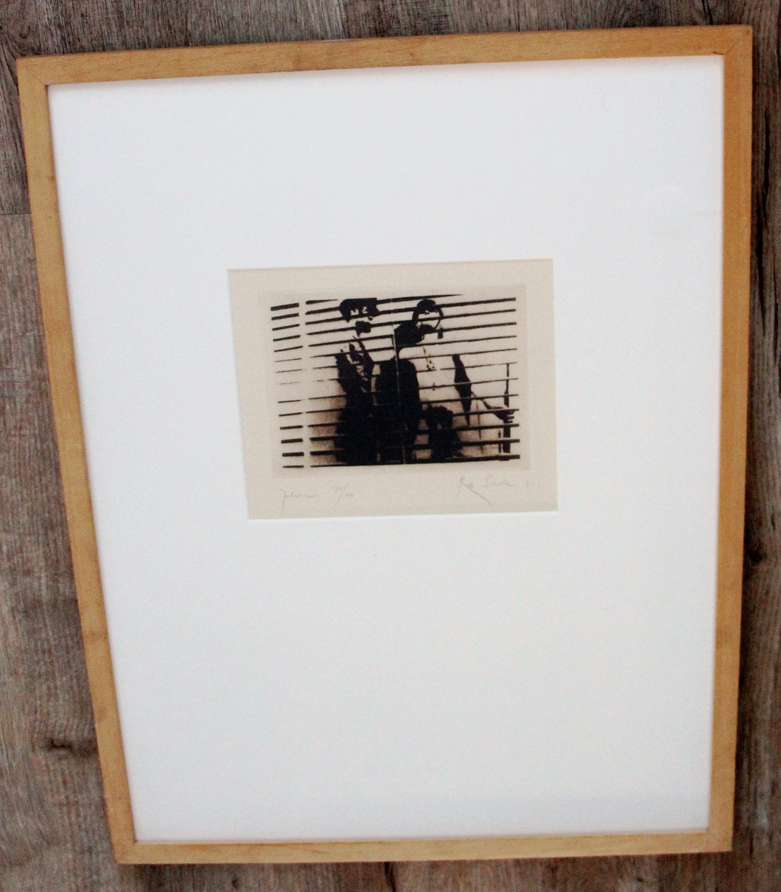 Strakke, spannende compositie van Rob Scholte. Ets op geschept papier. Titel: Jaloezie. Jaar: 1994. Nummer: 170/250. Afmetingen incl lijst: H68 x b52.5cm. Afmetingen voorstelling: H24 x b20cm. Het werk is rechts onderaan gesigneerd door de kunstenaar. De authenticiteit van het aangeboden werk wordt volledig gegarandeerd. Een certificaat van echtheid kan, op aanvraag, worden gemaild.