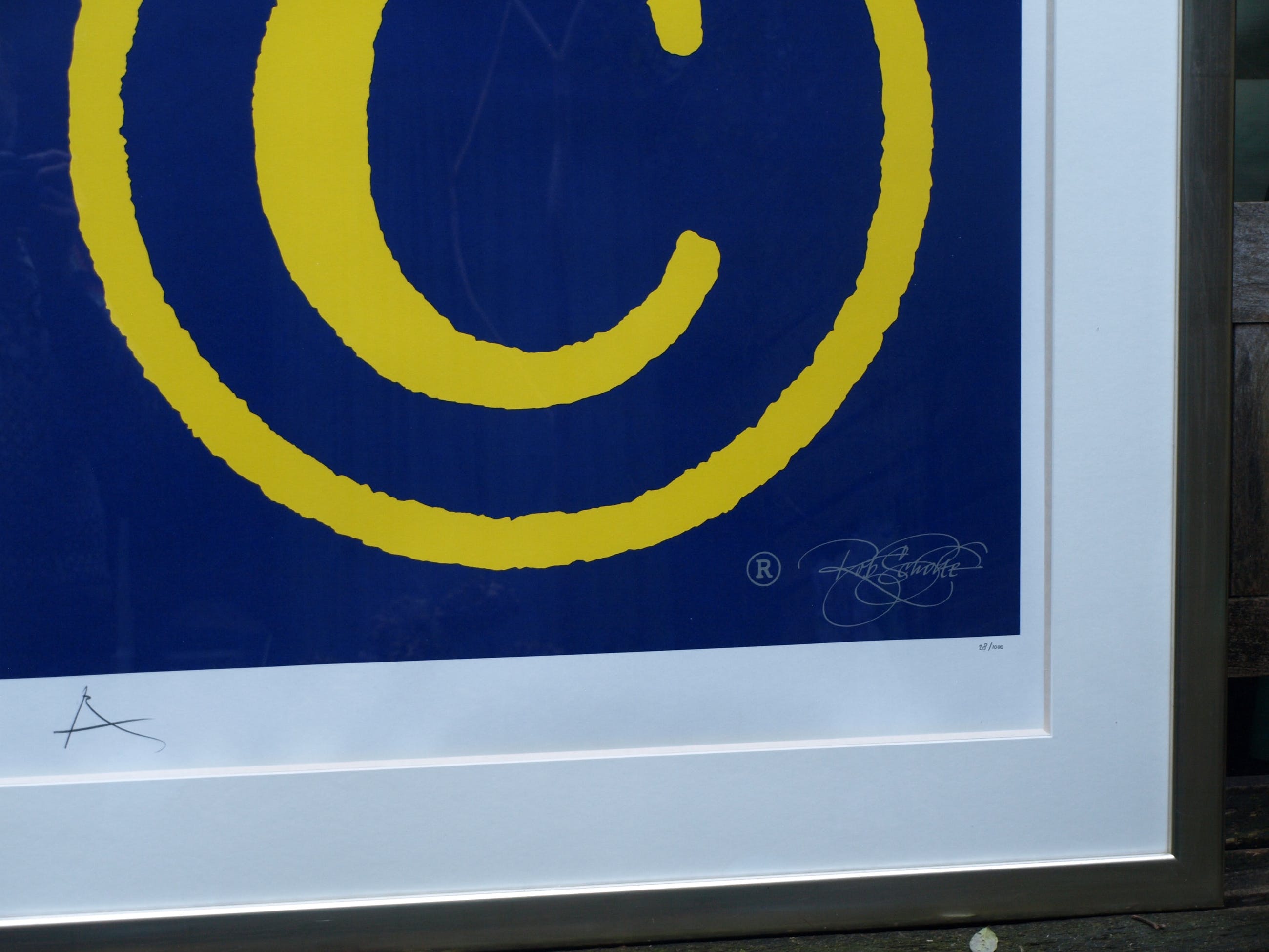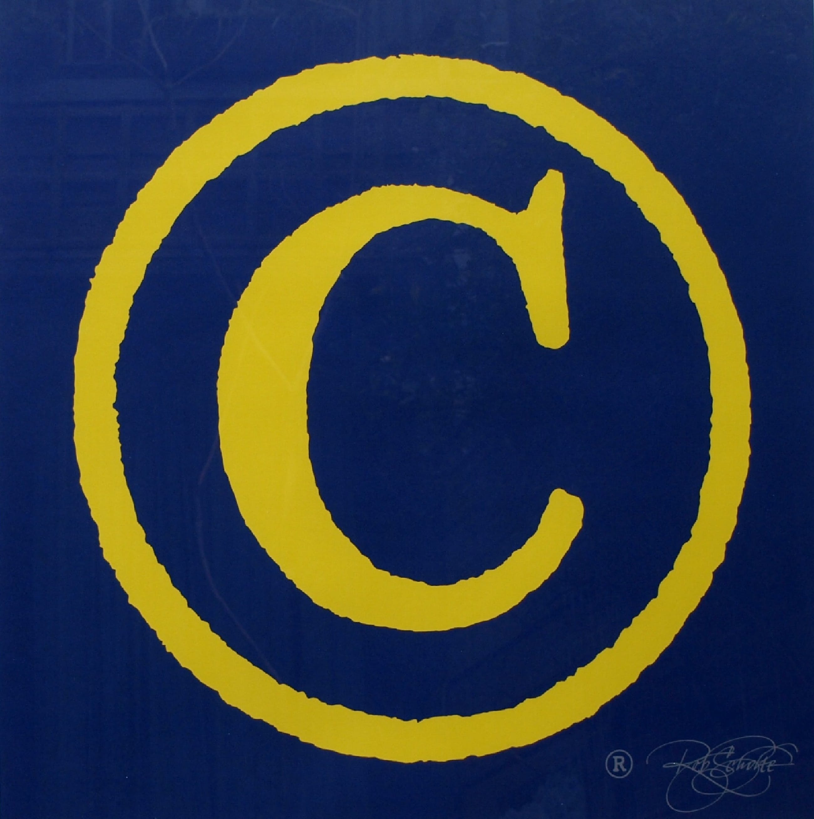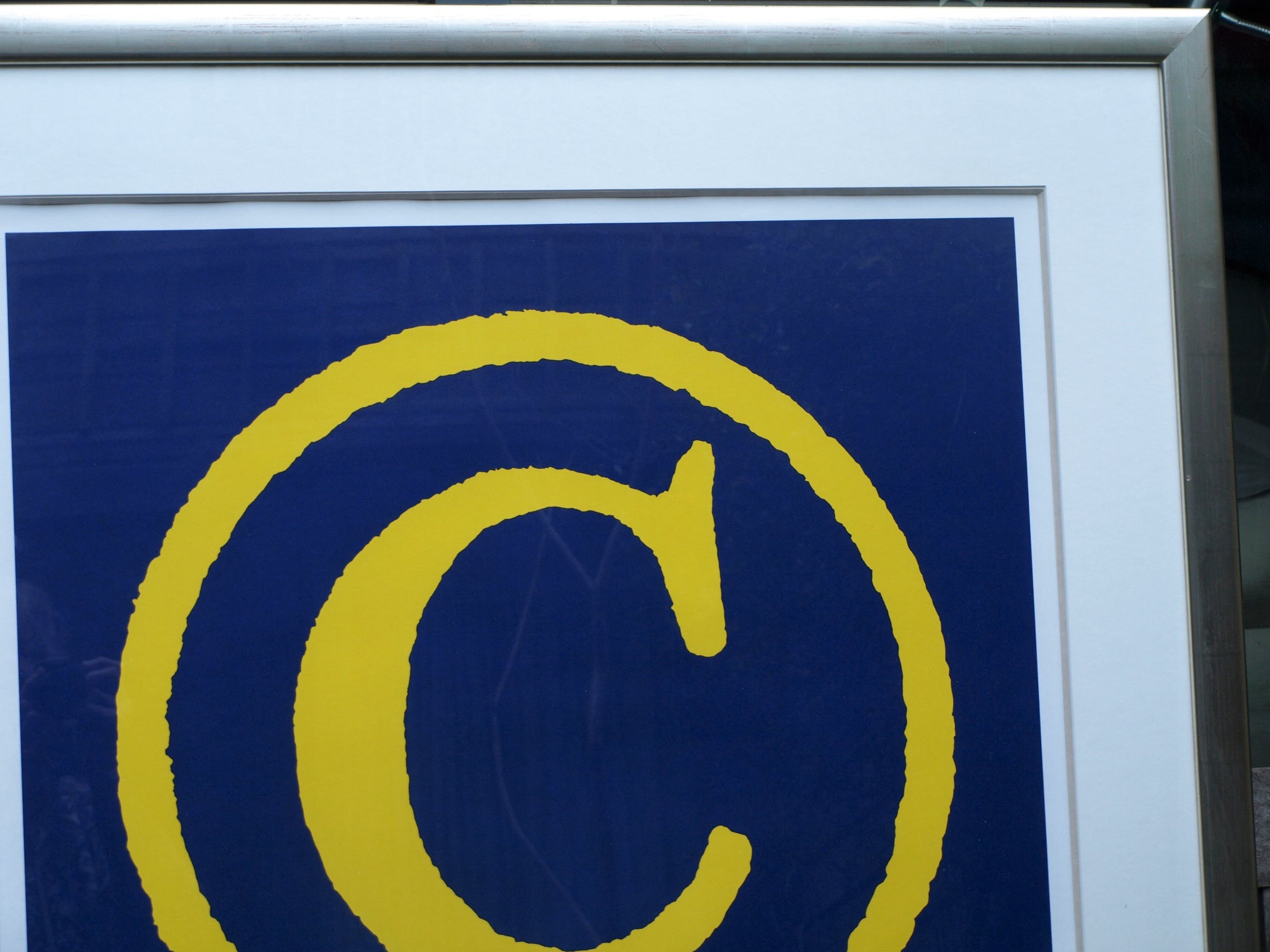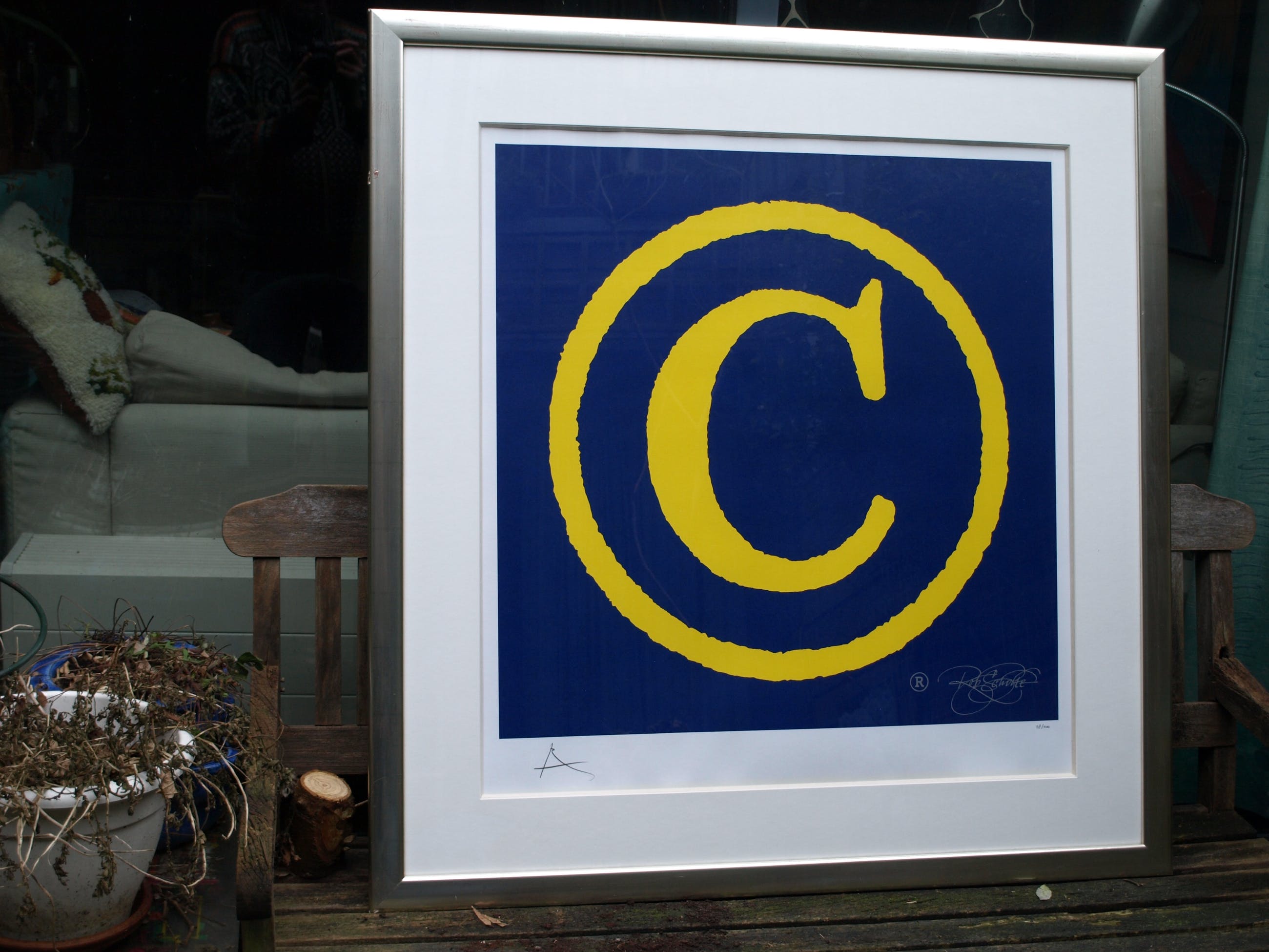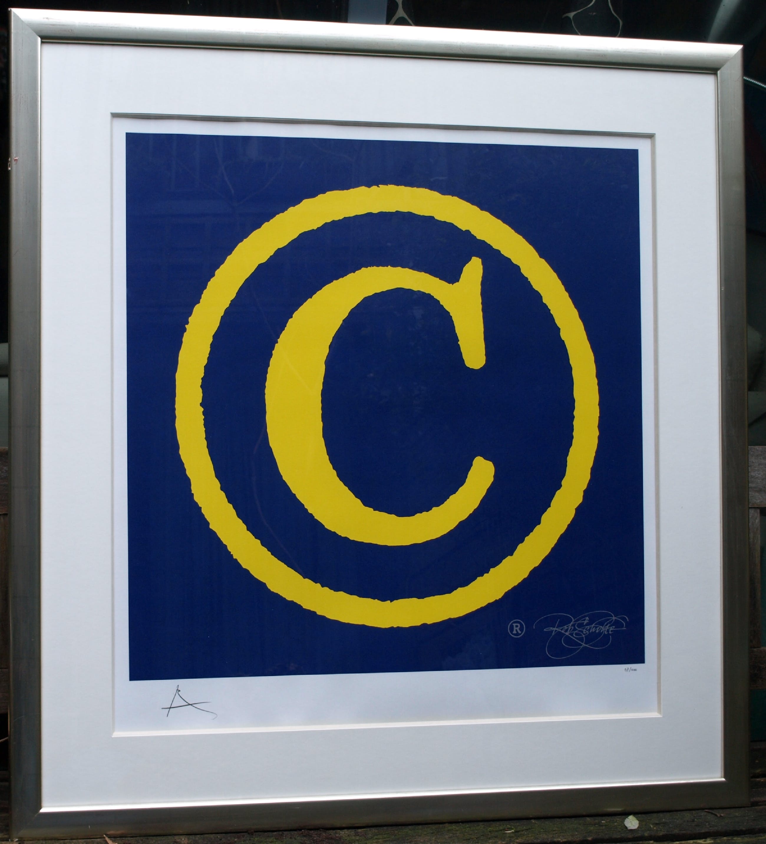 Een grote ingelijste zeefdruk van de Nederlandse kunstenaar Rob Scholte (1958), getiteld “Copyright”. Momenteel is in Museum De Fundatie in Zwolle een mooi tentoonstelling over deze bijzondere kunstenaar: ‘Reproductie Verplicht’. Deze tentoonstelling is t/m 3 april.