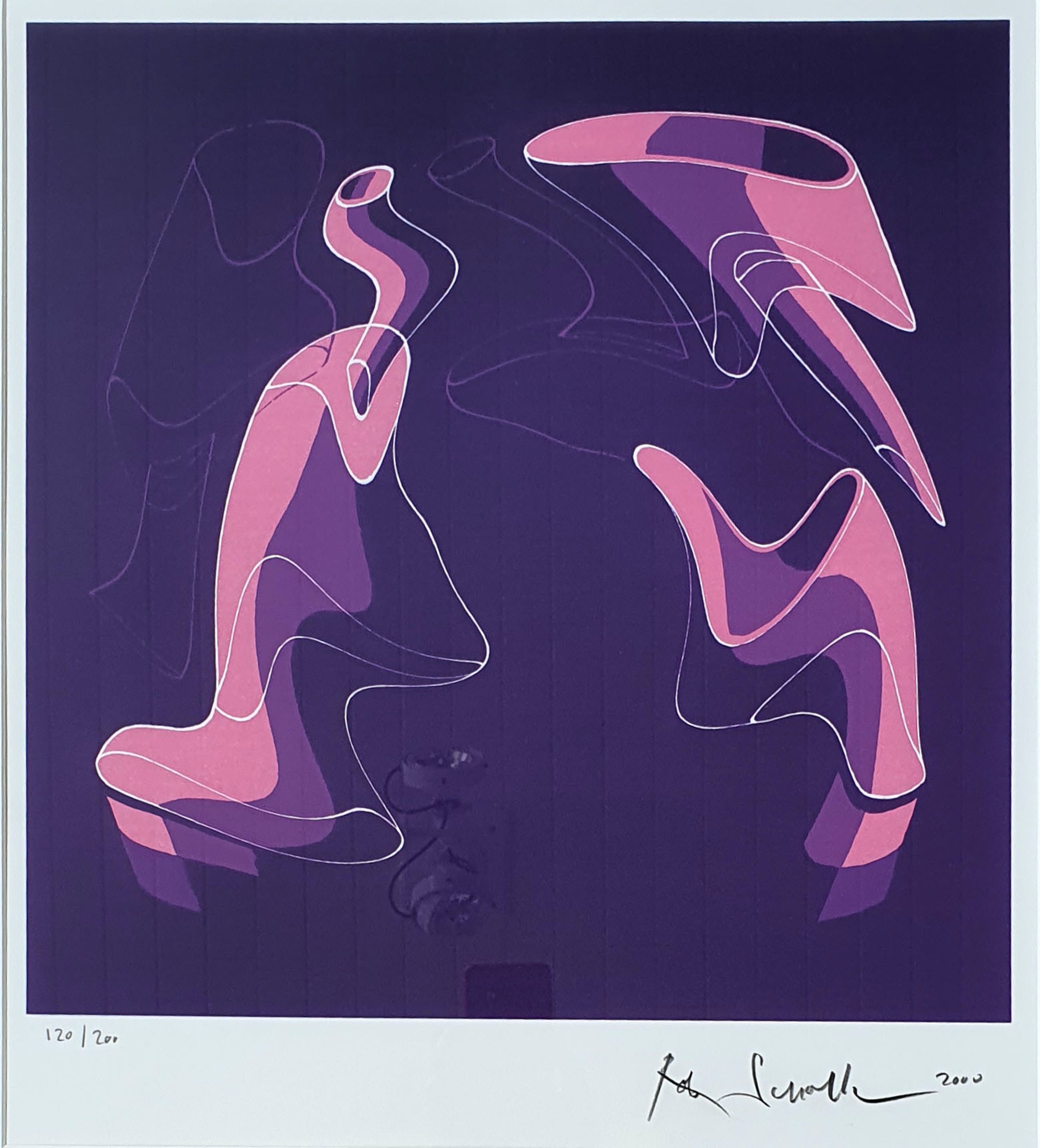 Fraaie zeefdruk uit de serie "Mis en bouteille dans Noscaves" van Rob Scholte. Het werk is handgesigneerd en genummerd door de kunstenaar.