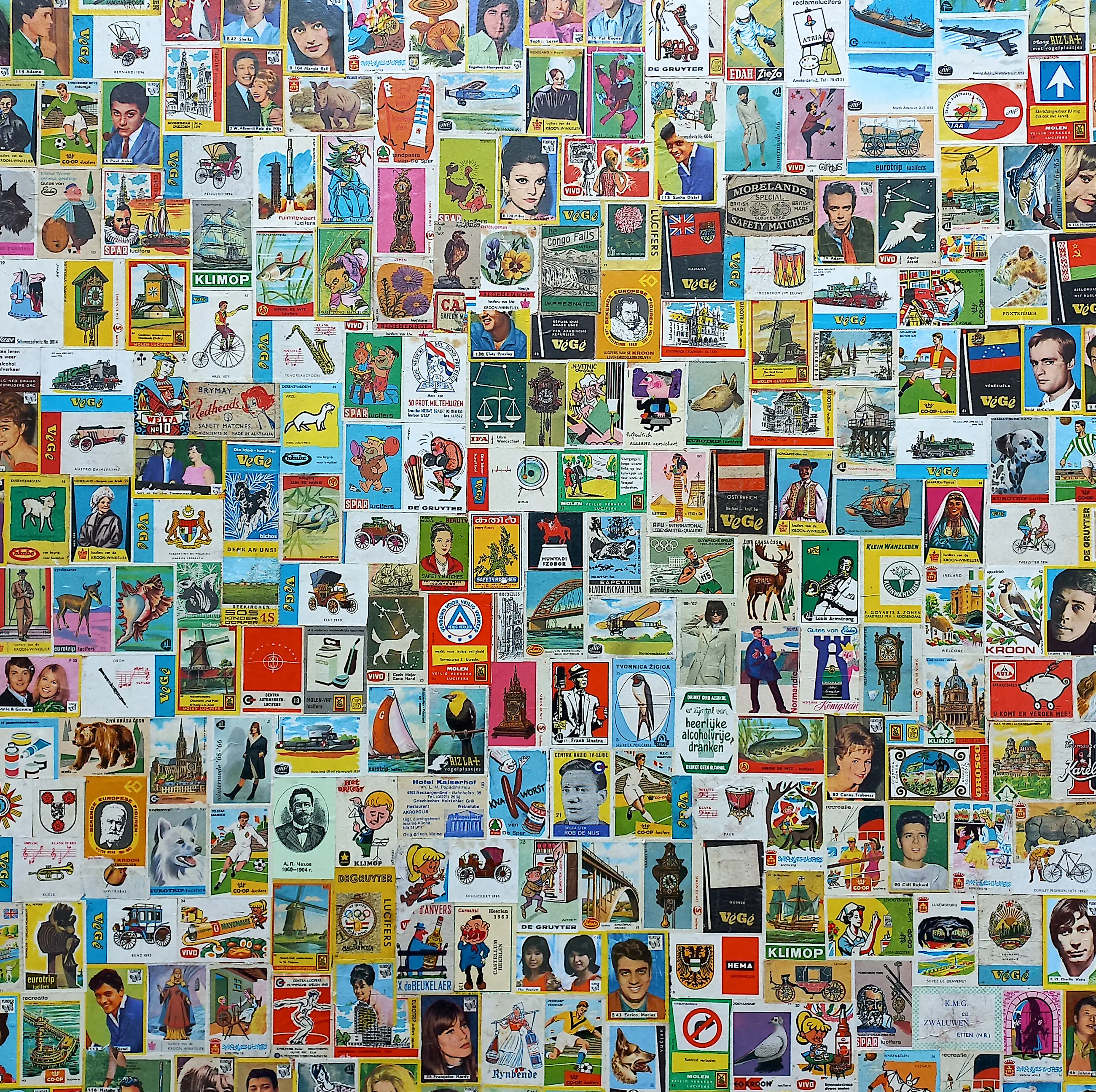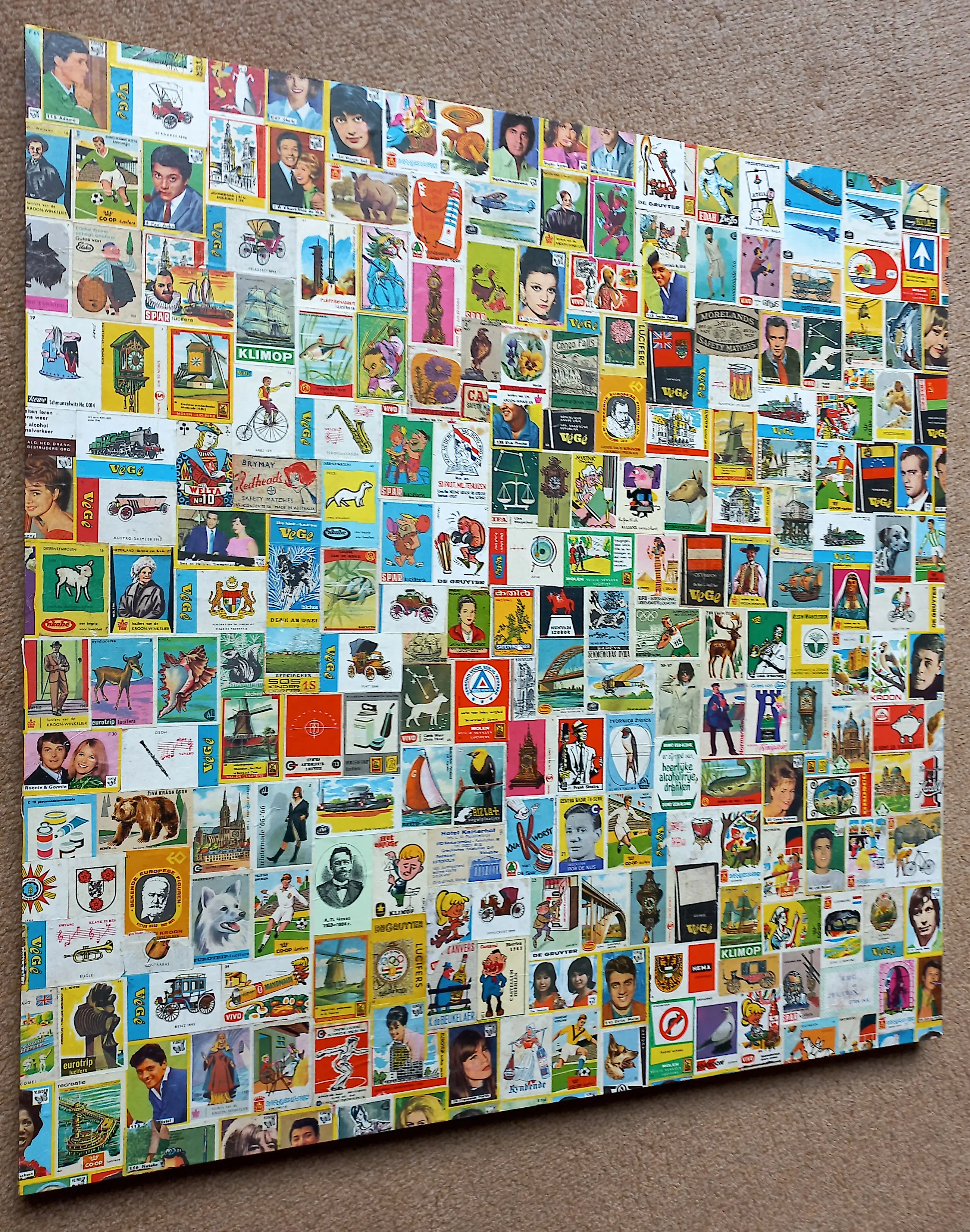 Originele, karakteristieke collage van Rob Scholte. Dus geen print of een replica maar een originele collage van honderden plaatjes en etiketten op een houten paneel geplakt door Scholte zelf. In verso met marker gesigneerd, getiteld en gedateerd (2008). In zeer goede conditie. Herkomst: Rob Scholte Museum.