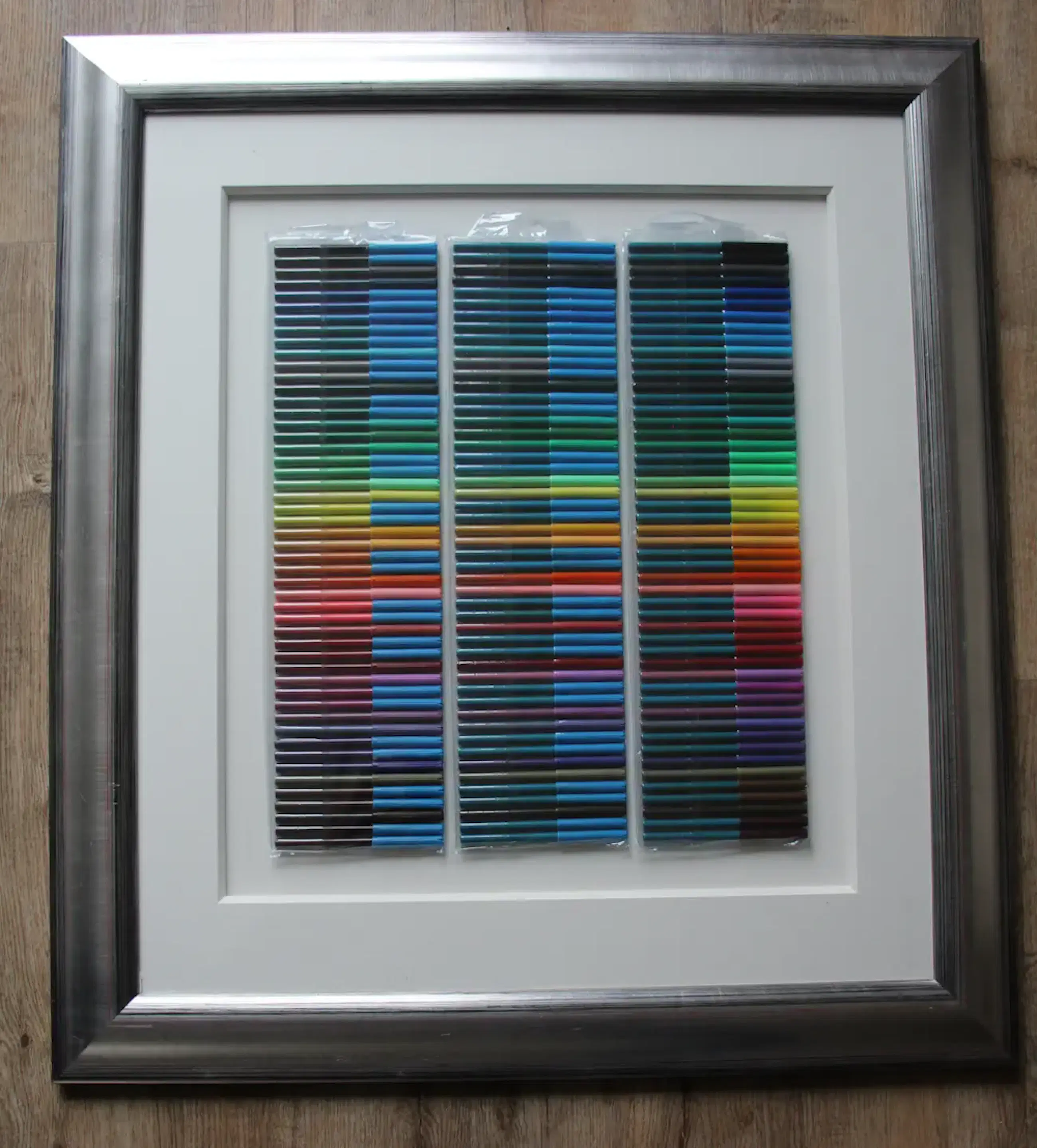 Schitterende, originele collage van viltstiften in hun verpakking door Rob Scholte, in verso met ballpoint gesigneerd, getiteld (Made in China 7.3.3) en gedateerd (2004). . Herkomst: Rob Scholte Museum.