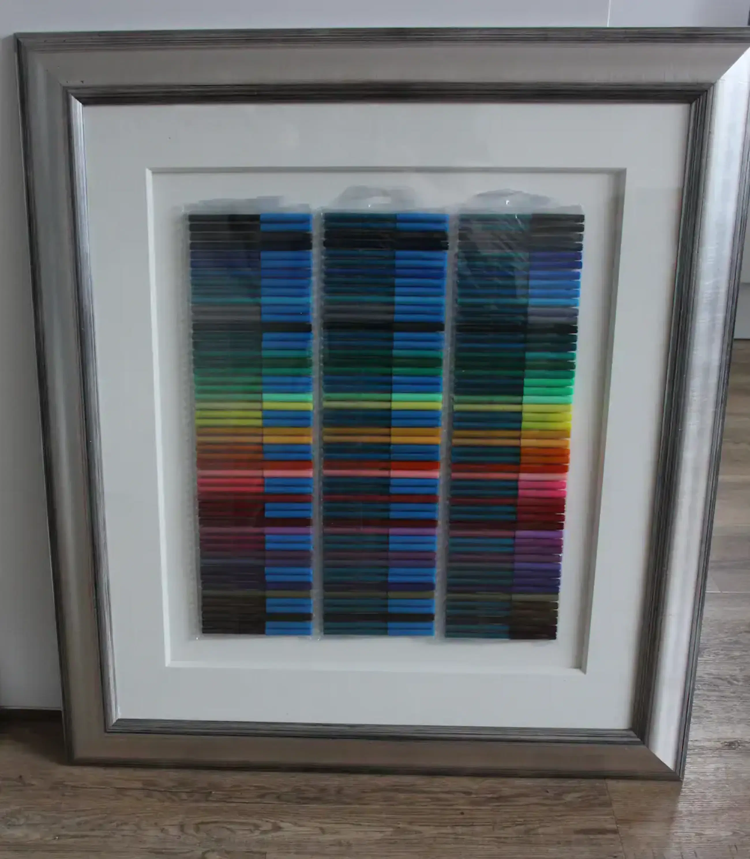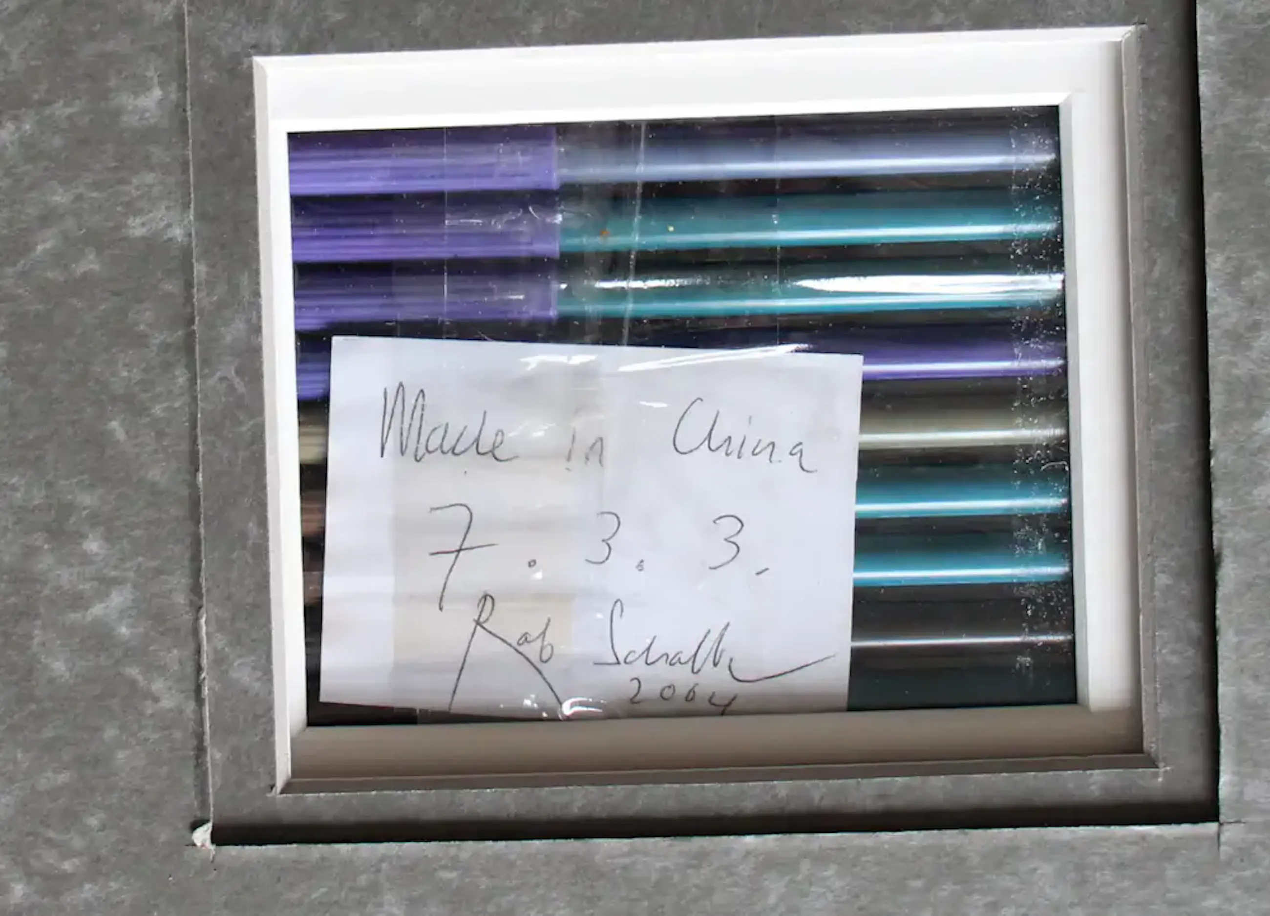 Schitterende, originele collage van viltstiften in hun verpakking door Rob Scholte, in verso met ballpoint gesigneerd, getiteld (Made in China 7.3.3) en gedateerd (2004). . Herkomst: Rob Scholte Museum.