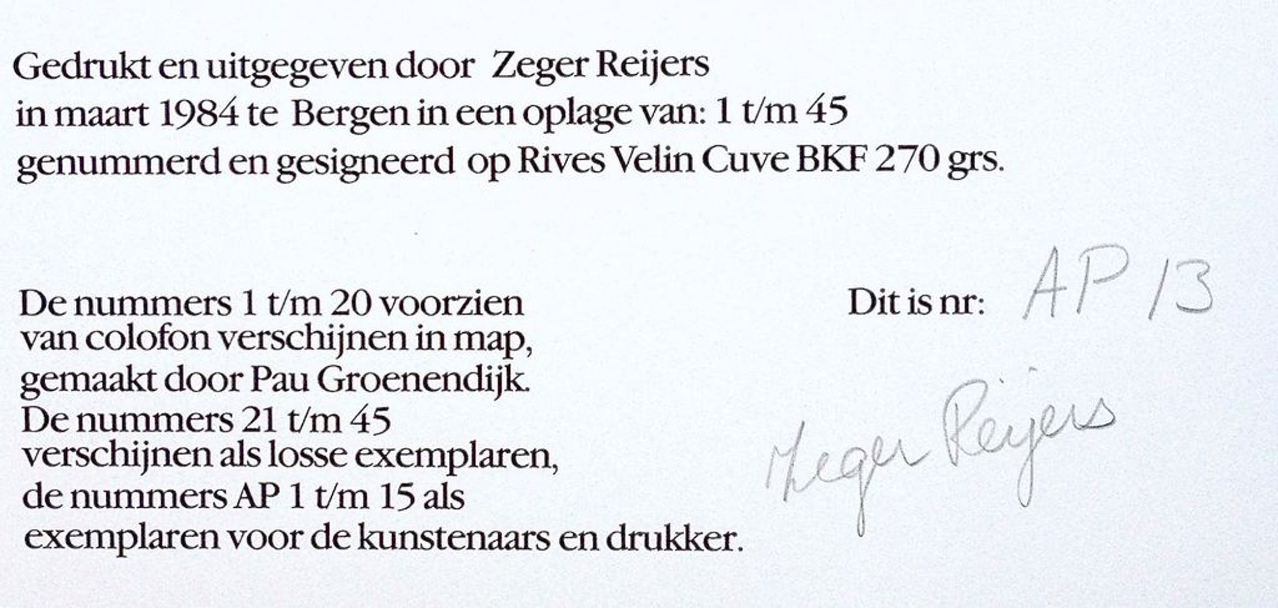 Provenance: map uitgegeven door meesterdrukker Zeger Reijers, zie authentificatie afb. 2.