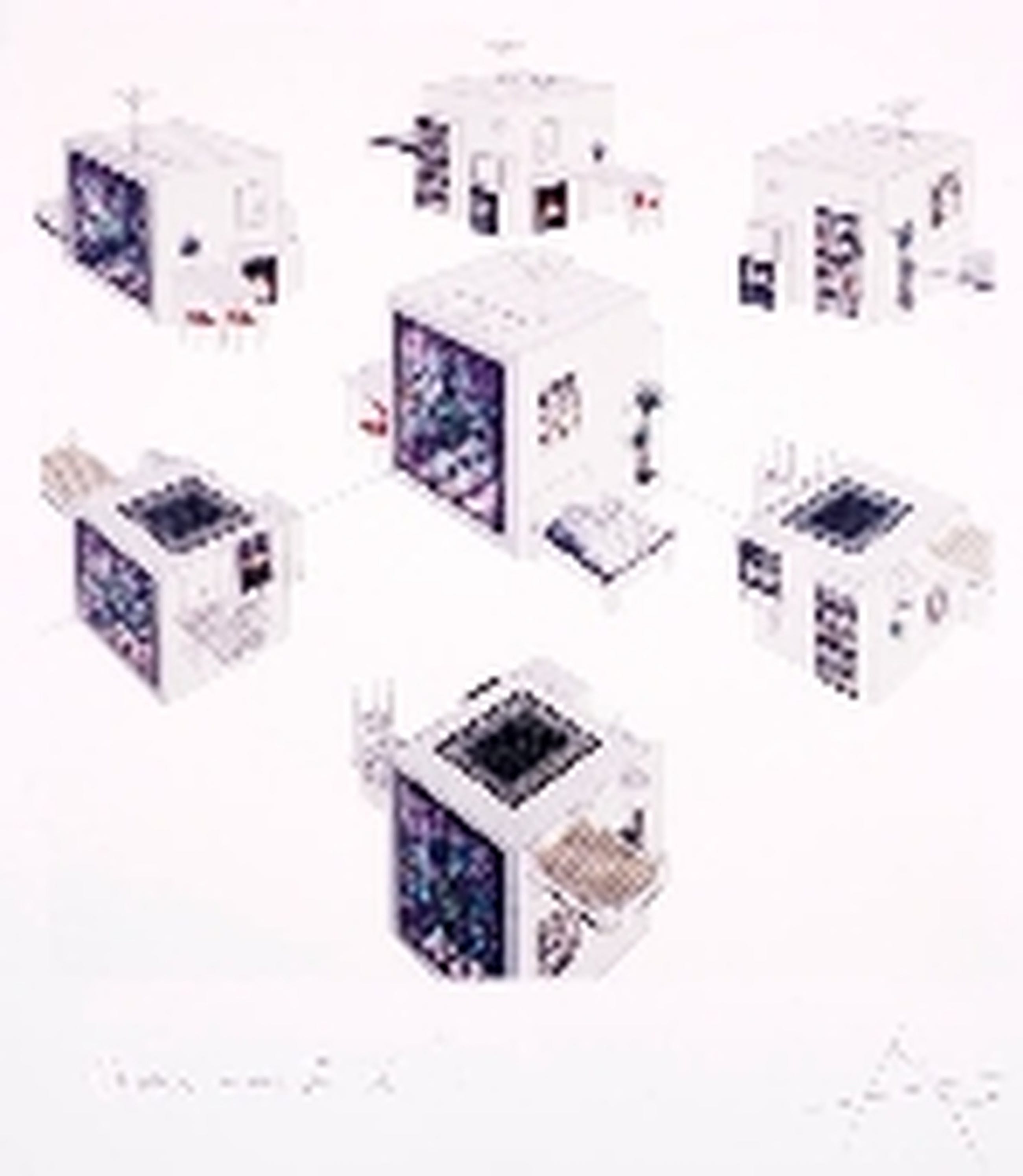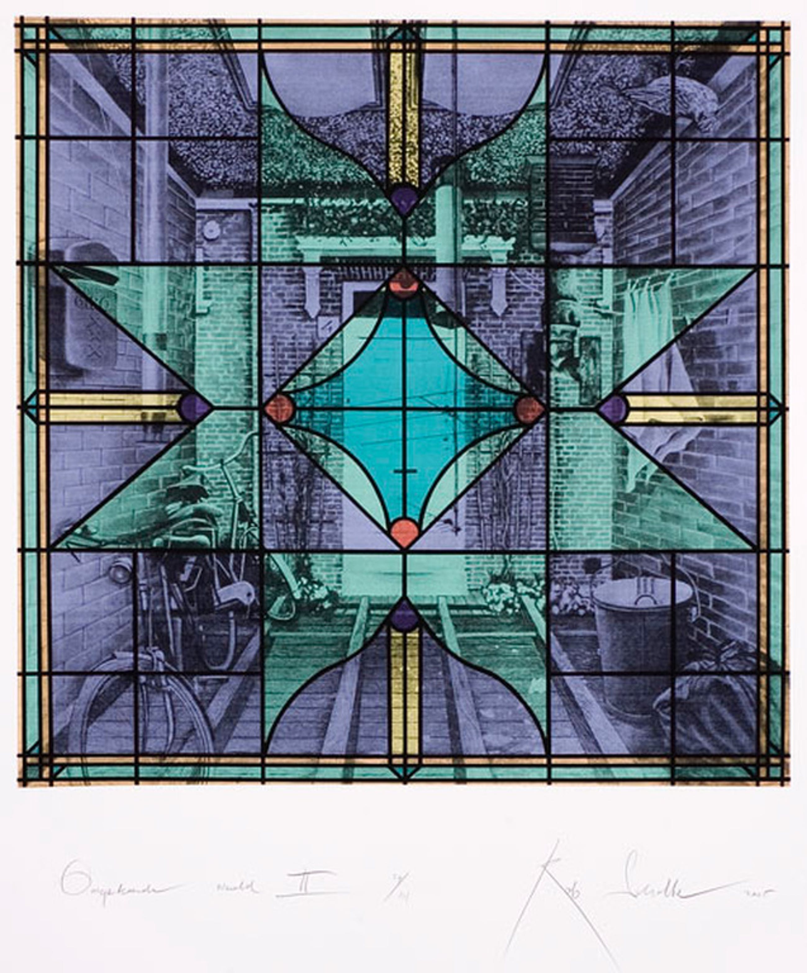 Rob Scholte: 2 Zeefdrukken: Omgekeerde wereld I en 2. ingelijst.