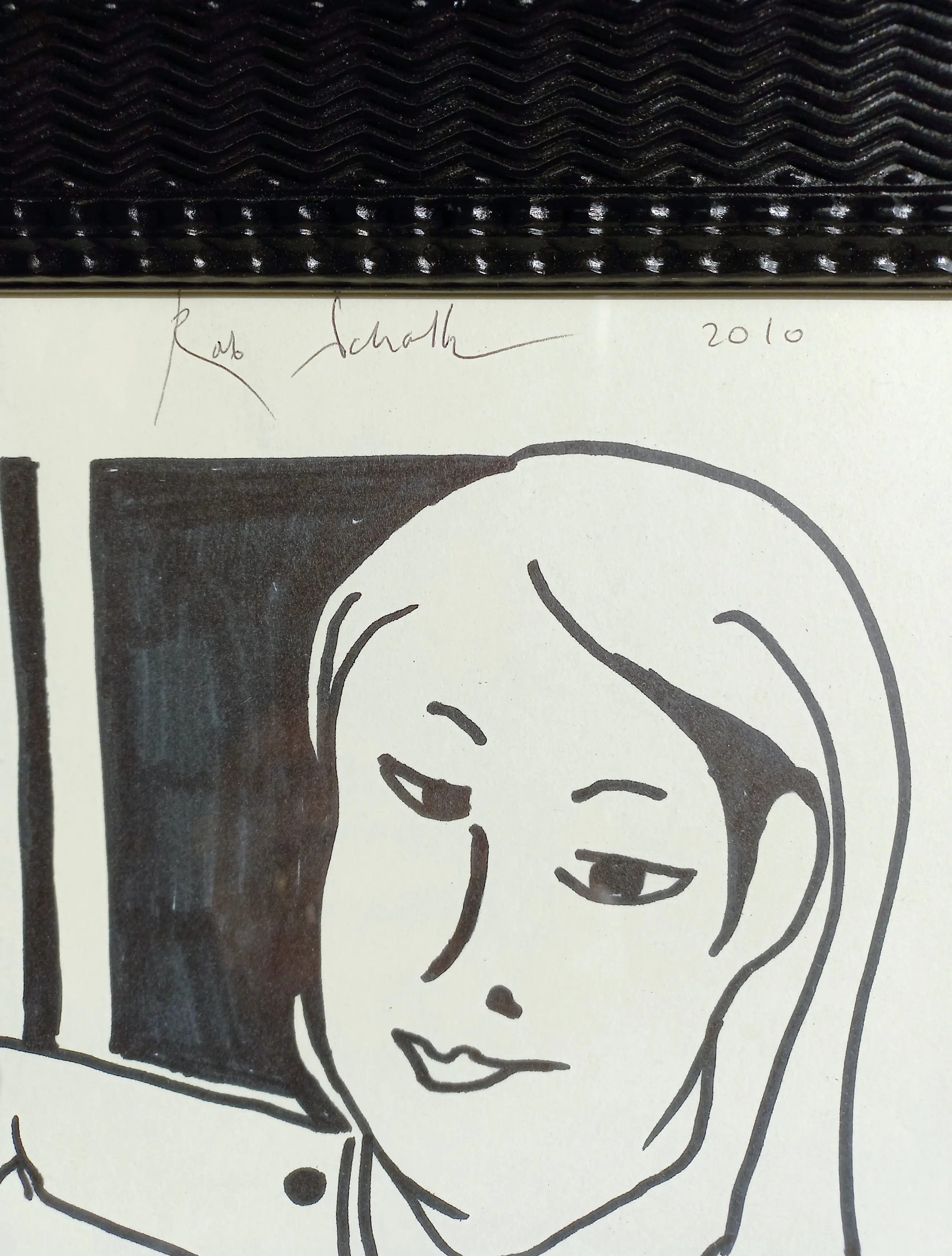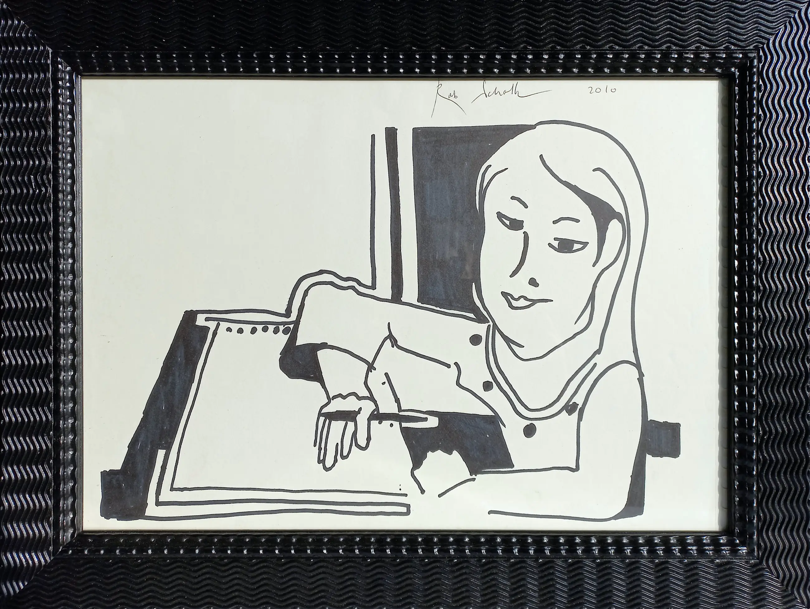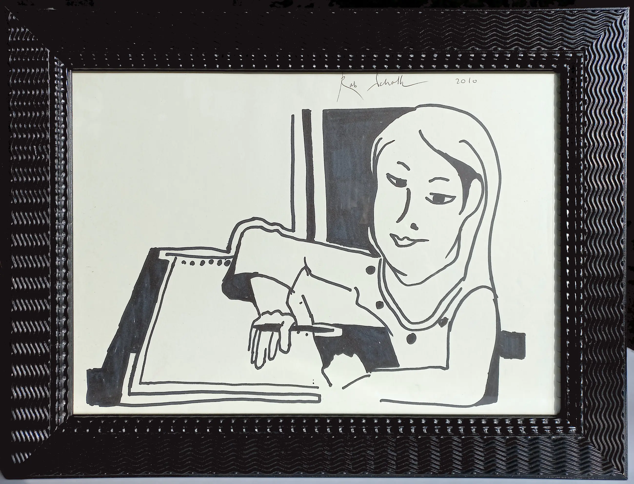 Originele tekening met viltstift van Rob Scholte, met ballpoint gesigneerd en gedateerd (2010). Professioneel ingelijst, achter glas. Alles in uitstekende conditie. Herkomst: Rob Scholte Museum.