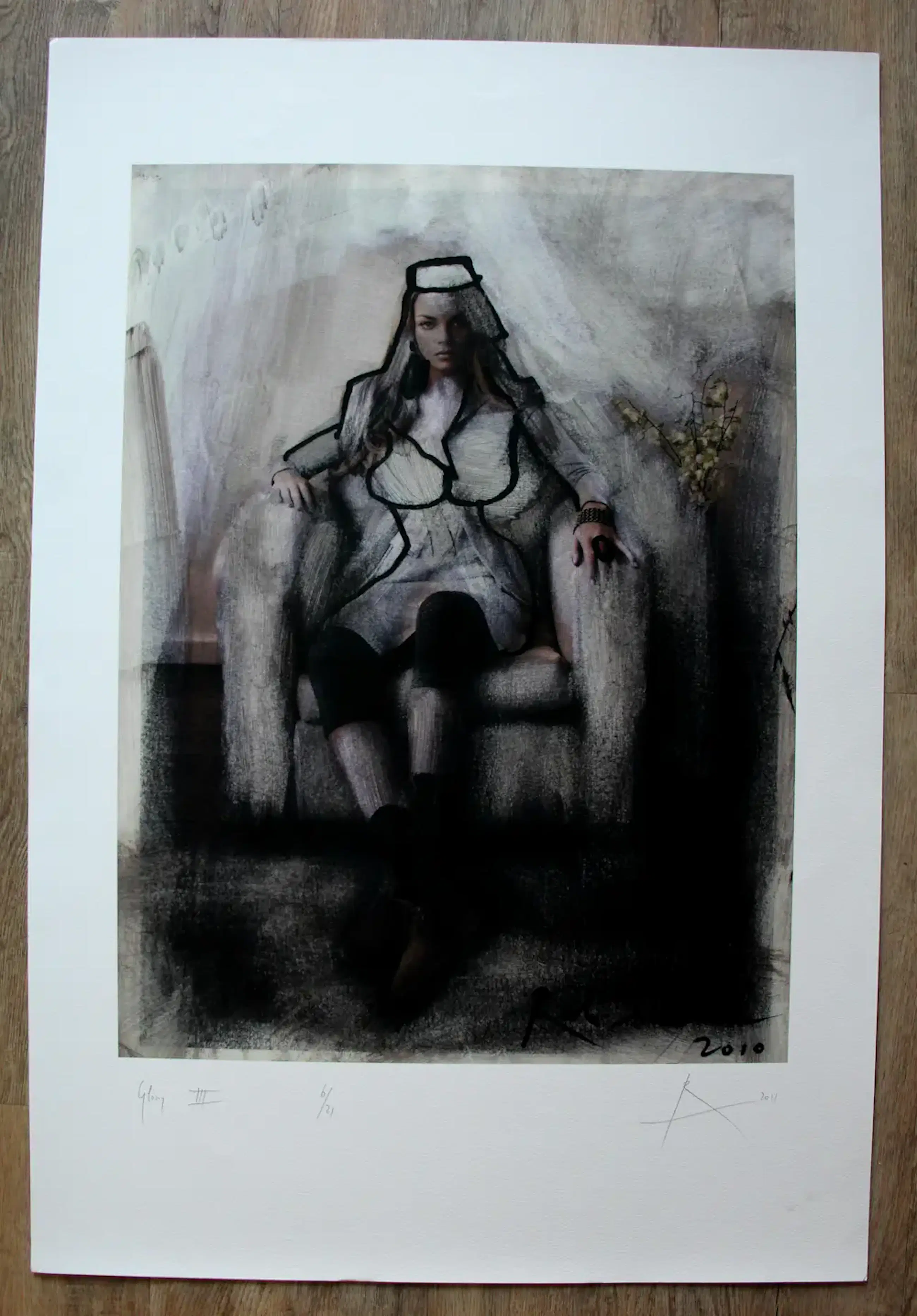 Grote zeefdruk van Rob Scholte. Titel: Glossy III. Jaar: 2010. Oplage: A/P. Afmetingen blad: H112 x b76cm. Afmetingen voorstelling: H80 x b60cm. Het werk is rechts onderaan gesigneerd door de kunstenaar. De authenticiteit van dit werk wordt volledig gegarandeerd. Een certificaat van echtheid kan, op verzoek, worden gemaild.