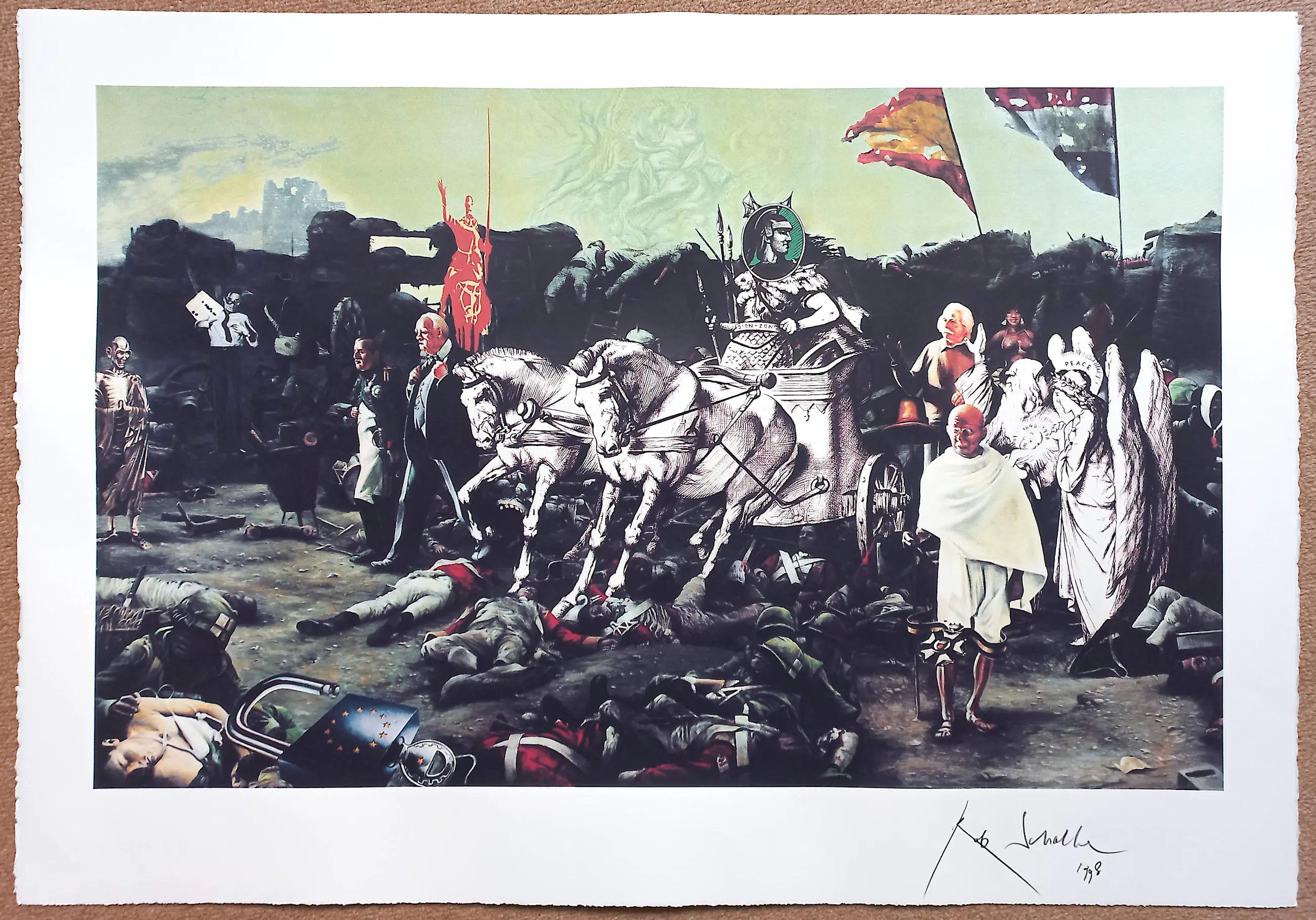 Afmetingen: 90cm x 64cm (blad), 80cm x 58cm (beeld incl. signatuur)