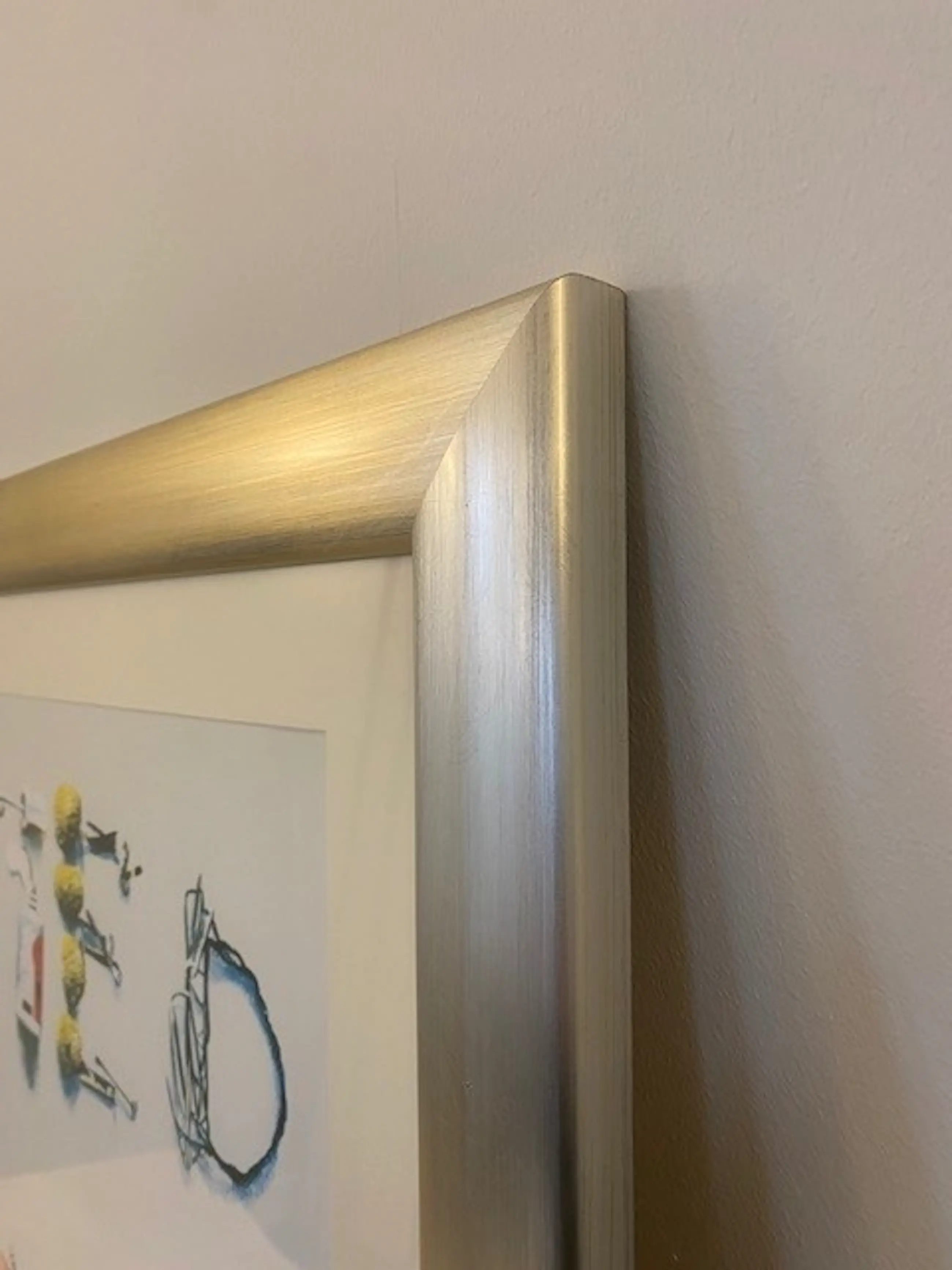 In perfecte staat in mooie lijst in passe partoet achter glas.