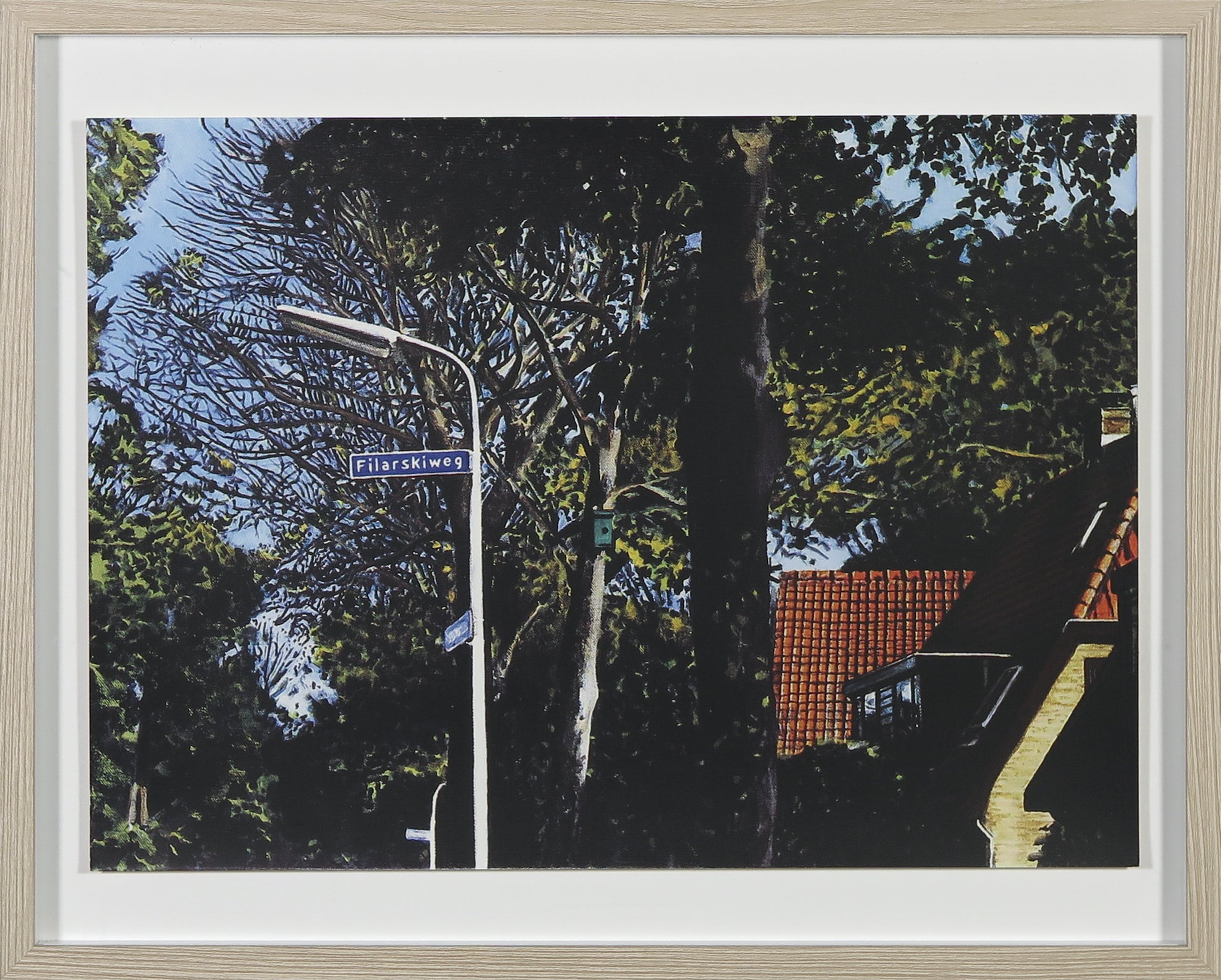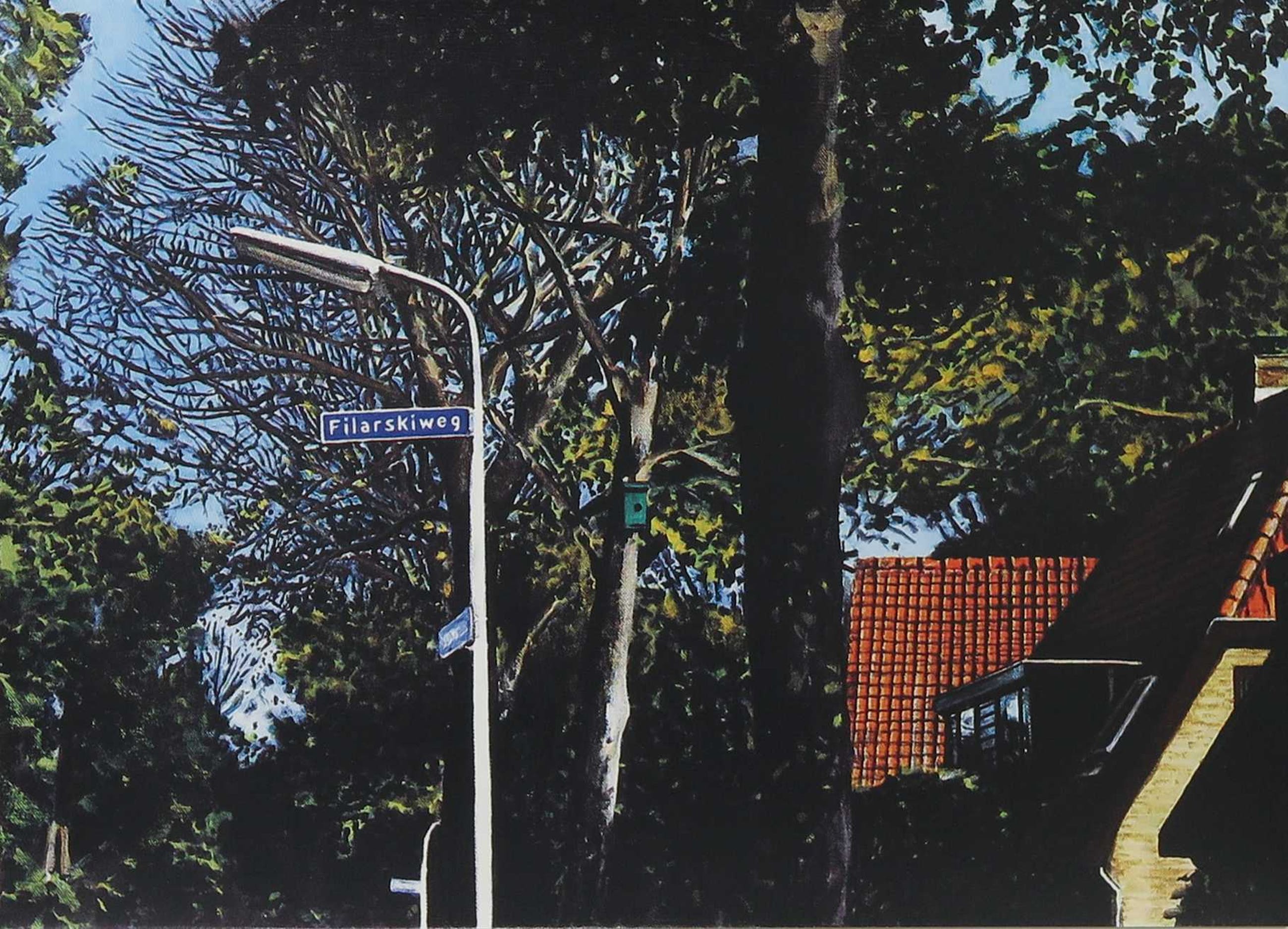 Deze zeefdruk is afkomstig uit de portfolio "Bergense School, 14 dorpsgezichten", welke bestaat uit 13 dorpsgezichten met daarop de straatborden met de namen van befaamde kunstenaars van de Bergens School. De portfolio werd uitgegeven door Galerie Witteveen Amsterdam.