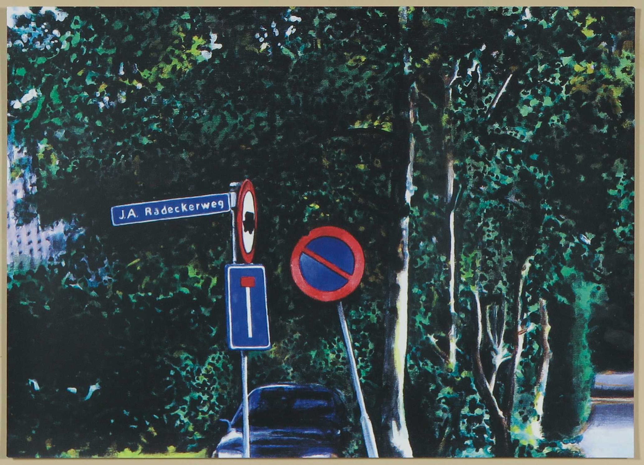 Deze zeefdruk is afkomstig uit de portfolio "Bergense School, 13 dorpsgezichten", welke bestaat uit 13 dorpsgezichten met daarop de straatborden met de namen van befaamde kunstenaars van de Bergens School. De portfolio werd uitgegeven door Galerie Witteveen Amsterdam.