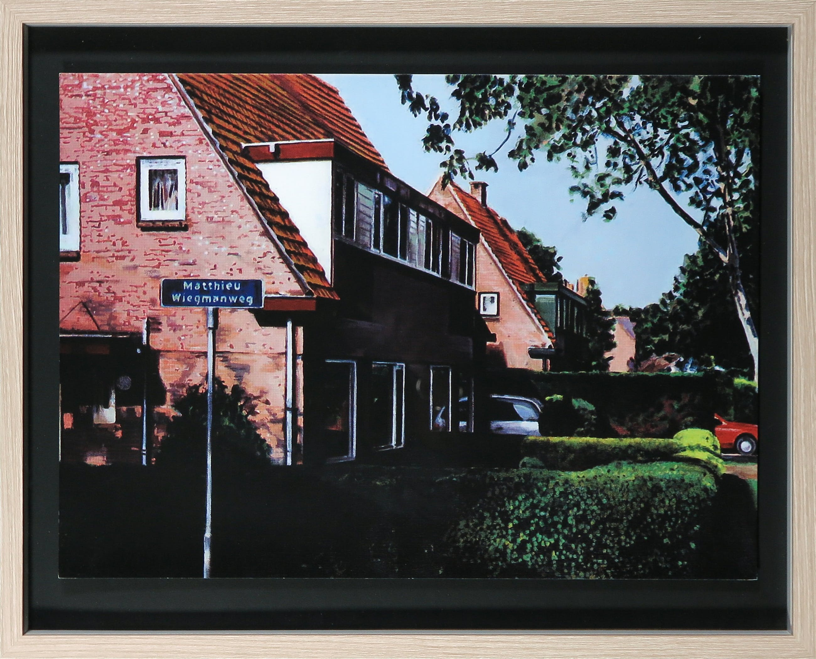 Deze zeefdruk is afkomstig uit de portfolio "Bergense School, 13 dorpsgezichten", welke bestaat uit 13 dorpsgezichten met daarop de straatborden met de namen van befaamde kunstenaars van de Bergens School. De portfolio werd uitgegeven door Galerie Witteveen Amsterdam.