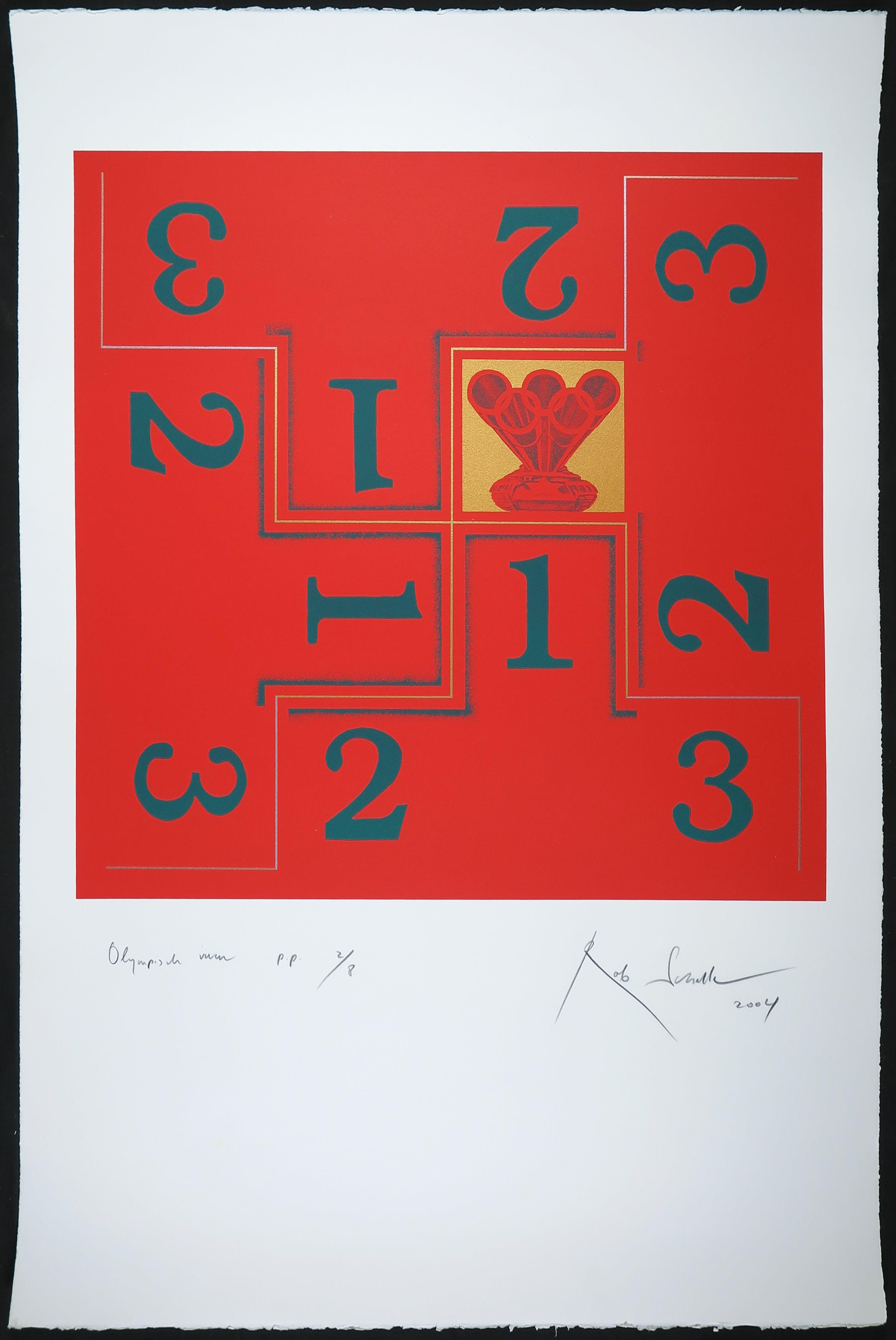 Grote zeefdruk, getiteld Olympisch, door Rob Scholte.