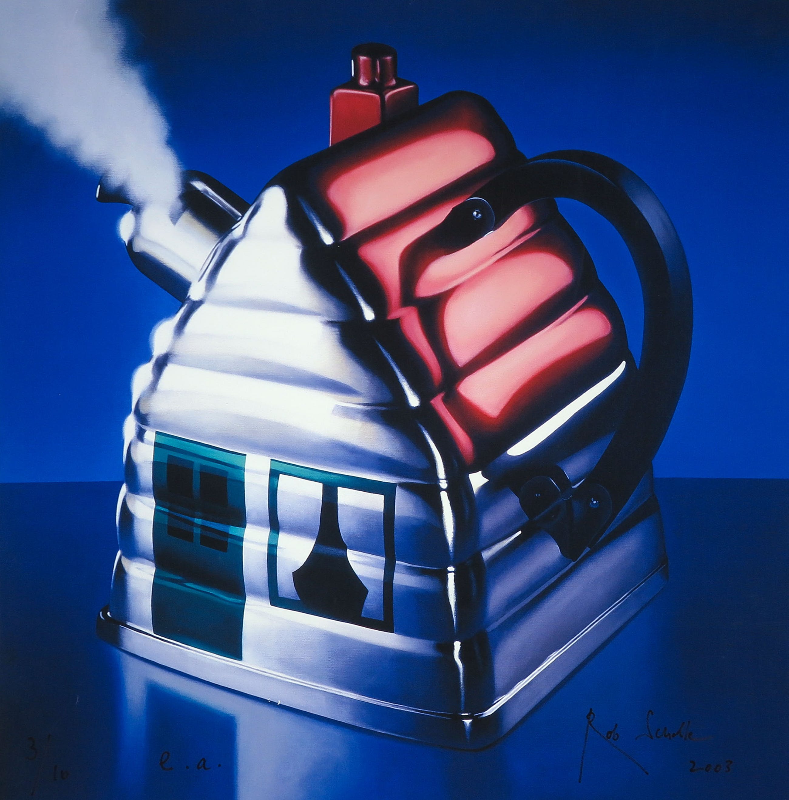 | Werk is in goede staat, wat stoffige vegen. Langs randen en hoeken lichte slijtage, hoek linksboven heeft licht vouwtje. Twee lichte beschadigingen langs de onderste rand van het theehuis (twee witte plekjes). | |||
