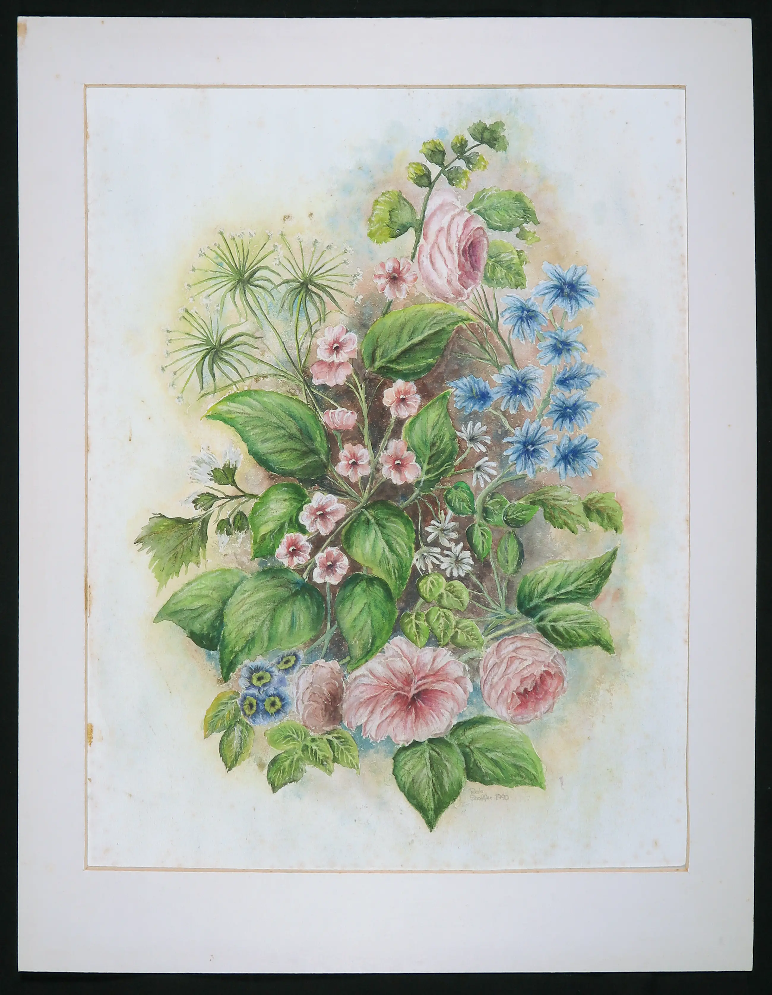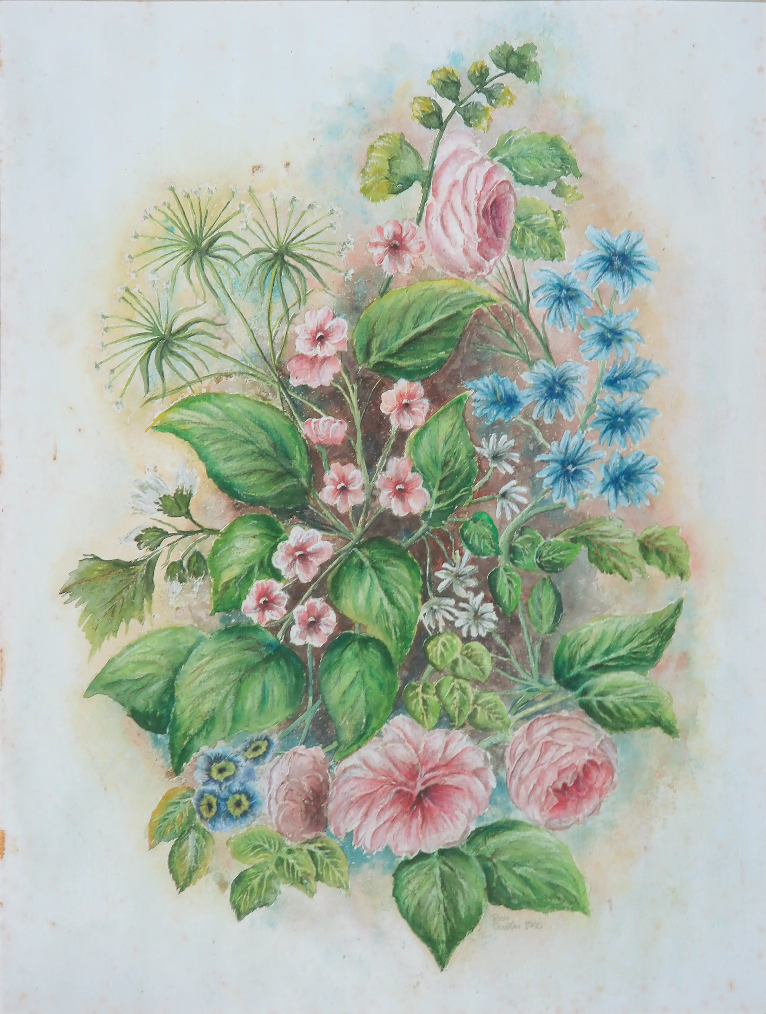 | Het werk heeft veel foxing (verkleurde plekjes) in het wit om de bloemen. | |||||||||||