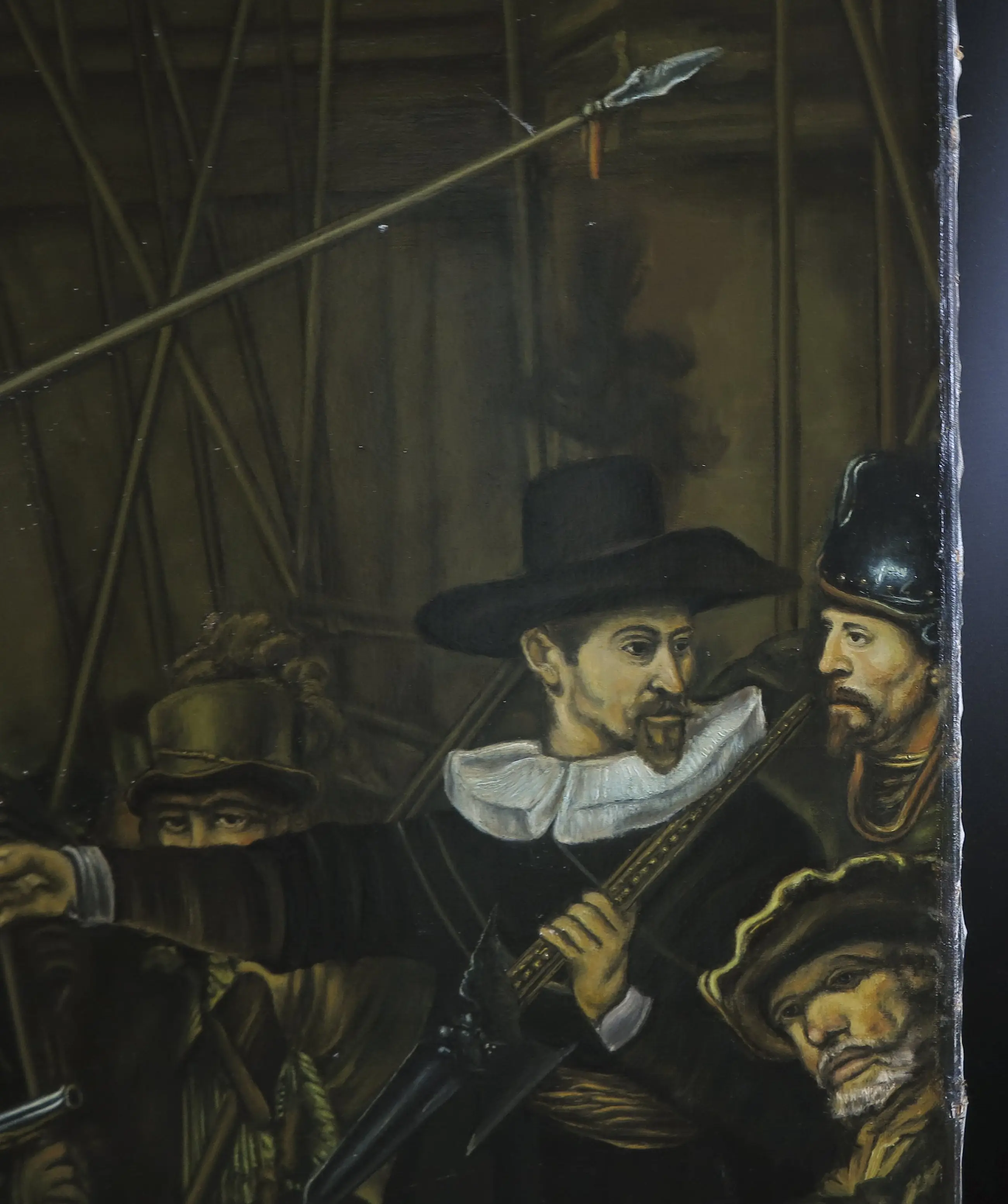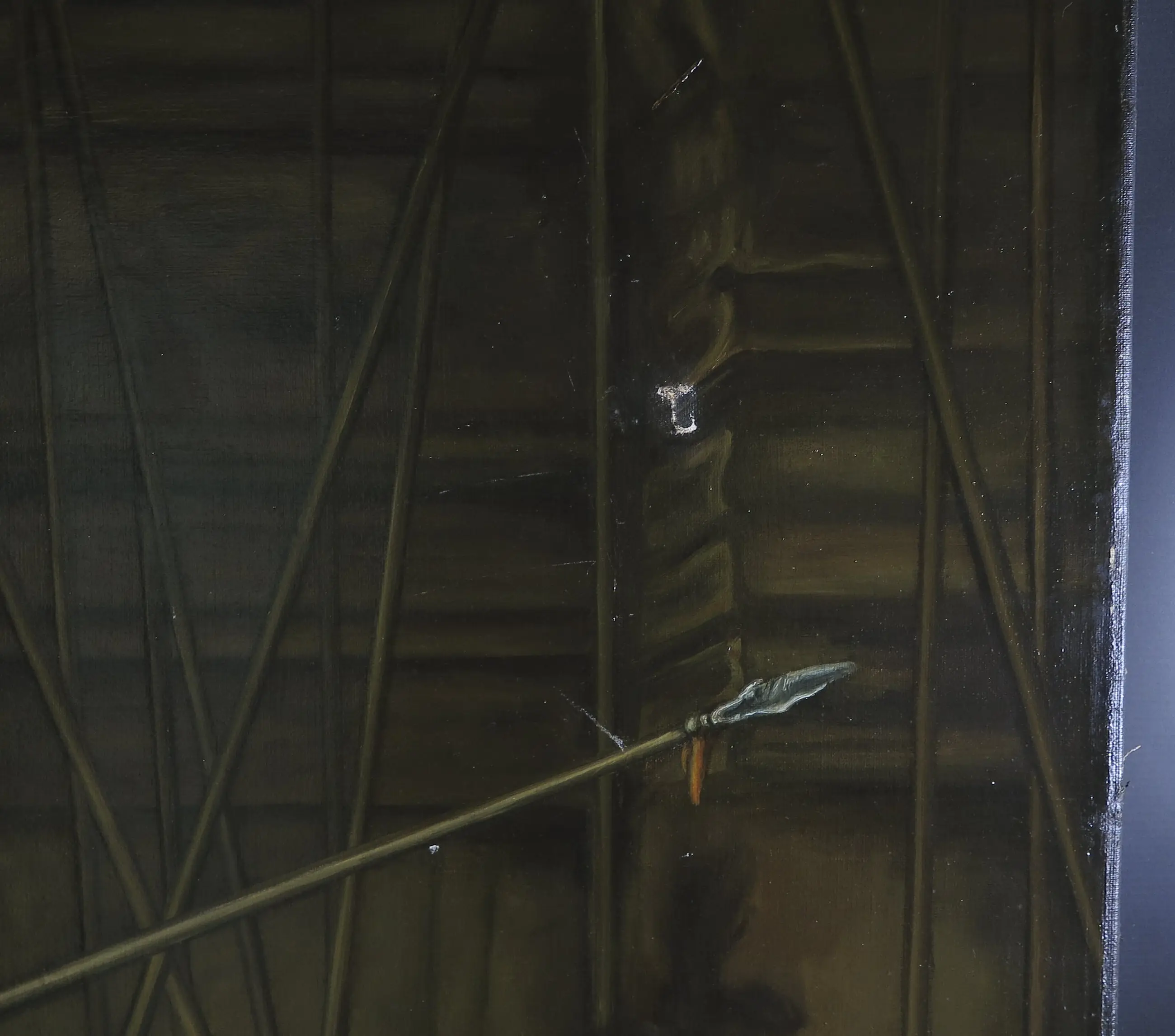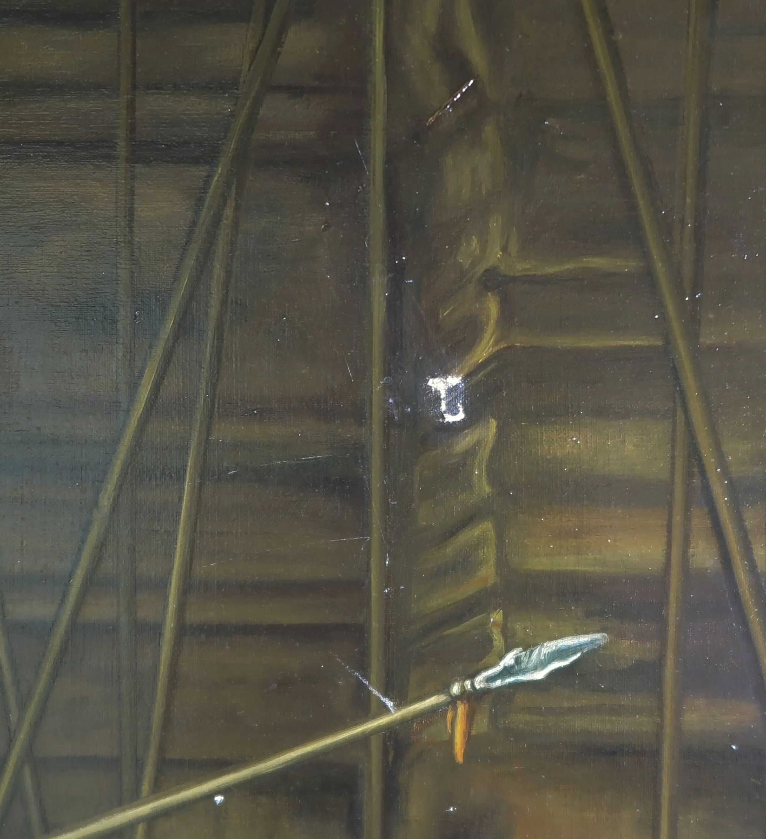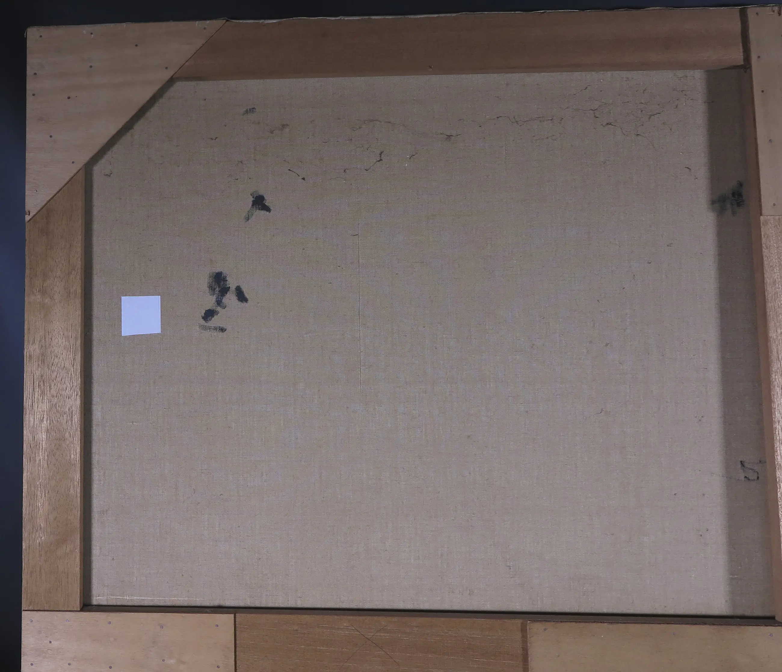 | Het werk zit los in de lijst. Verder wat beschadigingen (langs de rand rechts een gat, zie ook foto's). | |