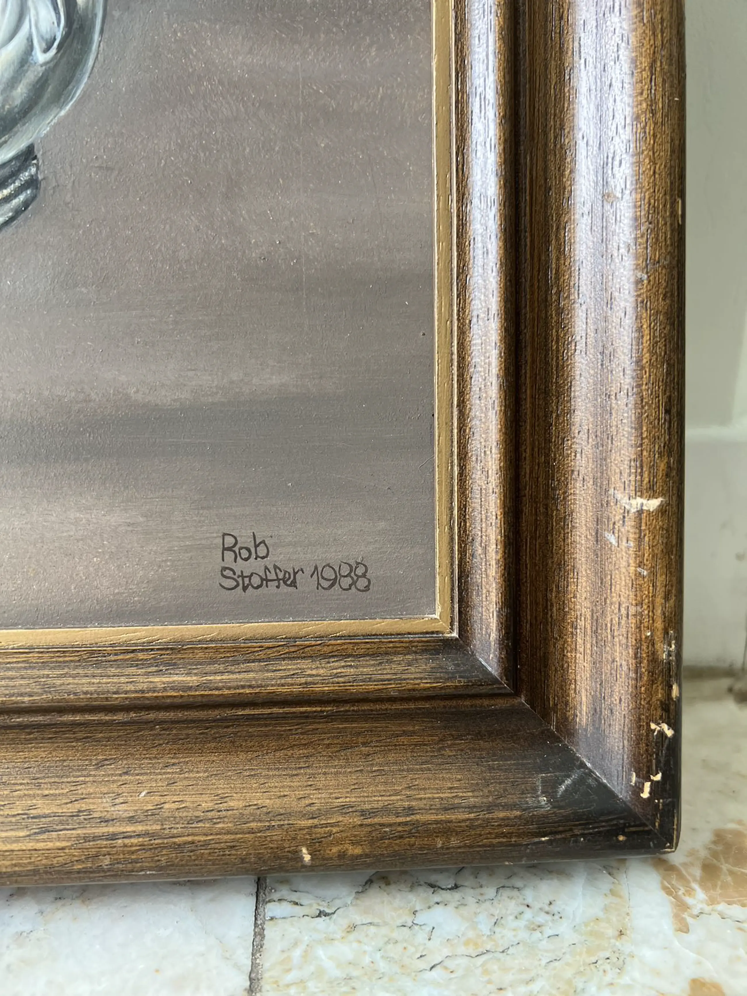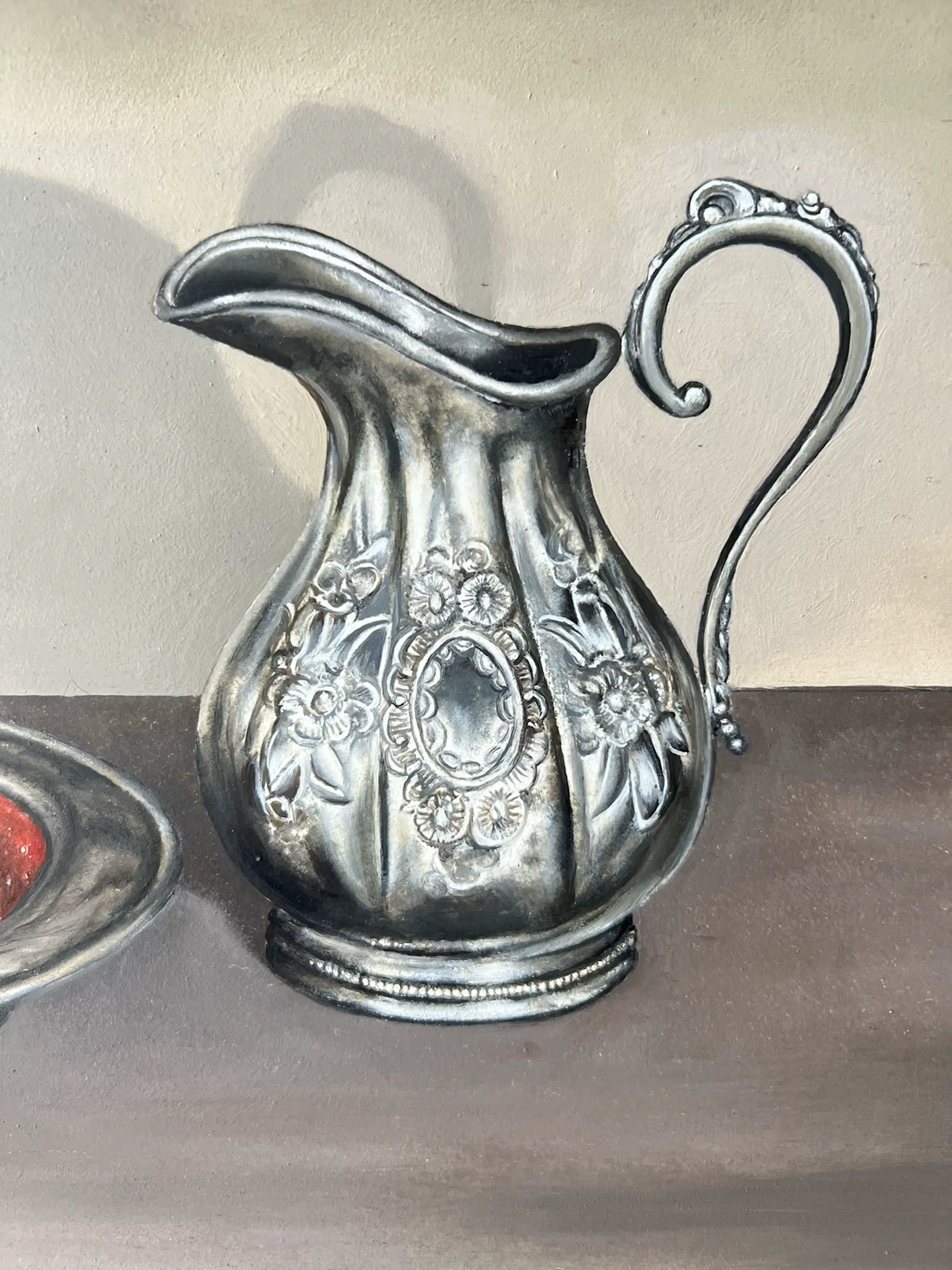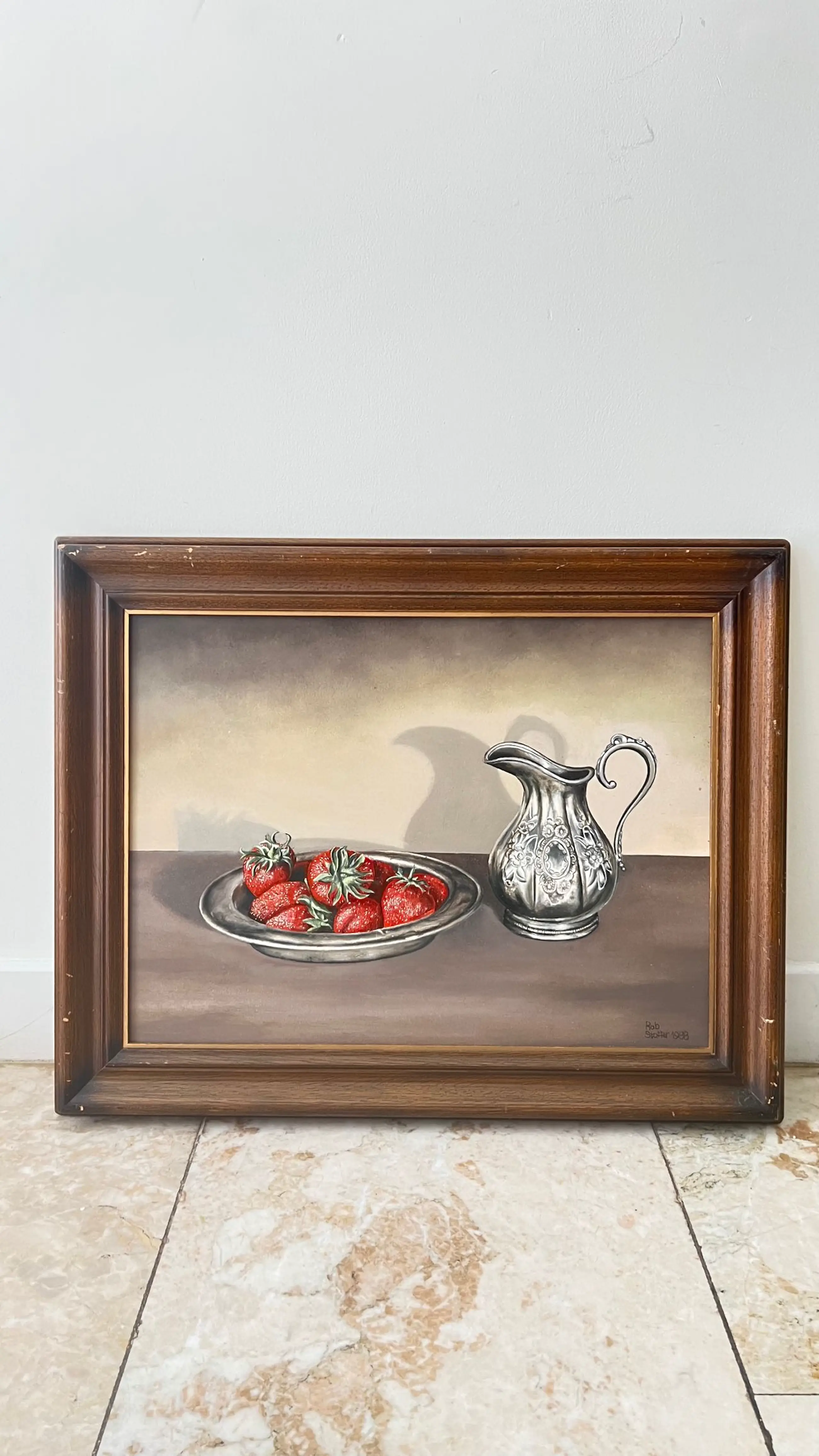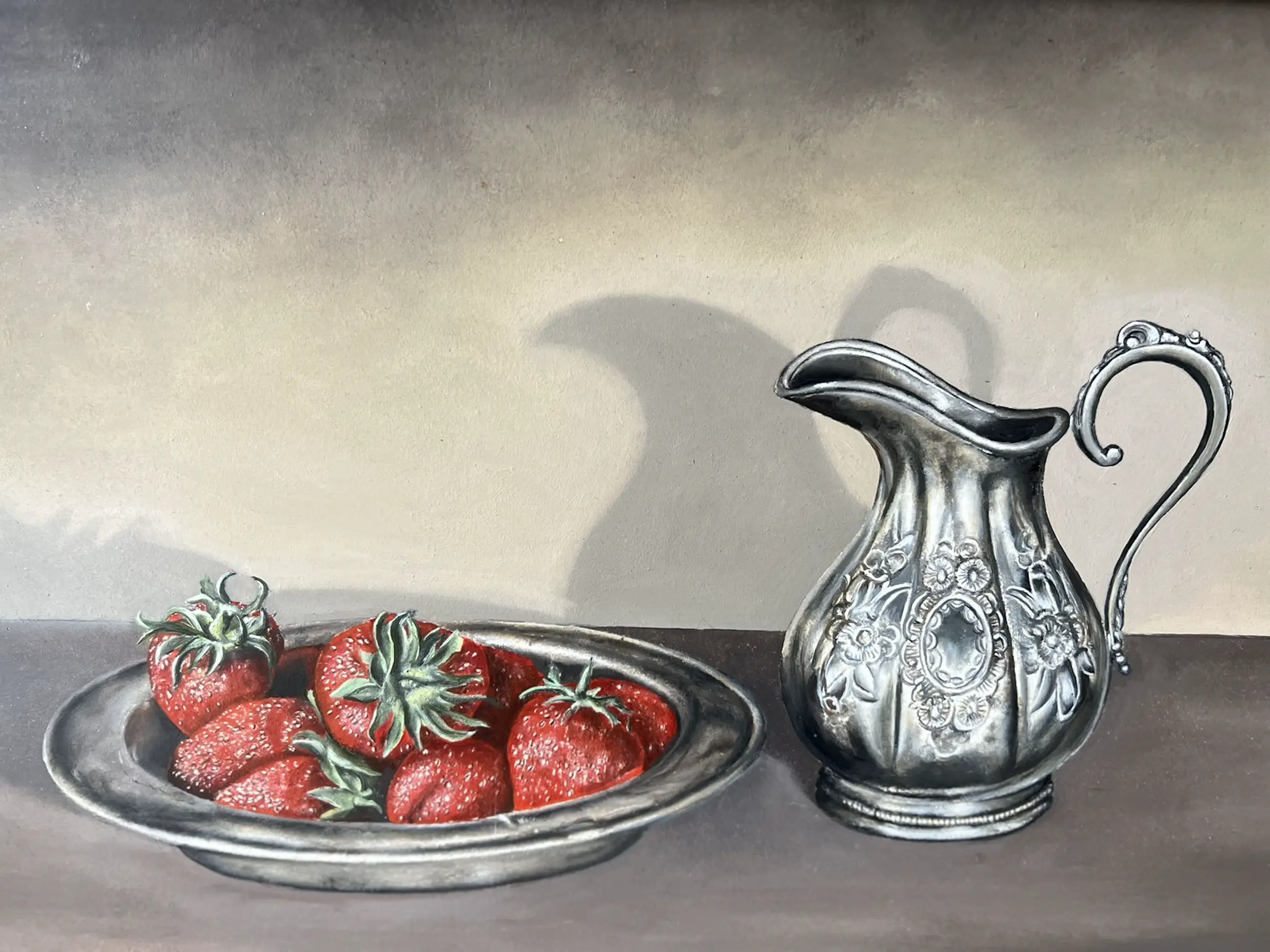 Rob Stoffer - Olieverf op paneel, Stilleven met kan en aardbeien - Ingelijst