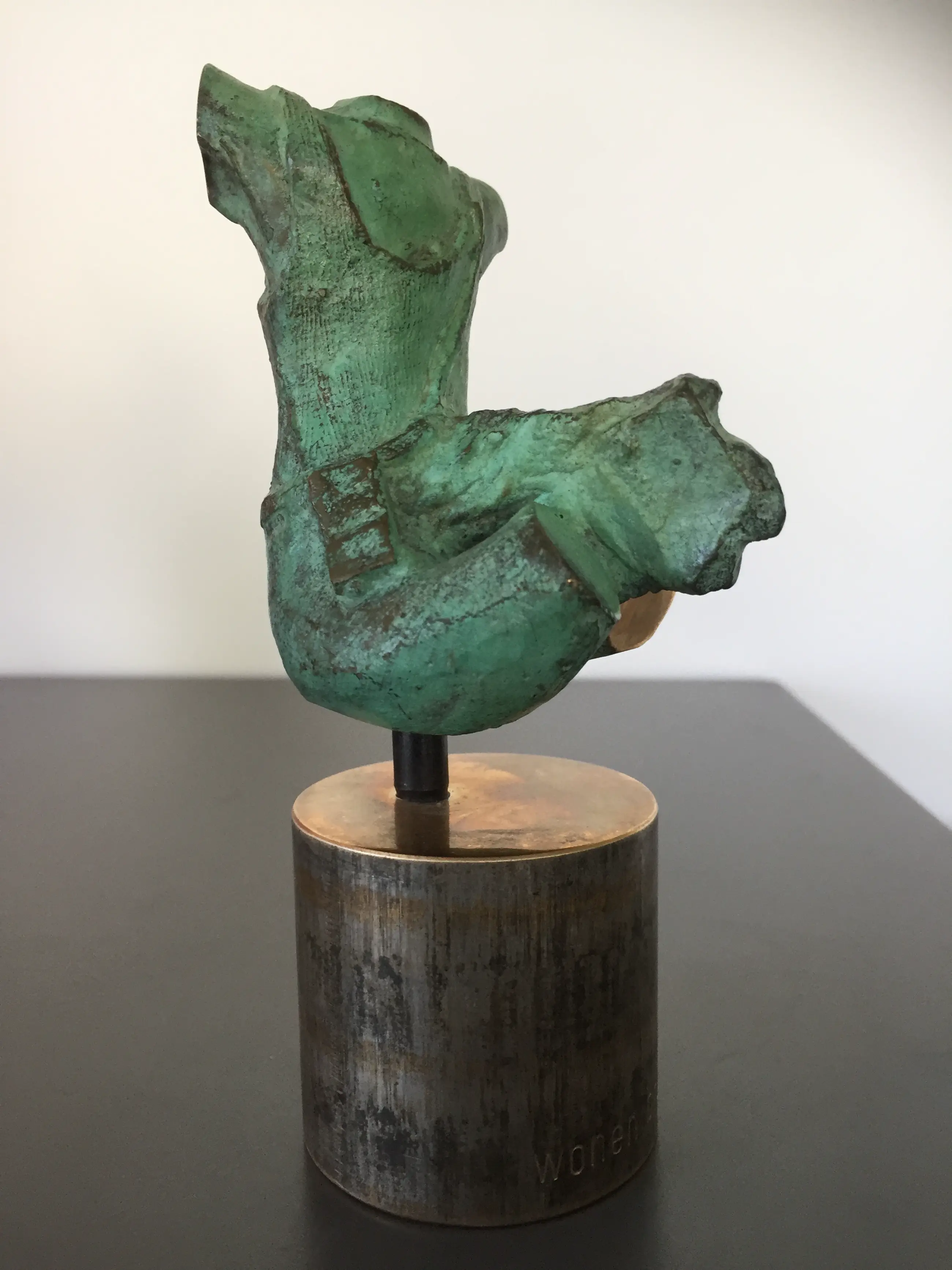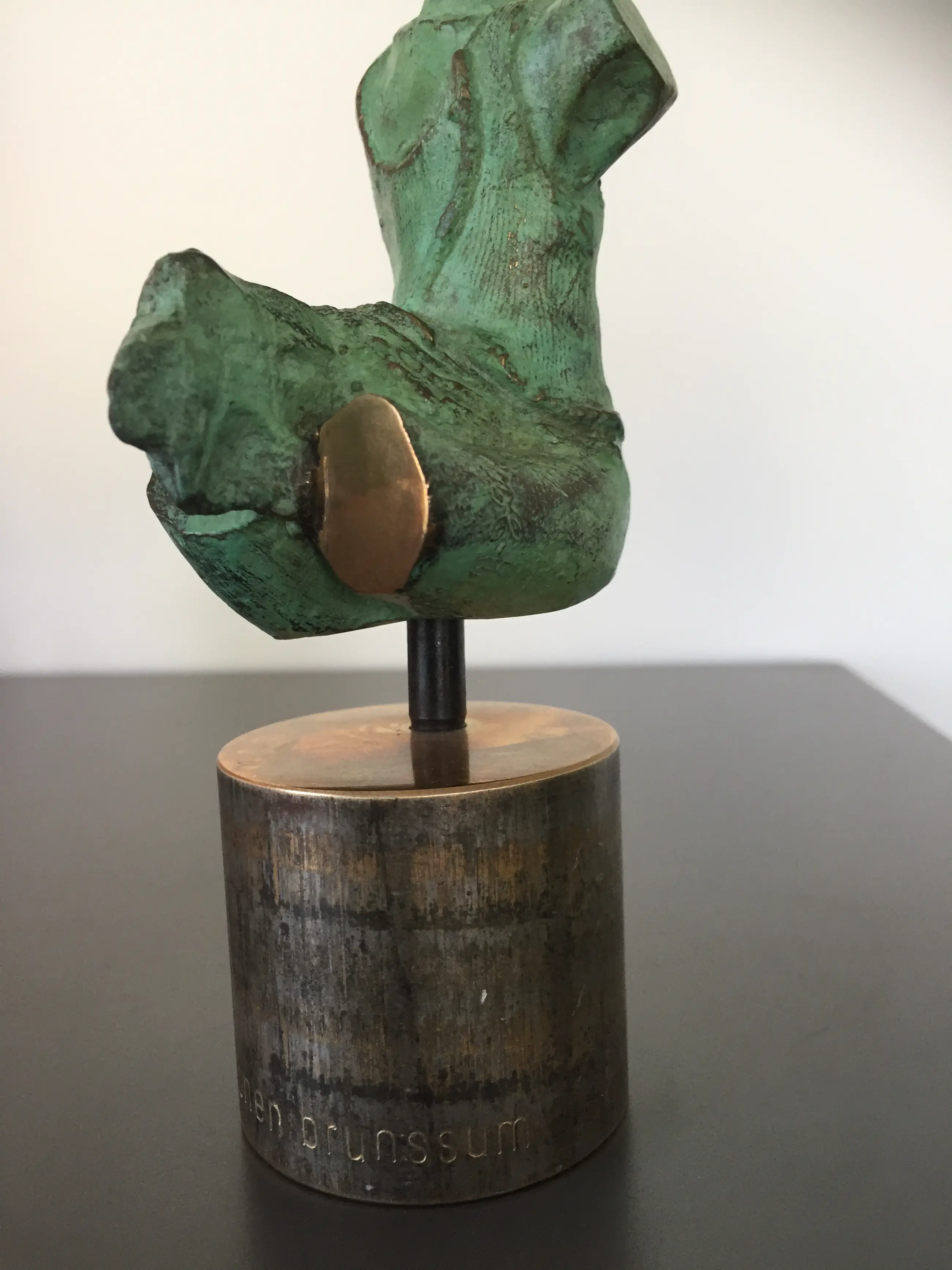 Zware torso mooi patina en glad bronze vlakken op massief ronde bronzen sokkel gesigneerd en genummerd aan onderzijde