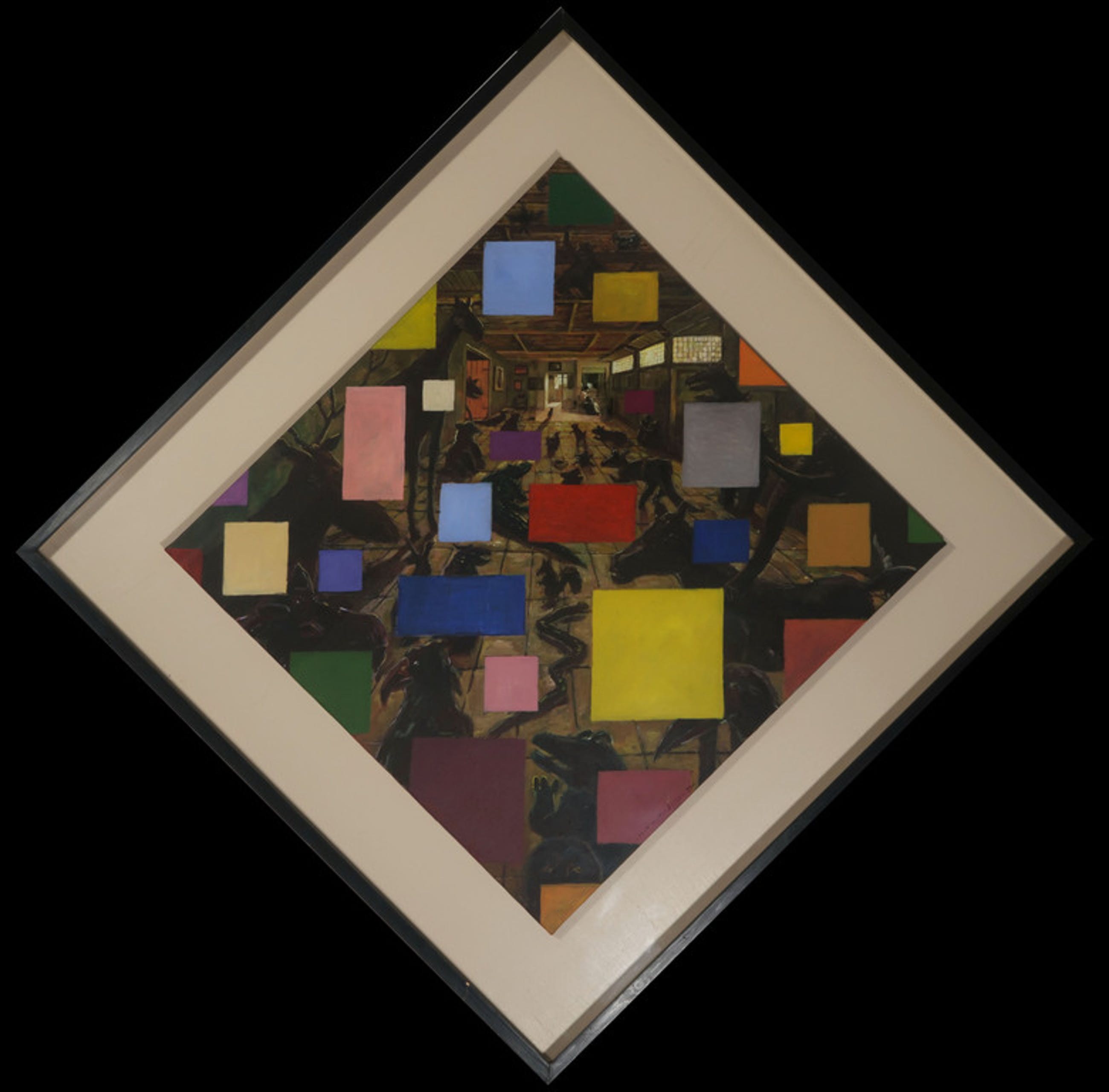 Afmetingen lijst: diagonaal: 175 cm x 175 cm (Lijst: 124,5 cm x 124,5 cm) (Doek: 90 cm x 90 cm)