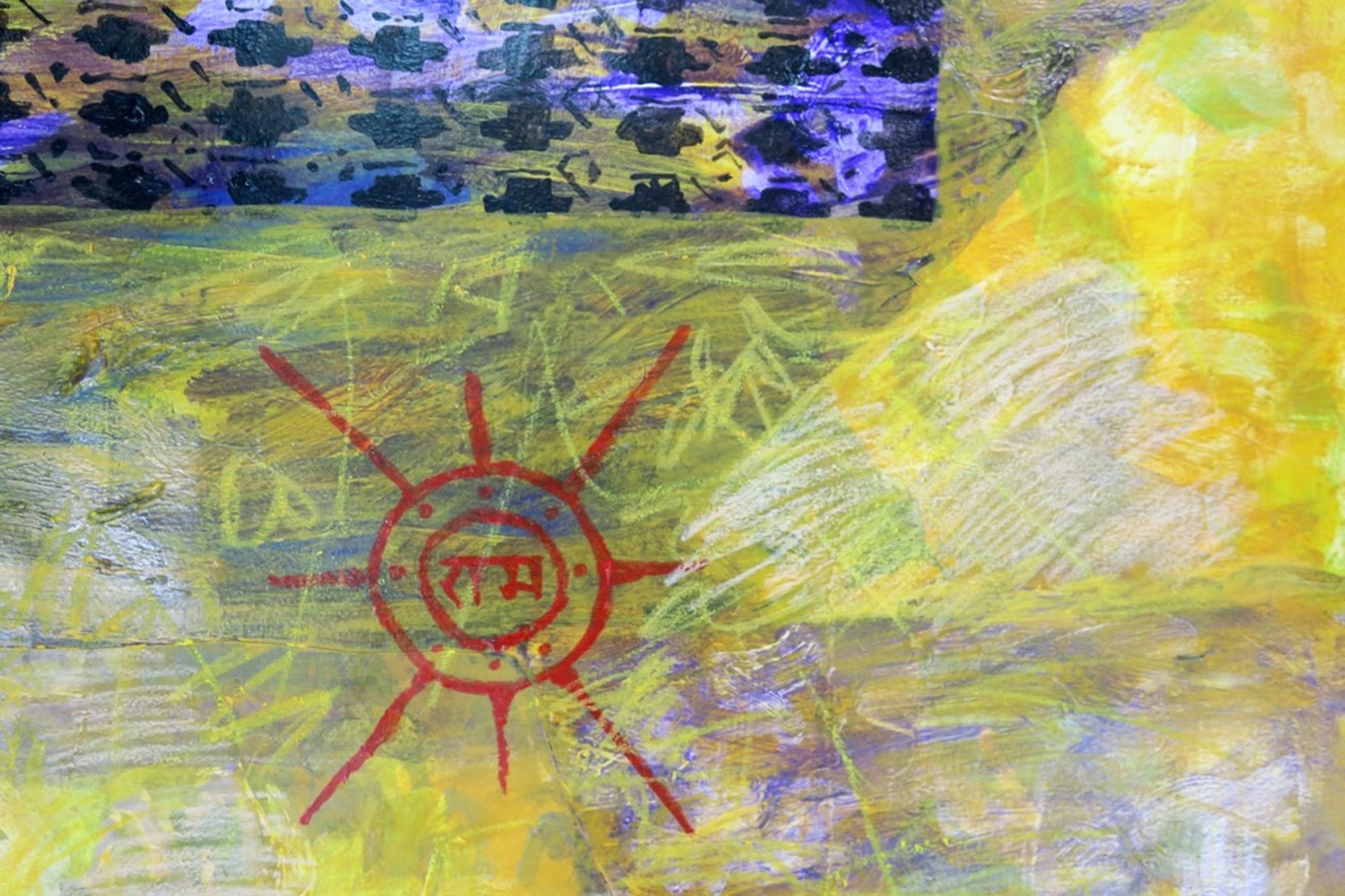 Materiaal: Gem.techniek op papier, o.a. gouache, krijt en collage