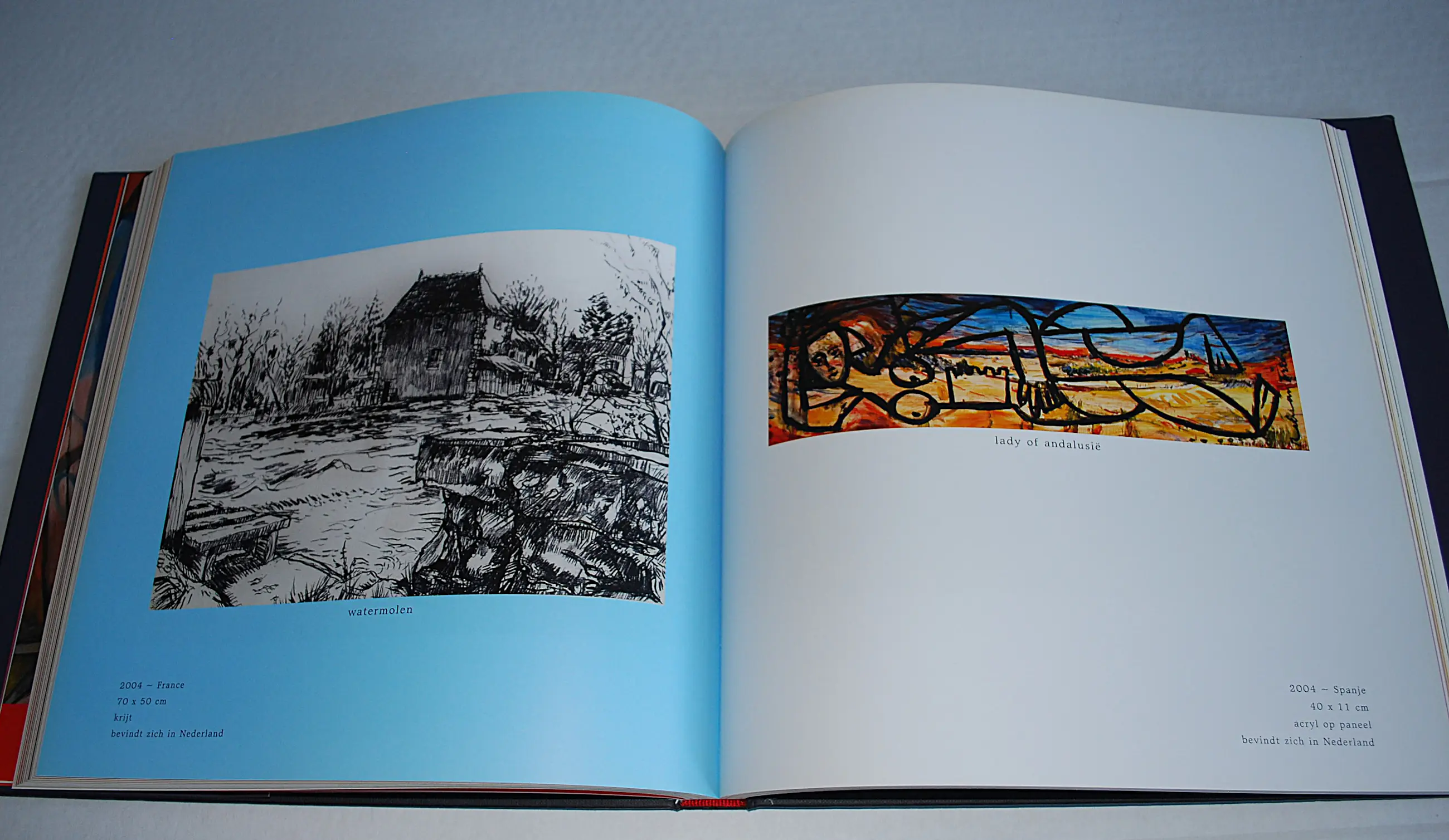 Prachtige hardcover, met omslag. Achterin is de collage geplaatst, in inkt gesigneerd en de titel bovenaan. Uniek. Acheraan een dankwoord, speciaal gericht aan Corneille.