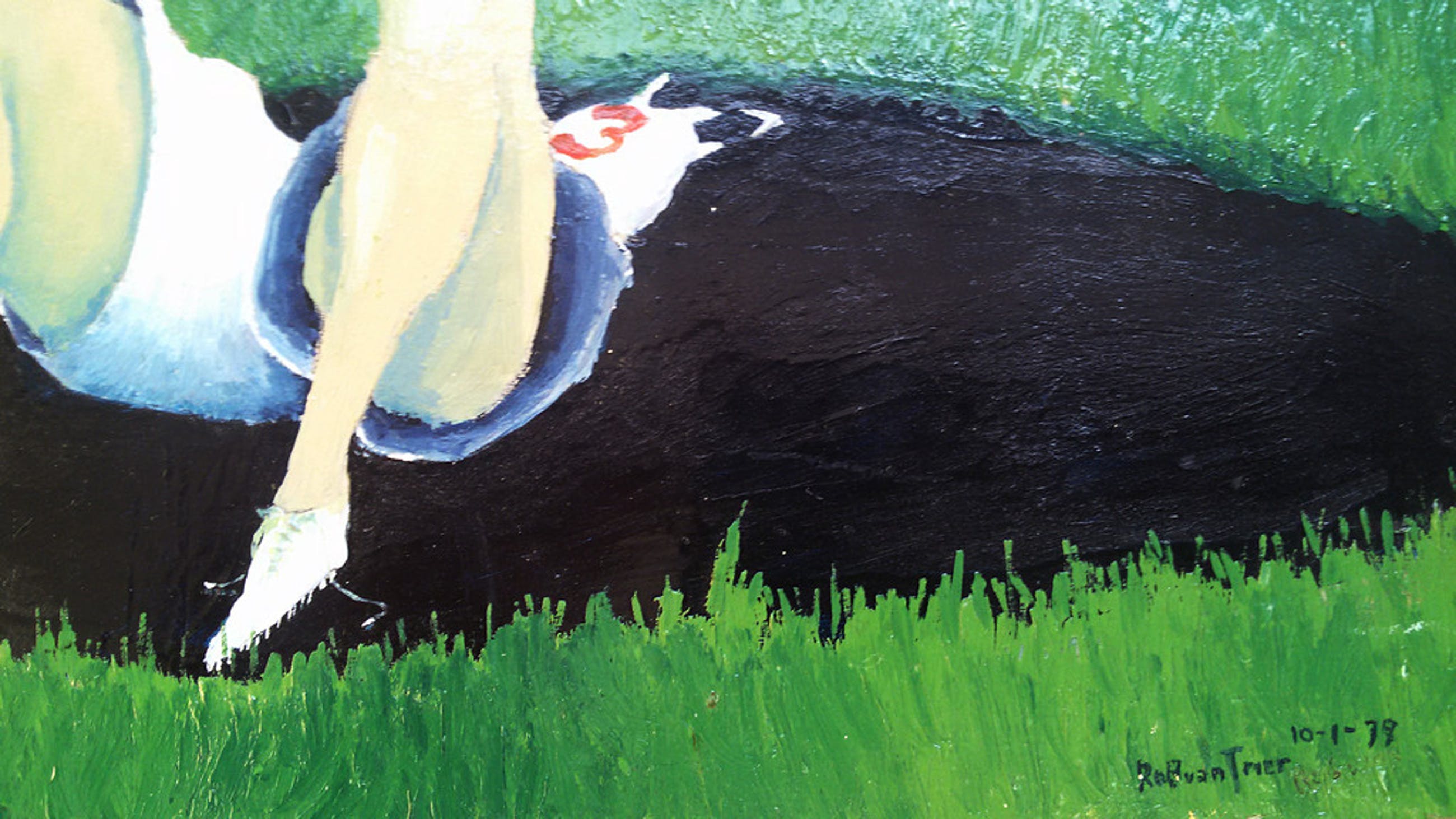 Vroeg werk van de bekende Tilburgse kunstenaar Rob van Trier. Olieverf op paneel, gesigneerd en gedateerd (10-1-79) rechtsonder, in uitstekende conditie.