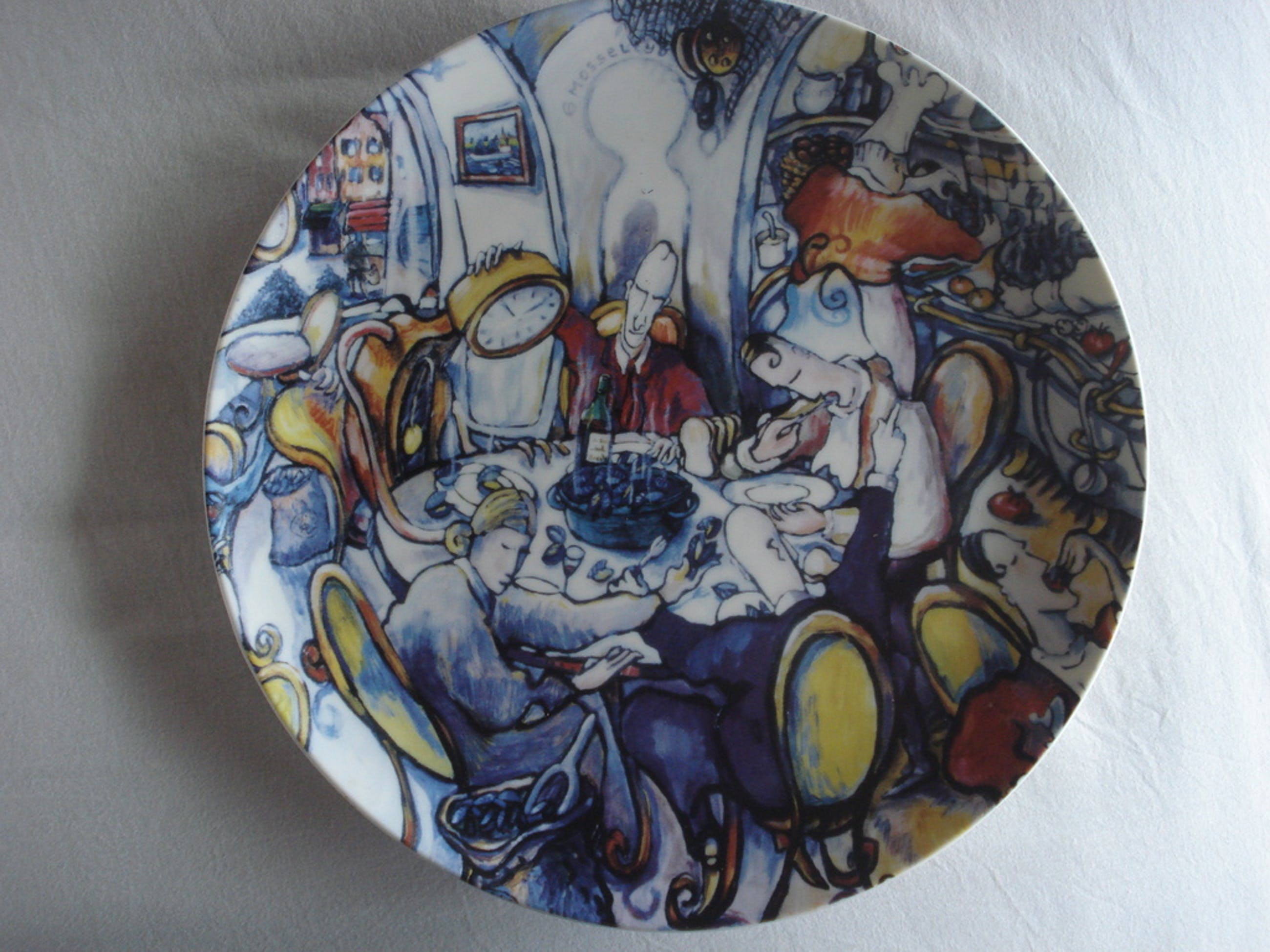 Ontzettend gaaf bord met daarop een druk van de kunstenaar Rob van Trier. Uitgegeven door het initiatief culinaire kunsten.