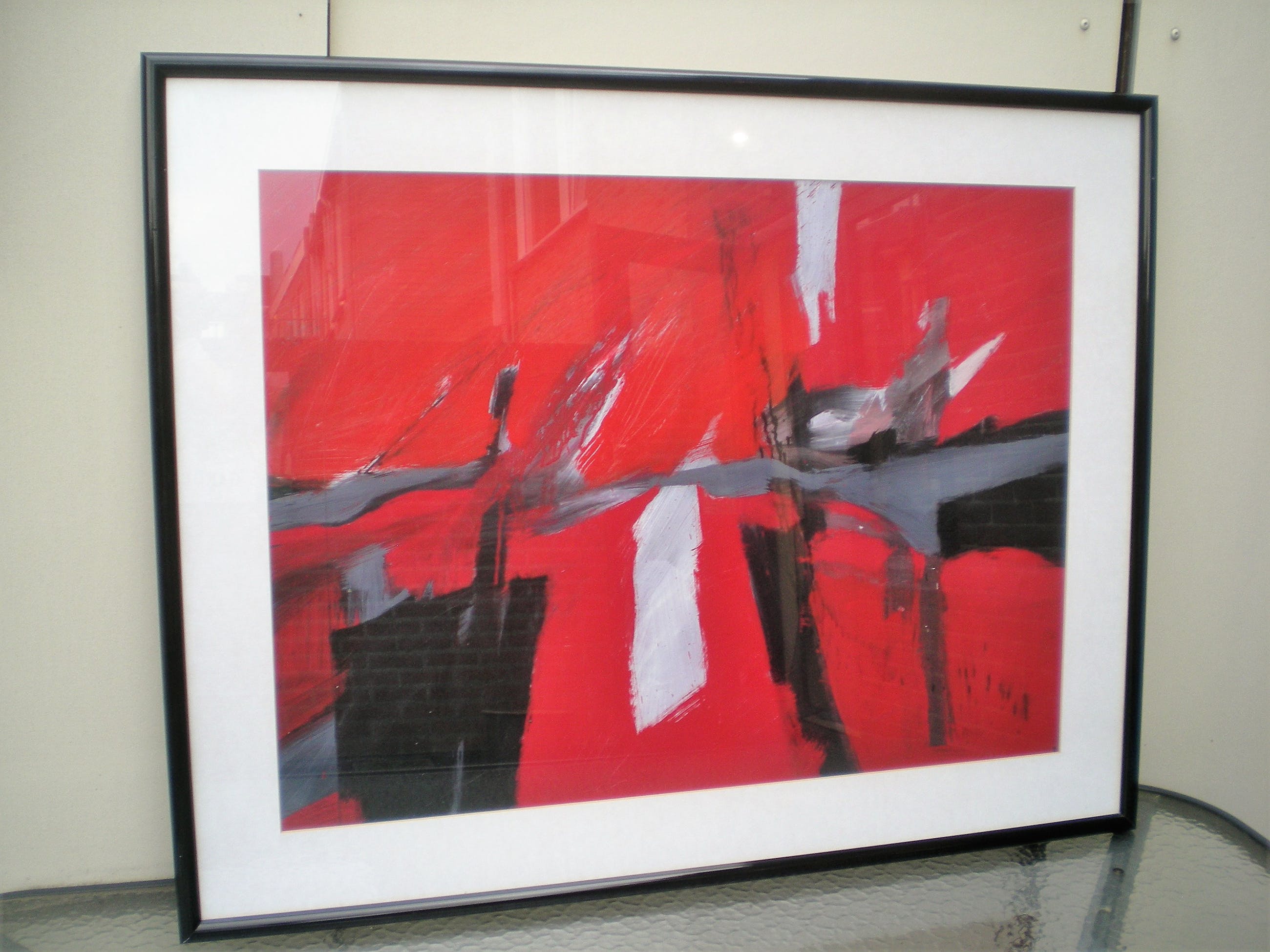 Olieverf op papier Rob H.Vermeer 1937 - Titel: De rode ondergang- 80 X 105 cm(incl.Lijst)