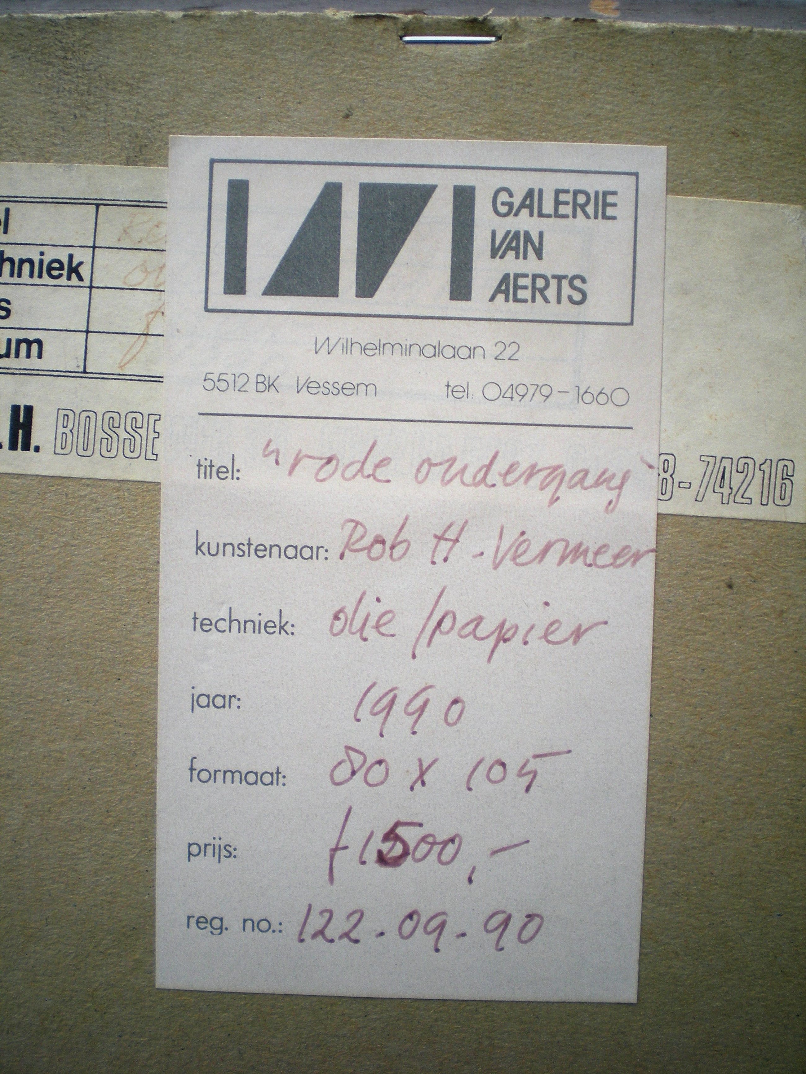 De aankoop bij Galerie Van Aerts was in 1990 Fl.1500,00