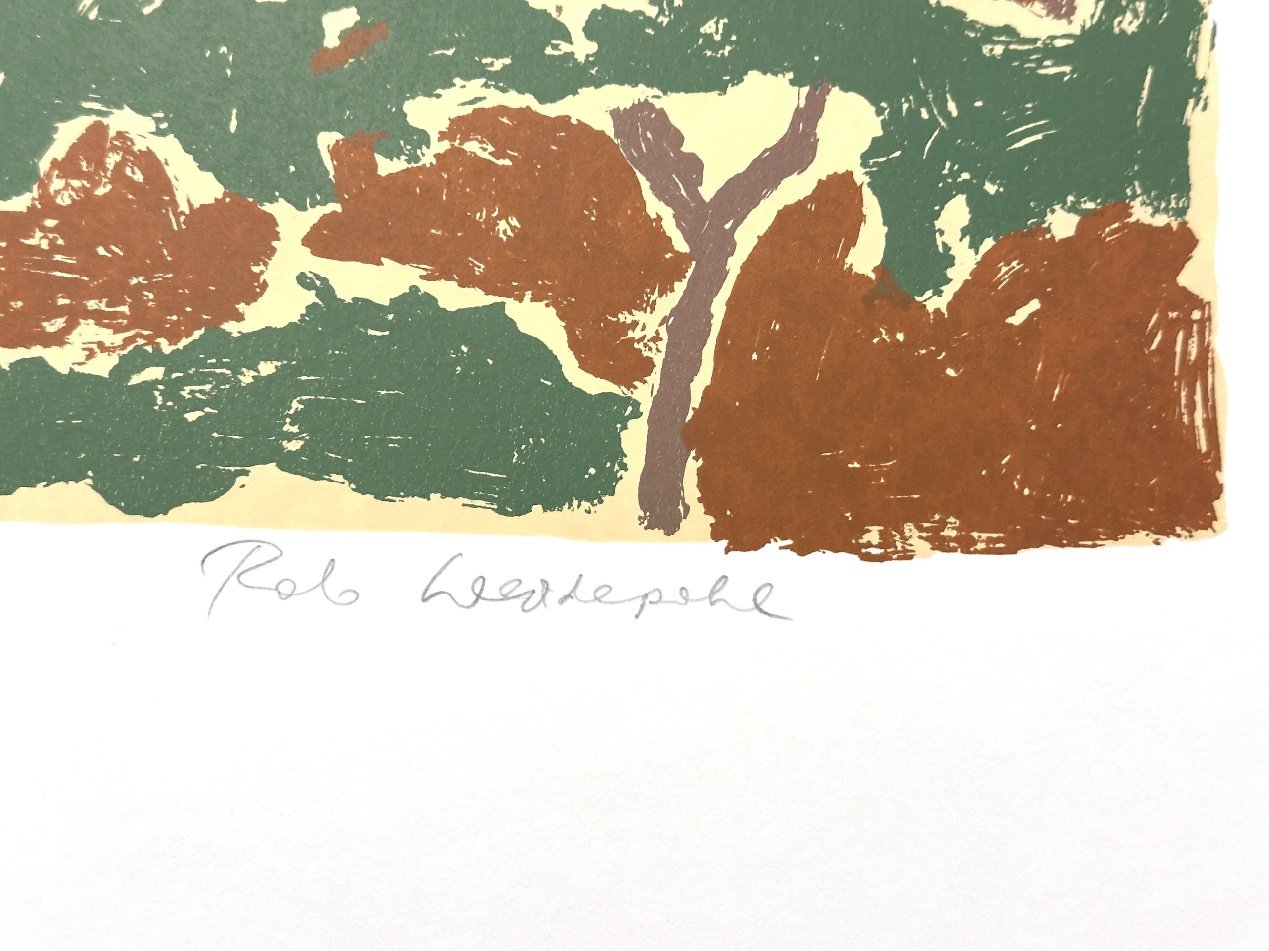 Zeefdruk van Rob Weddepohl uit 2004, gemaakt in een onbekende oplage. Het werk is gebaseerd op het verblijf en de reizen van Weddepohl in Australië. Gedrukt op zuurvrij papier, papierformaat 70 x 50 cm, afbeelding 30 x 40 cm. Handgesigneerd en genummerd 'e.a.' (Epreuve d'Artiste) door de kunstenaar. De zeefdruk is in goede staat linksonder is een kleine oneffenheid (zie foto). Kan indien gewenst verzonden worden in een stevige kartonnen koker.