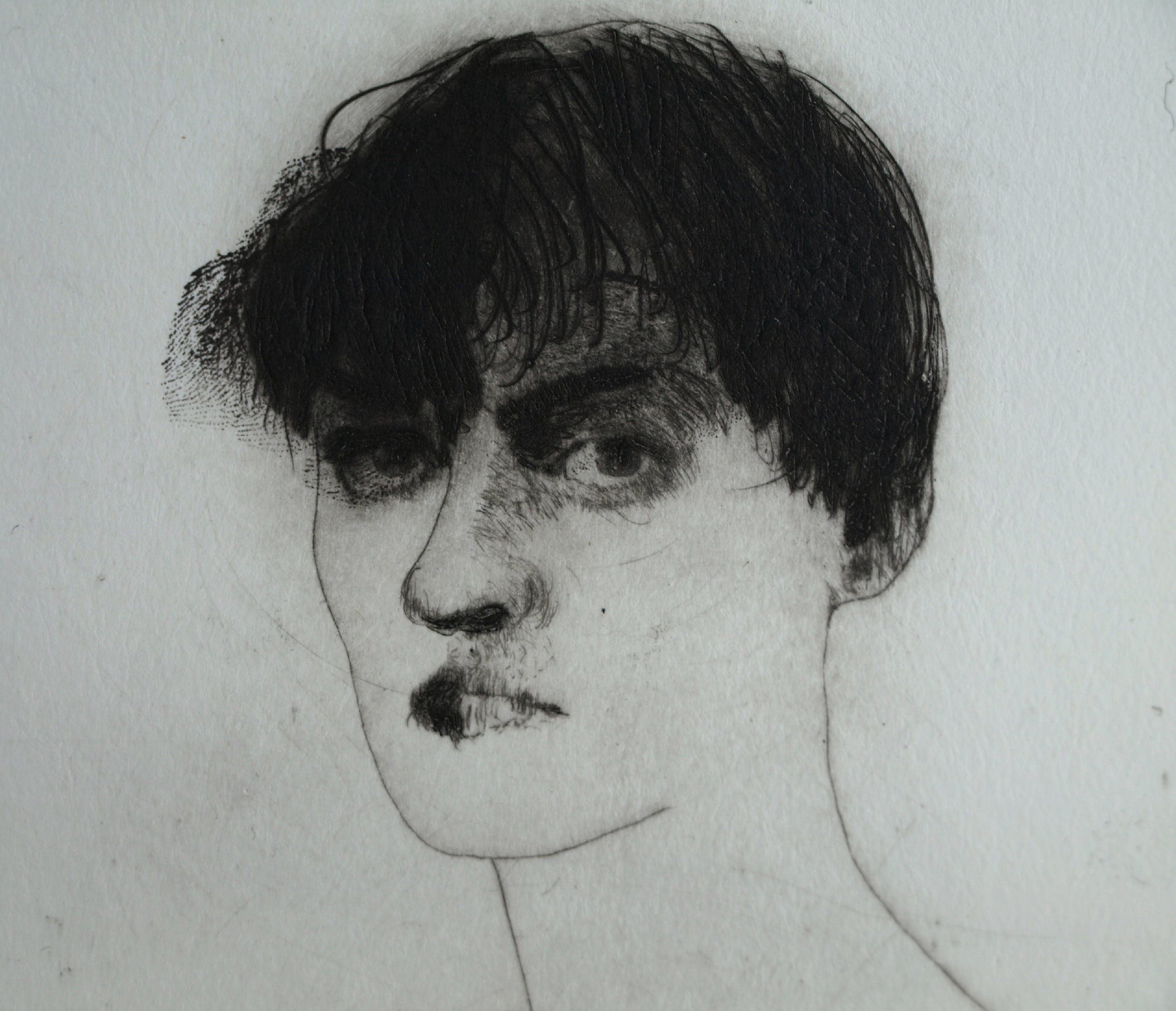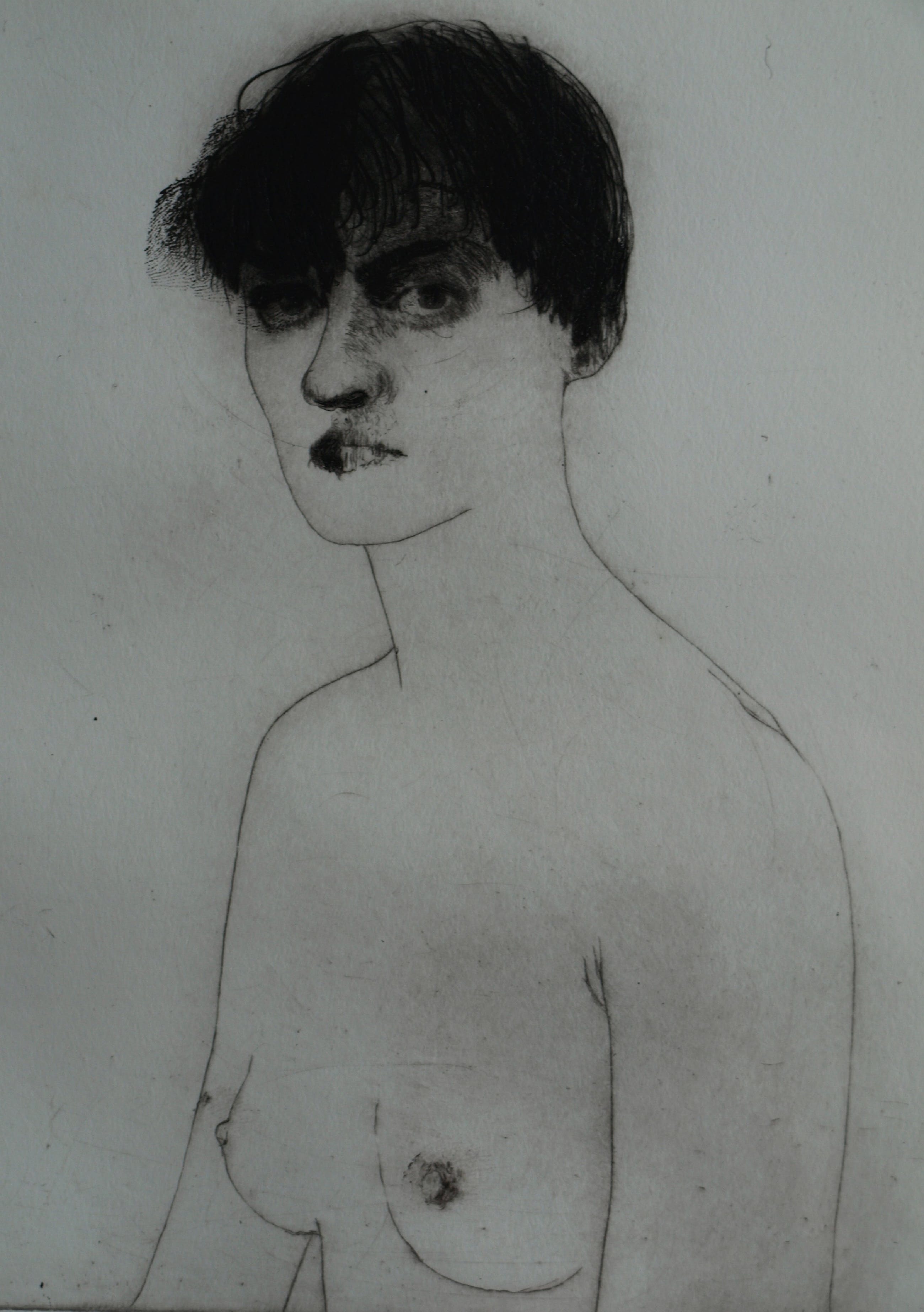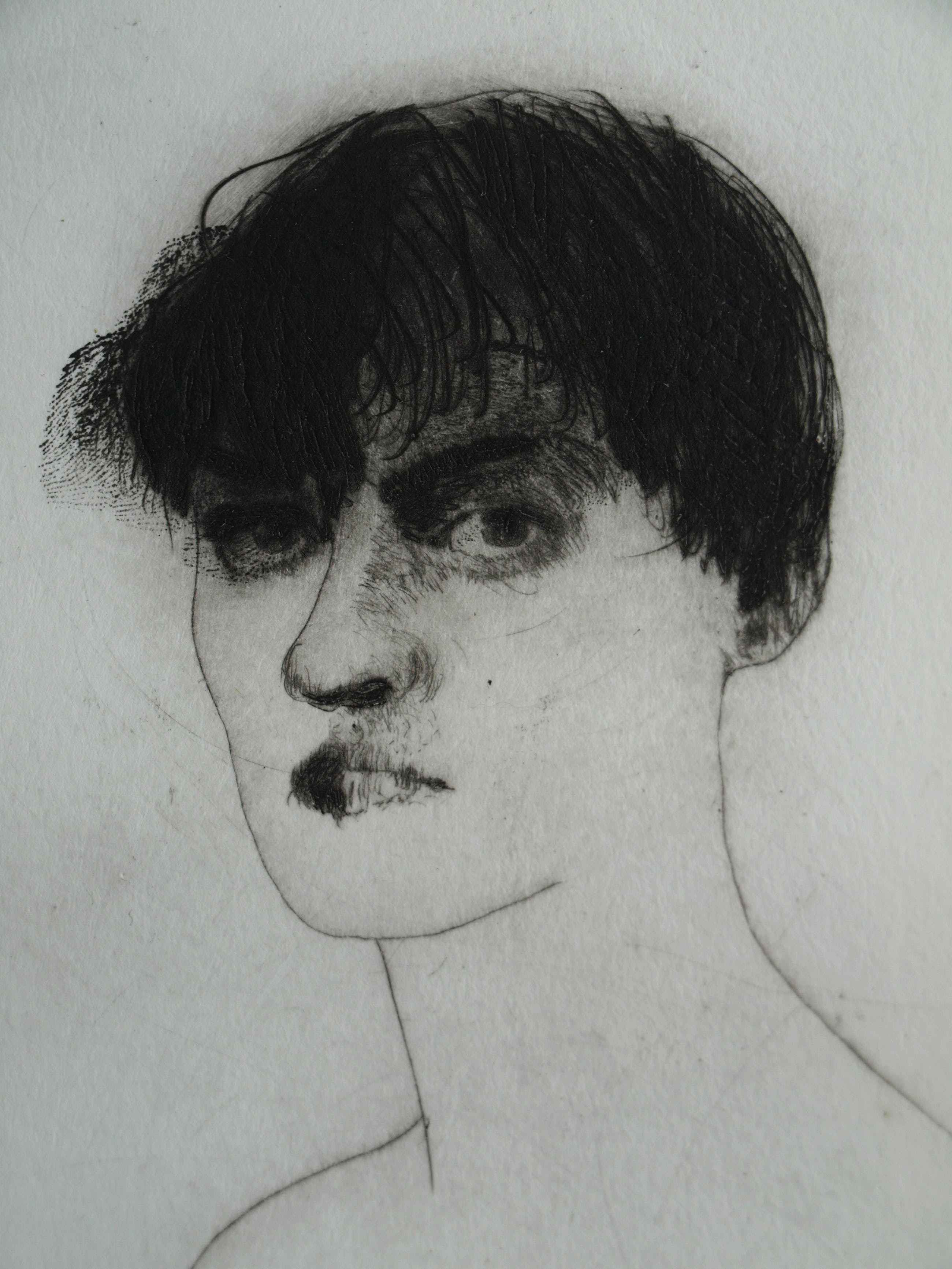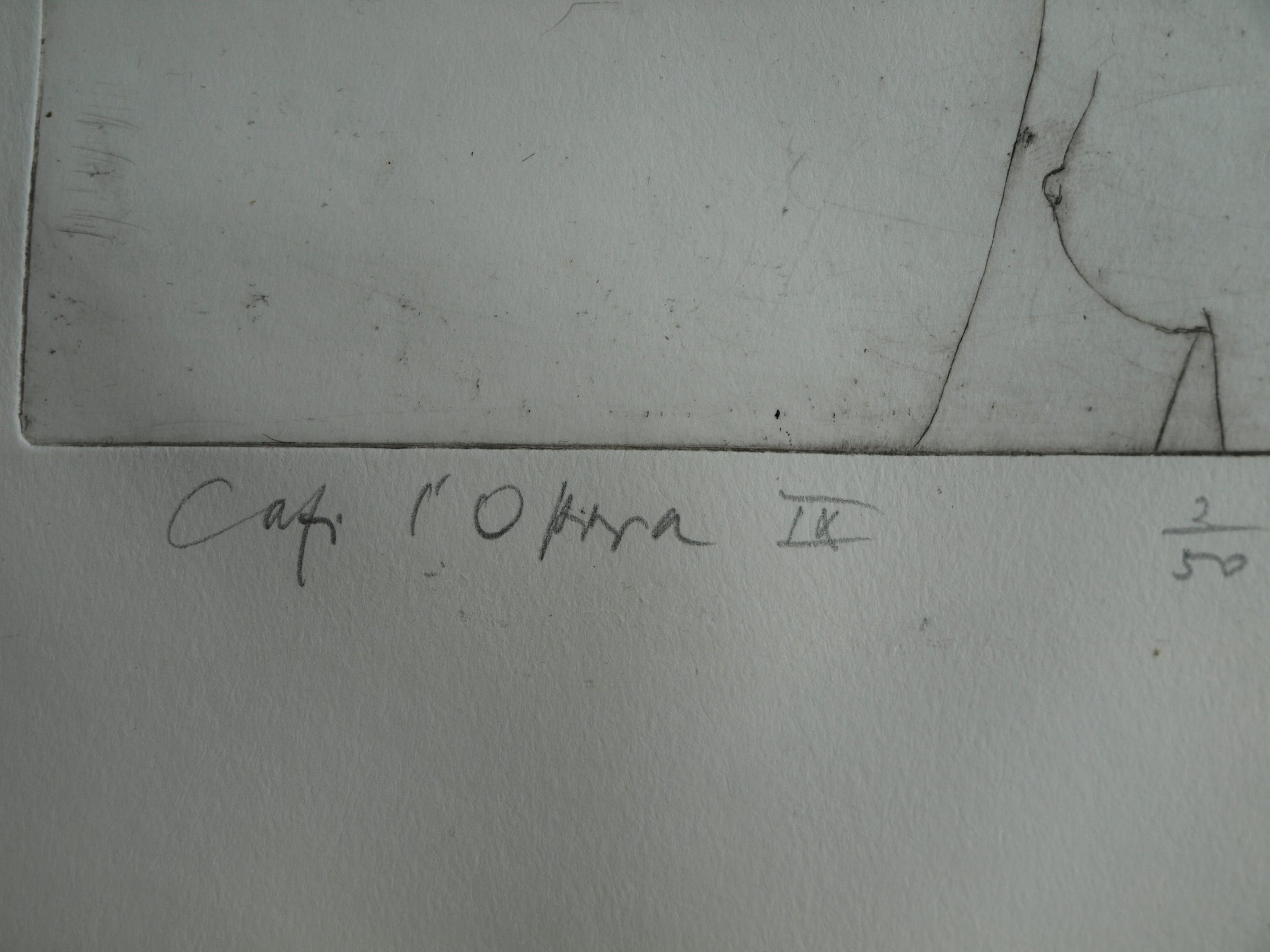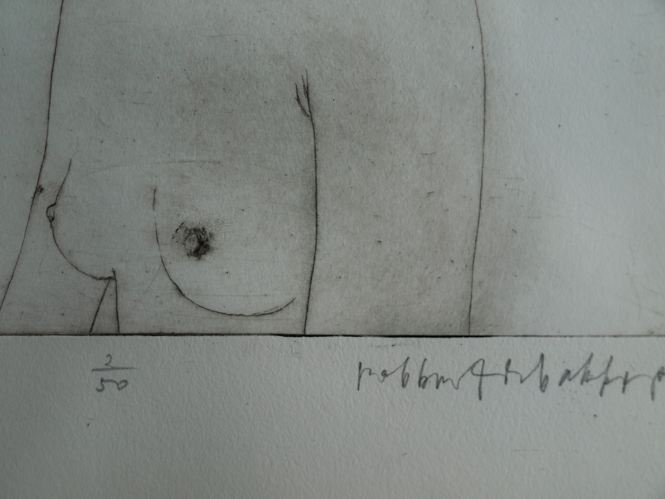 Een ingelijste droge naald ets uit 1991 van de Nederlandse kunstenaar (en meestervervalser?) Robbert de Bakker (1942).
