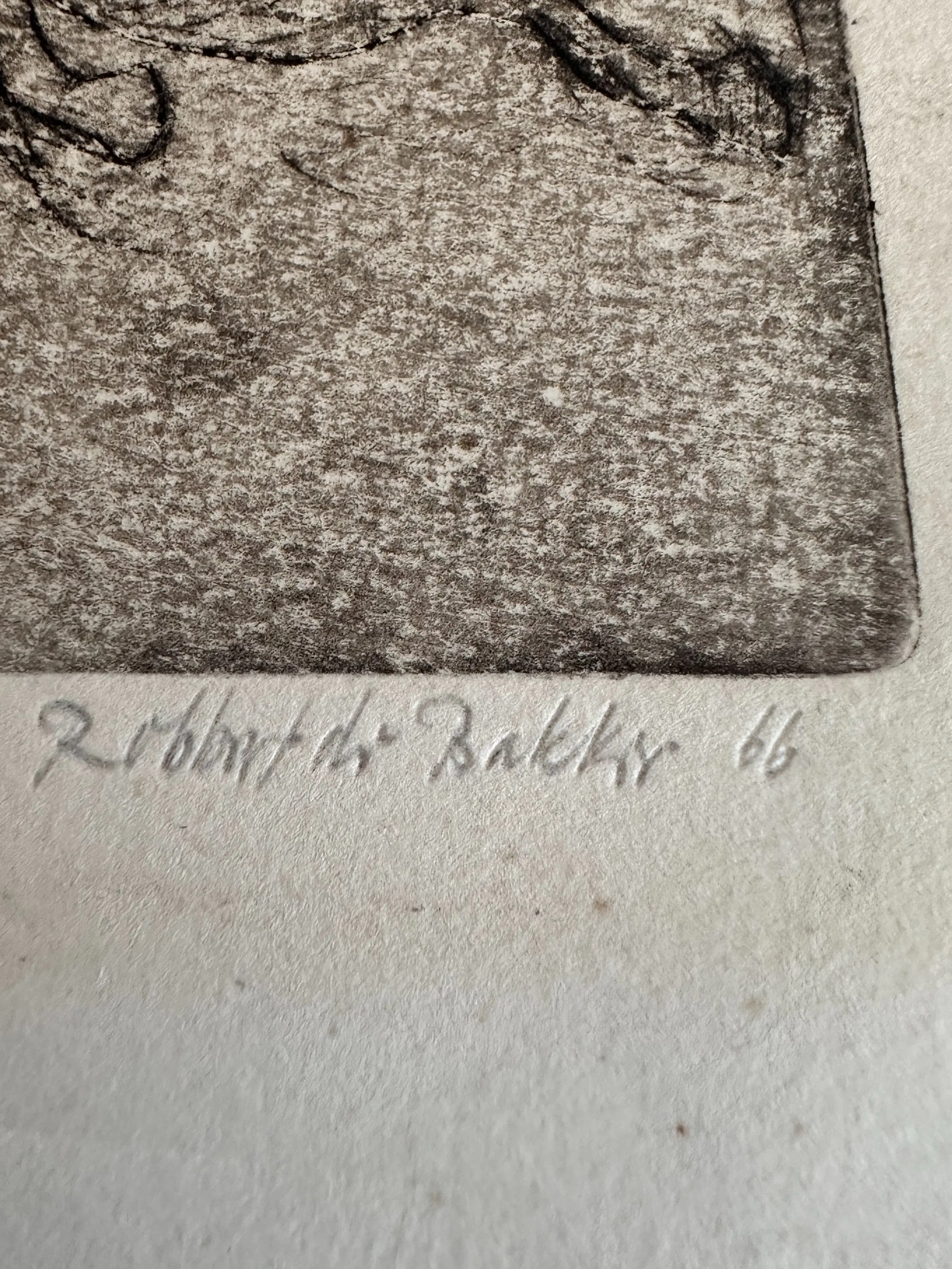 Een vroege ets van Robert de Bakker uit 1966 (handgesigneerd) , no 9/10 Niet Ingelijst