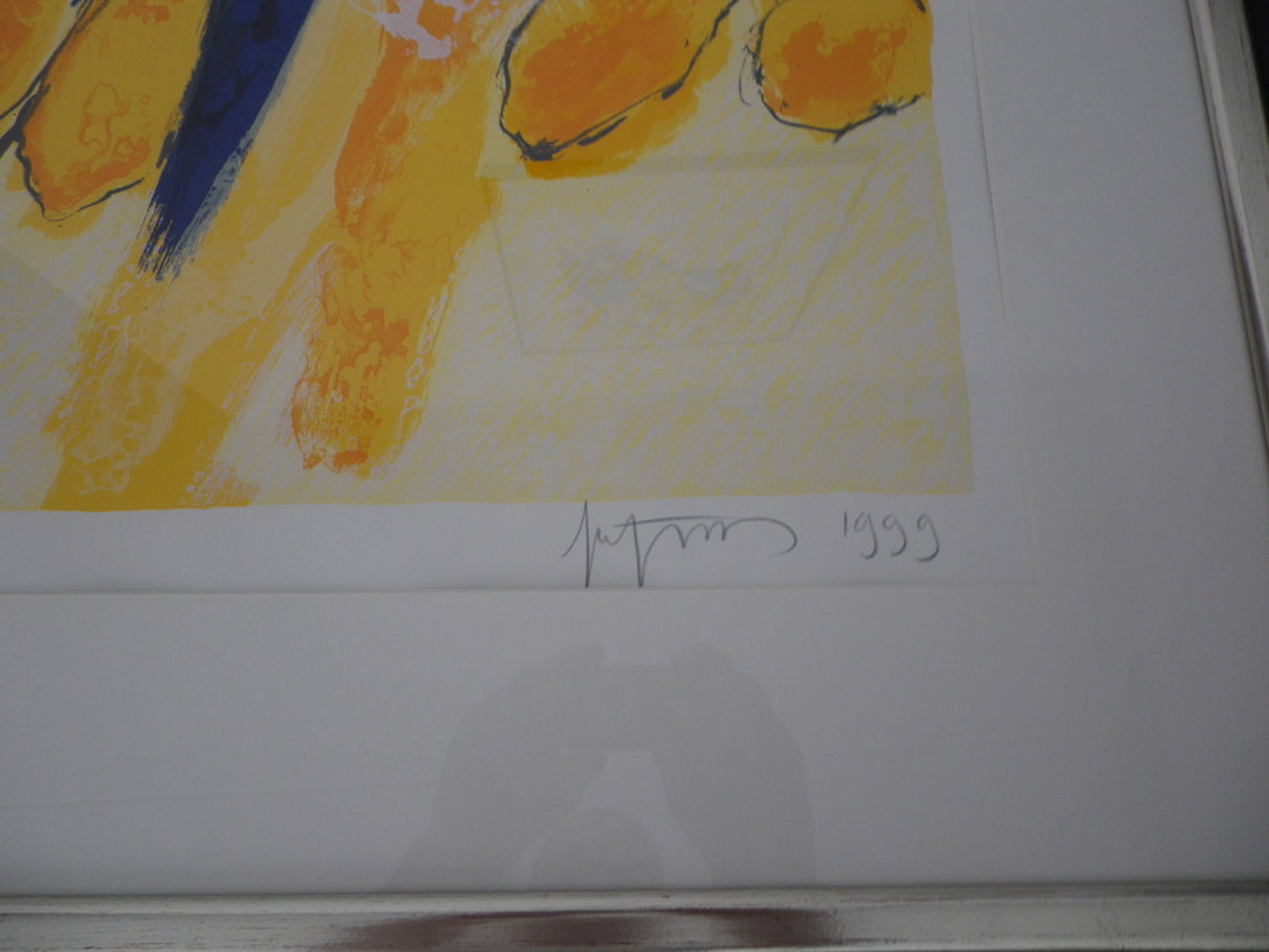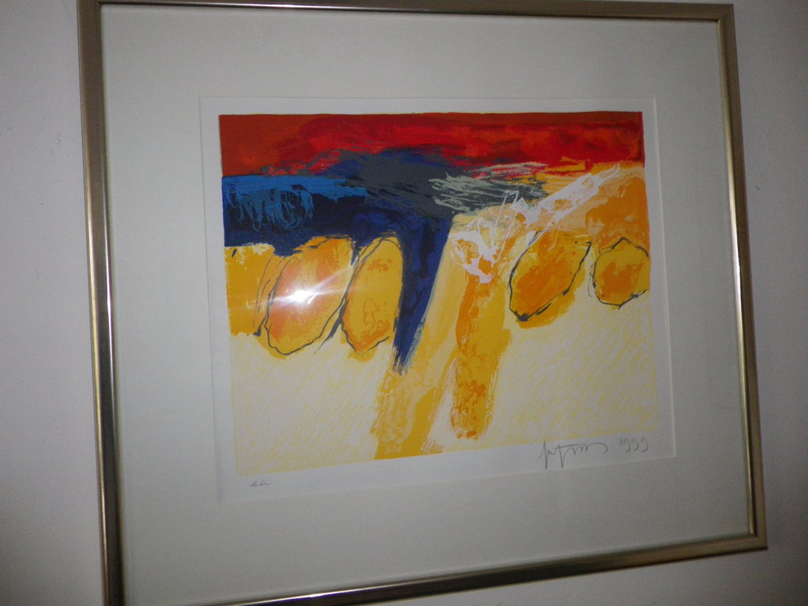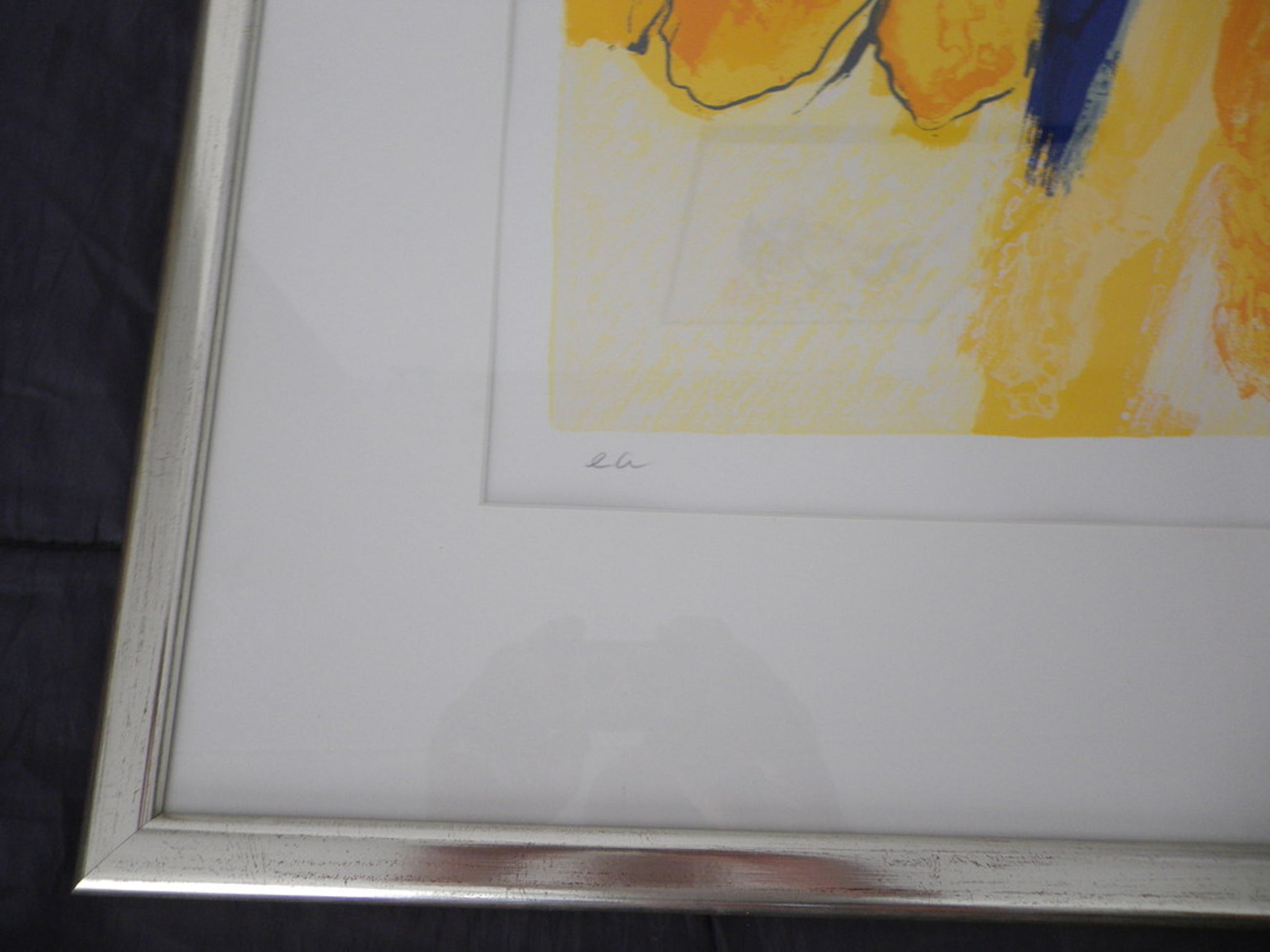 prachtige absracte zeefdruk van robert fortgens , ingelijst 70x60 cm , genummerd E-A en gesigneerd , supermooi en puntgaaf .