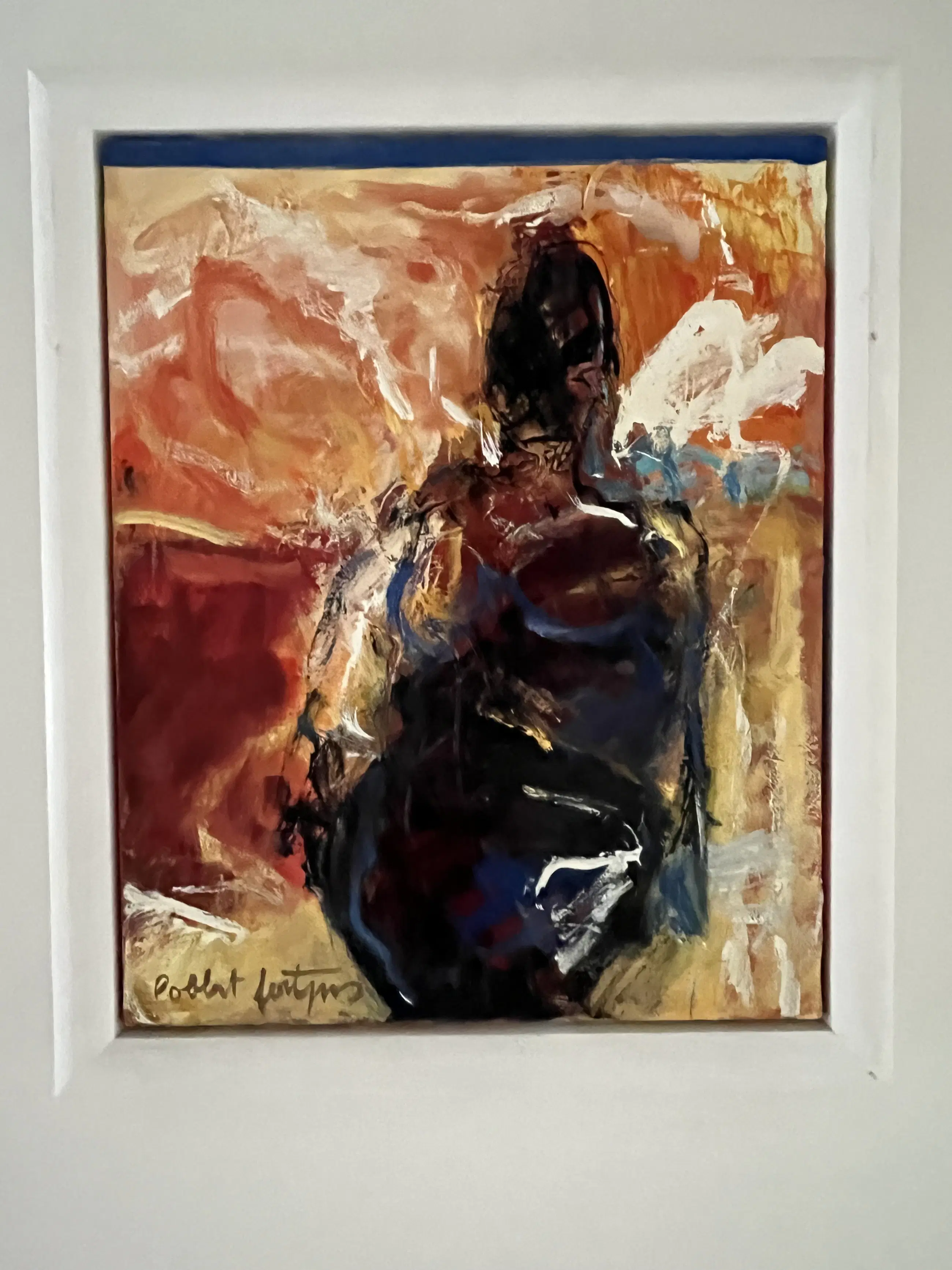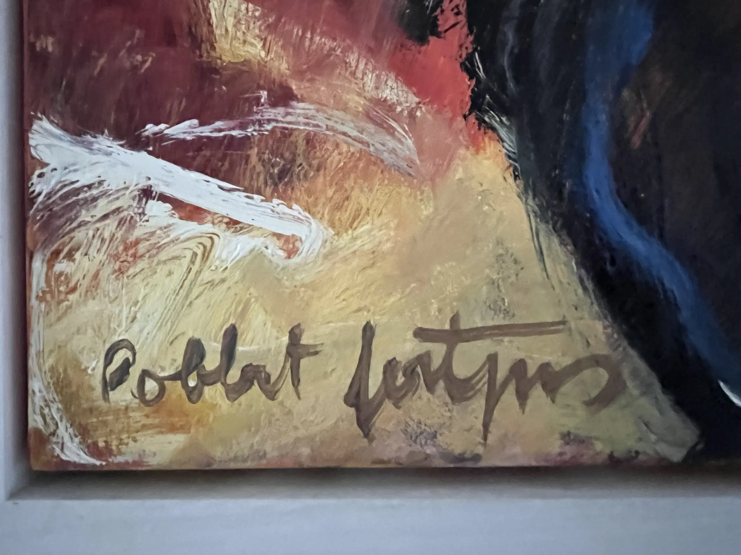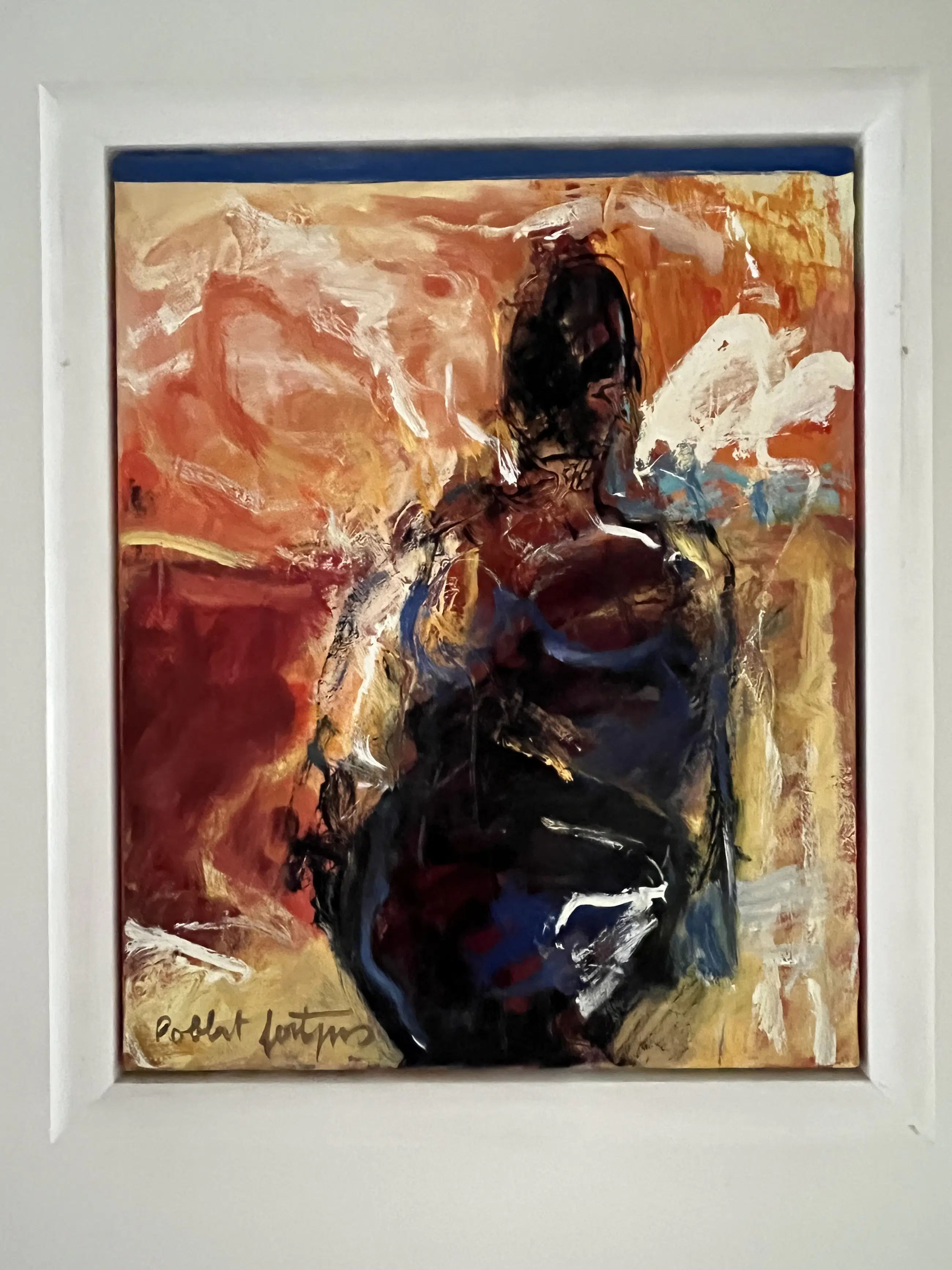 Fraai olieverf uit 1997, gelijst in witgeverfde houten baklijst. Lijst heeft lichte gebruikssporen. Afmeting inclusief lijst 58 x 48 cm.
