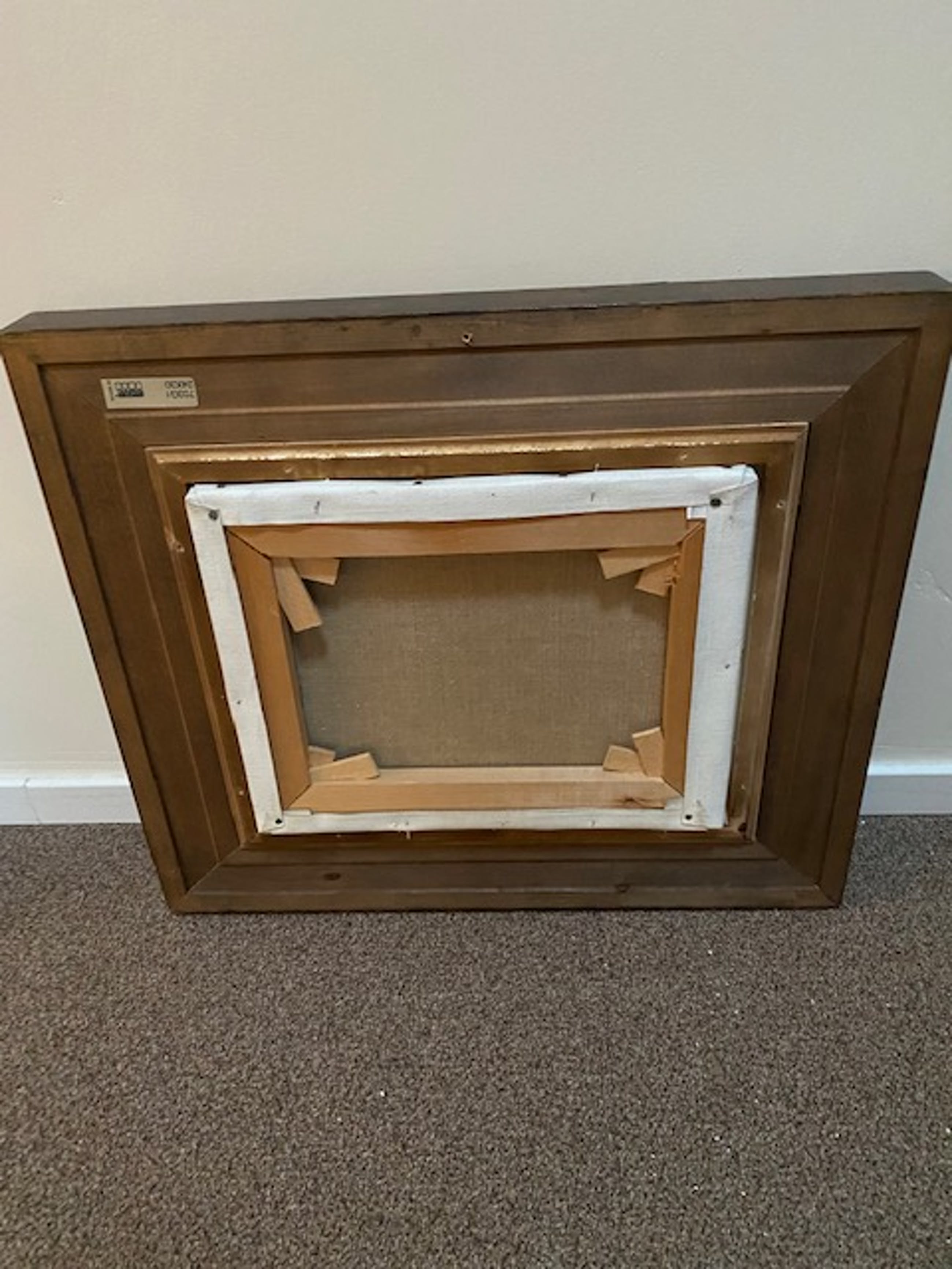 het werk is ingelijst in een houten en mooi gedecoreerde klassieke lijst welke enigszins gebruikssporen vertoont.