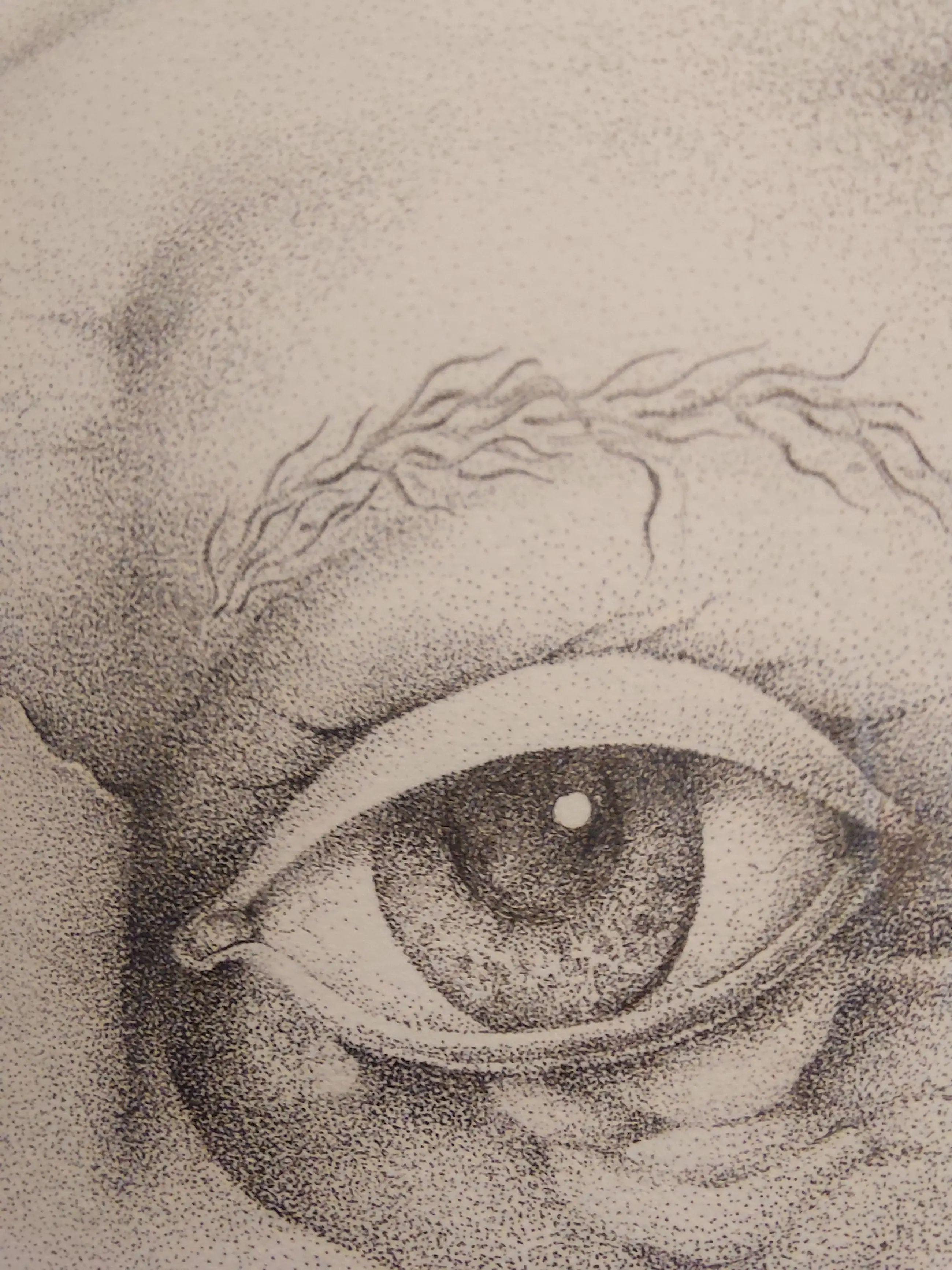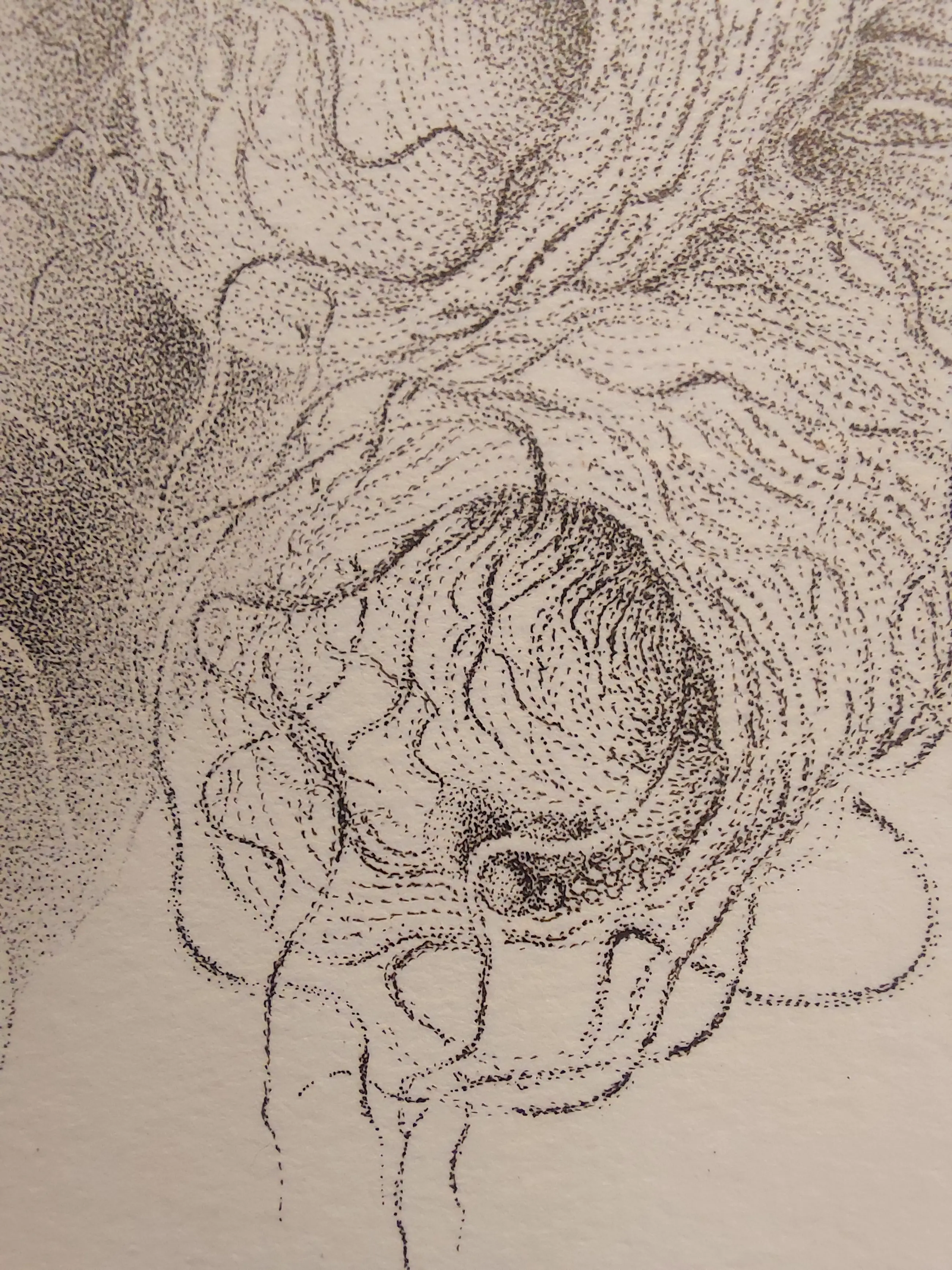ROBERT FRANKEN - Een Fabel Pentekening, pointillisme. De nummering is niet zichtbaar, wellicht weggevallen onder het passe-partout.