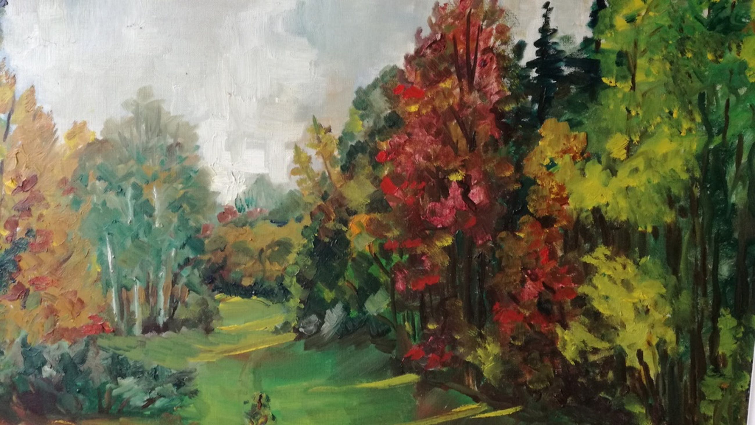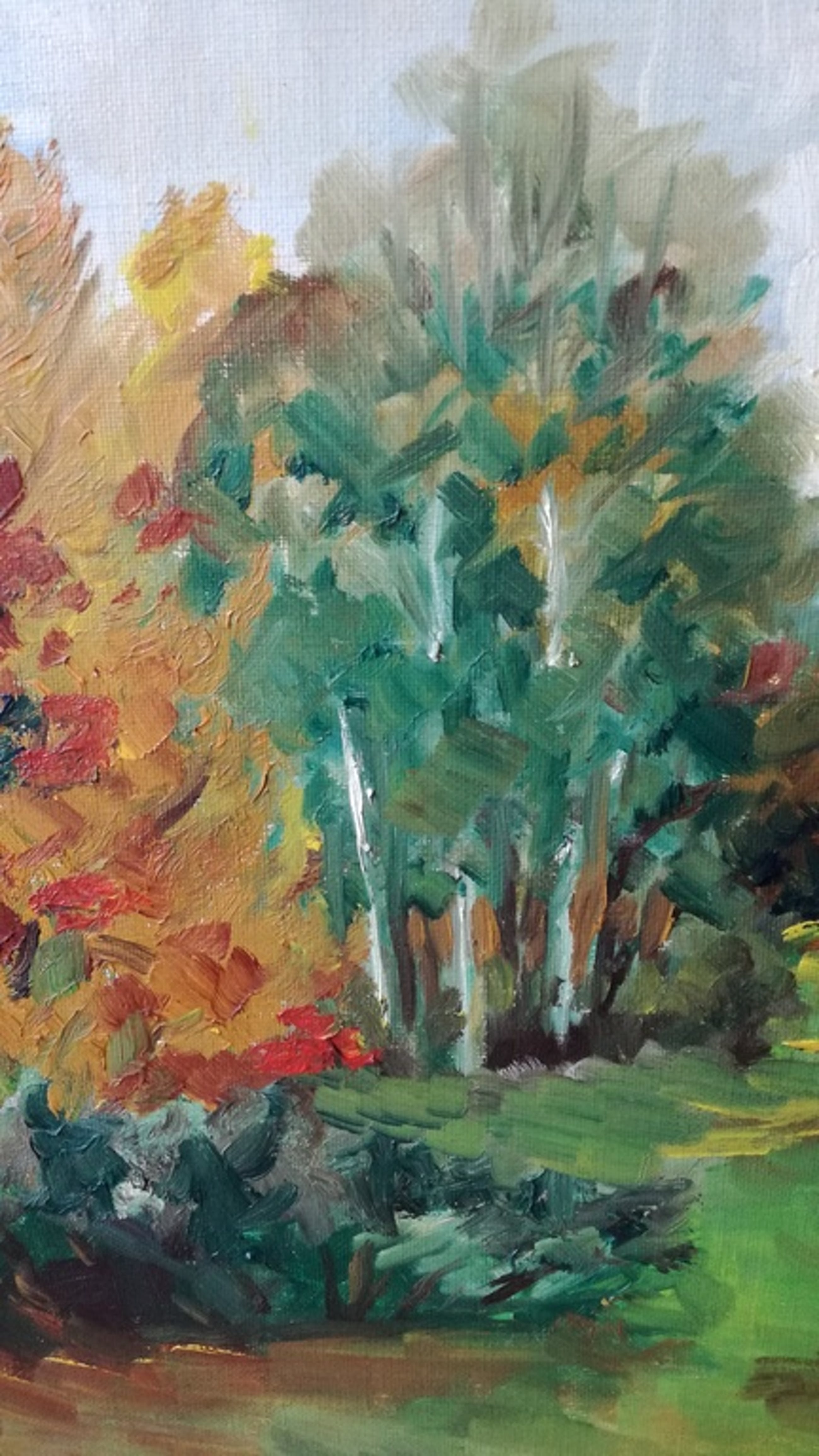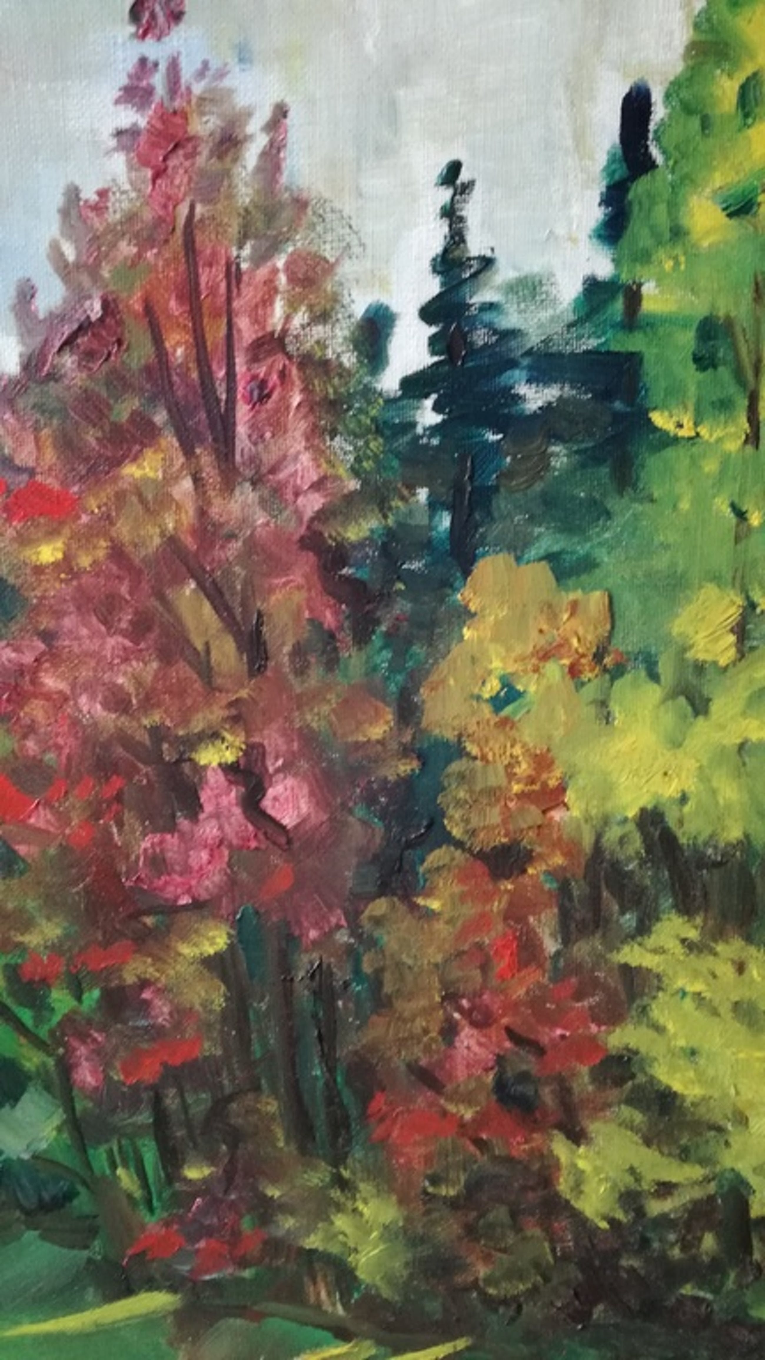 Realistische weergave van de herfstkleuren in het bos. Mooie verfstructuur,