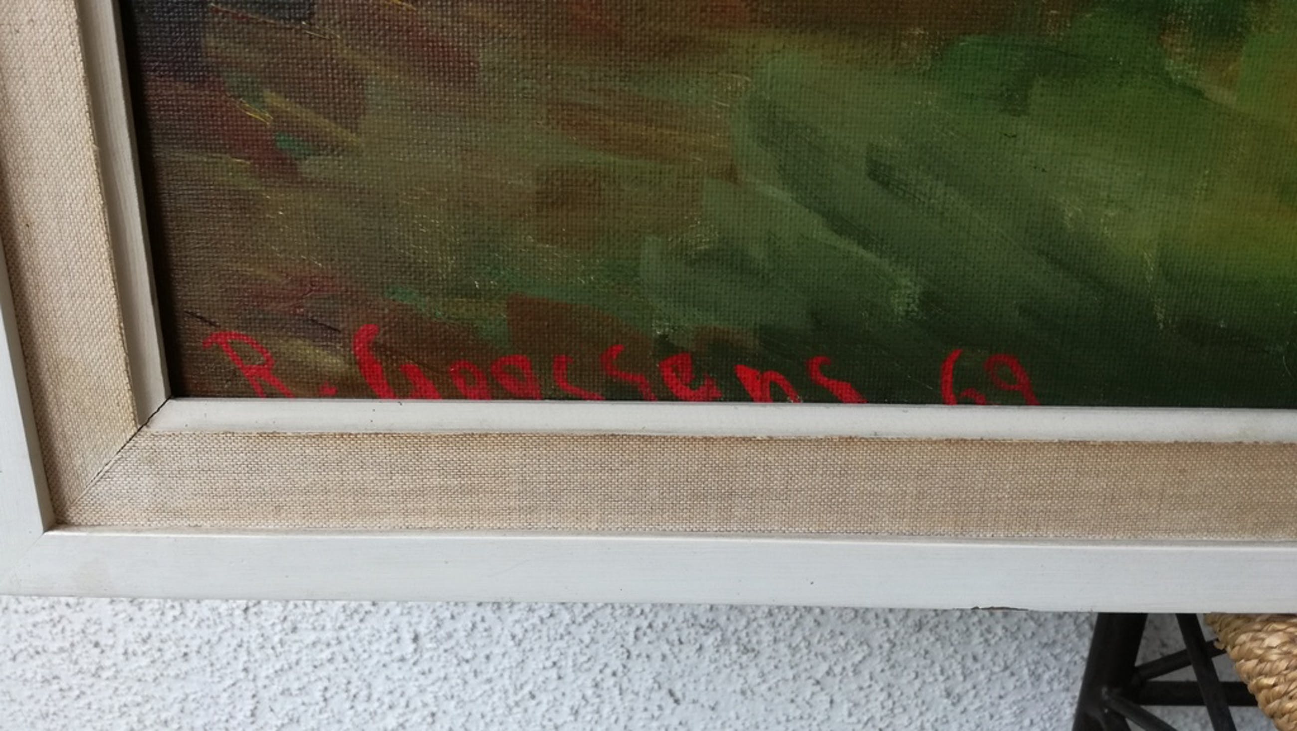 Het werk is in zeer goede staat. mooi ingekaderd.