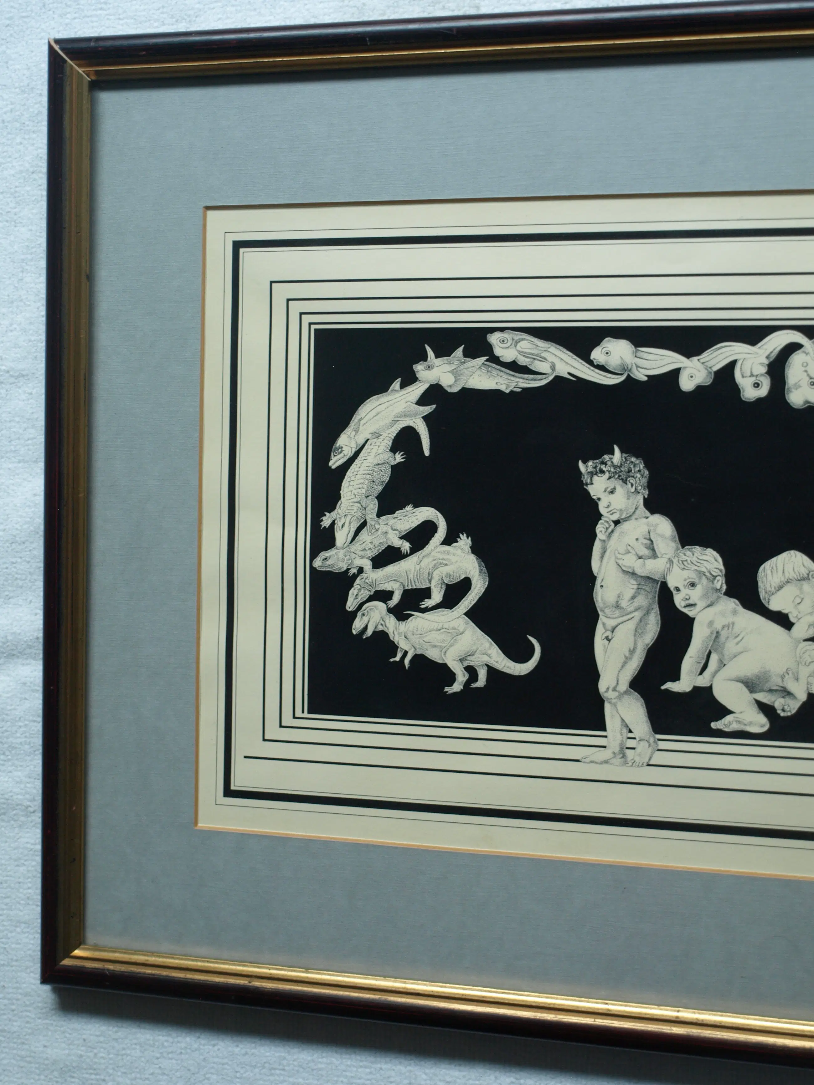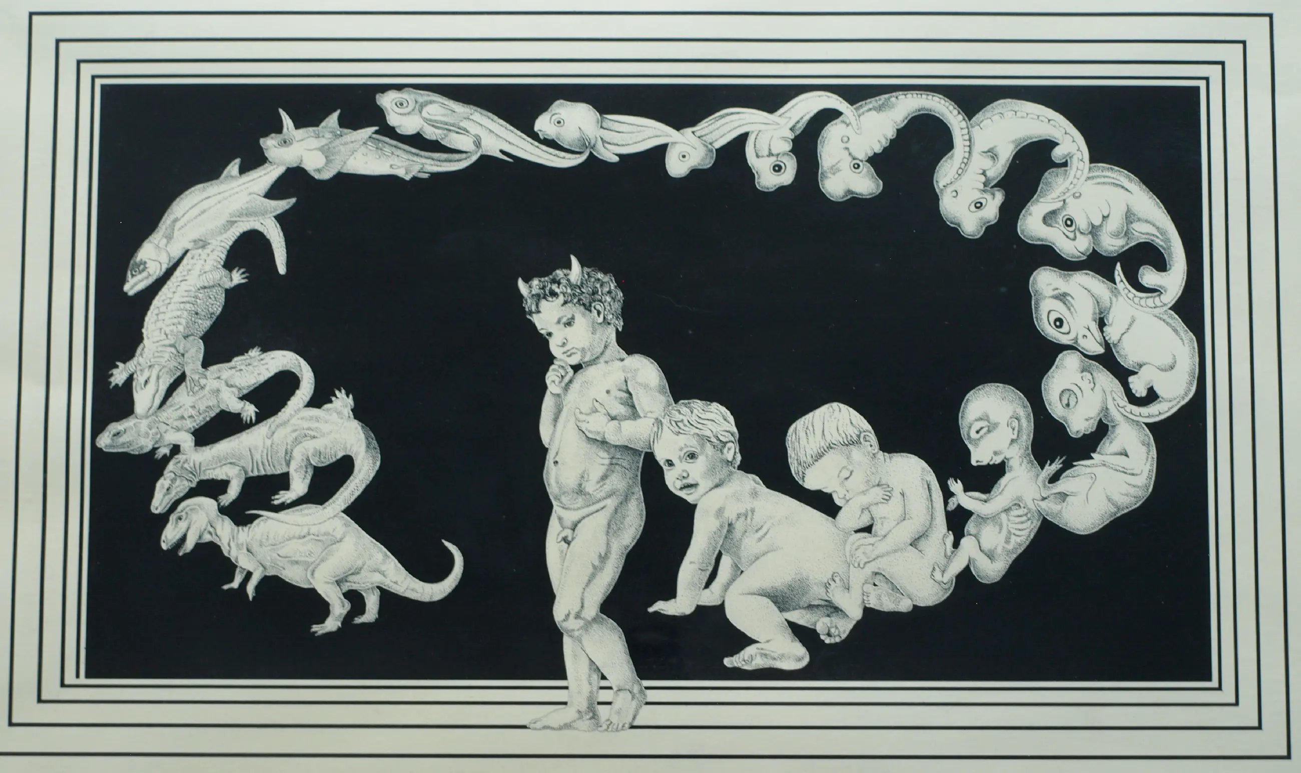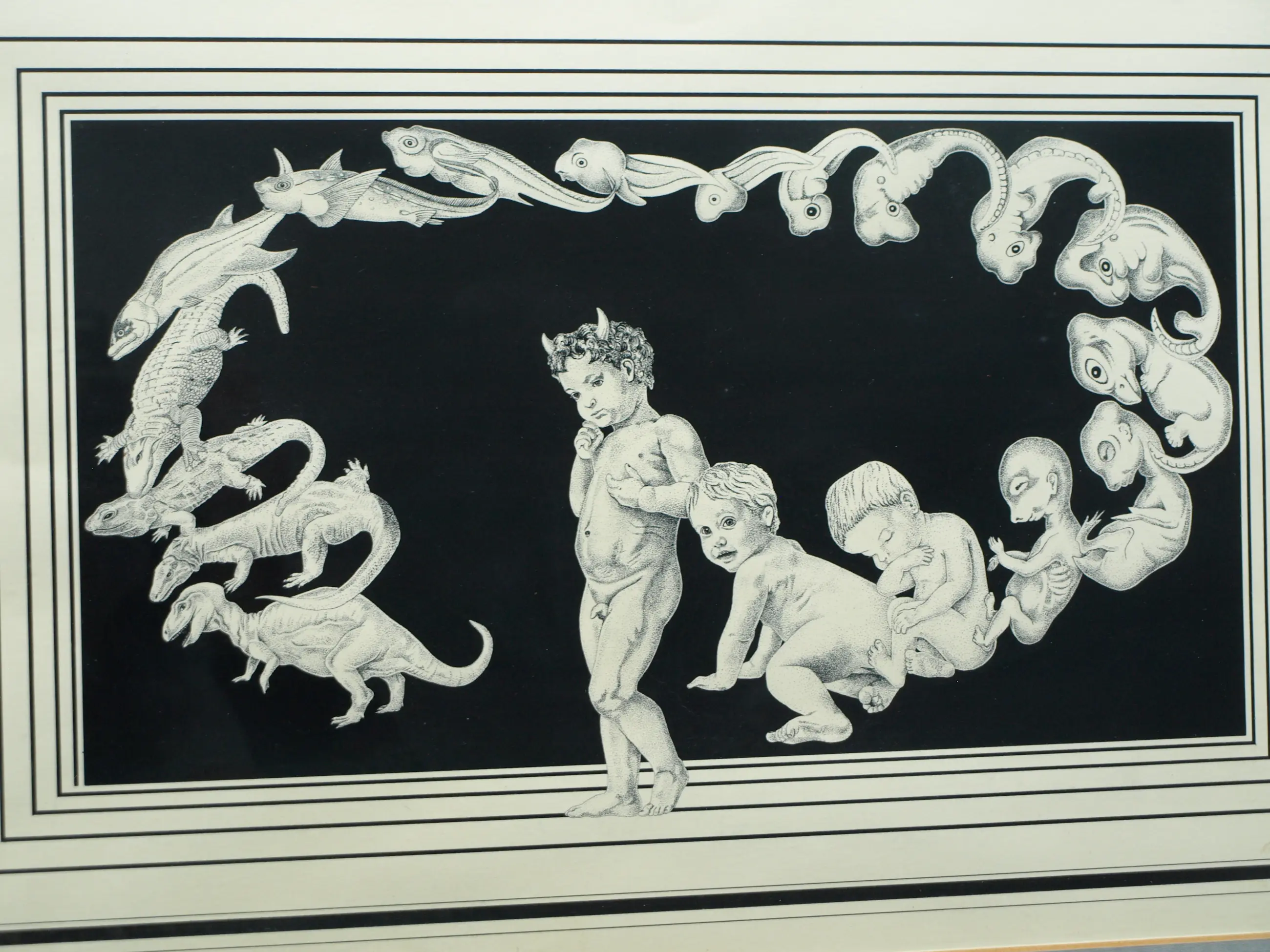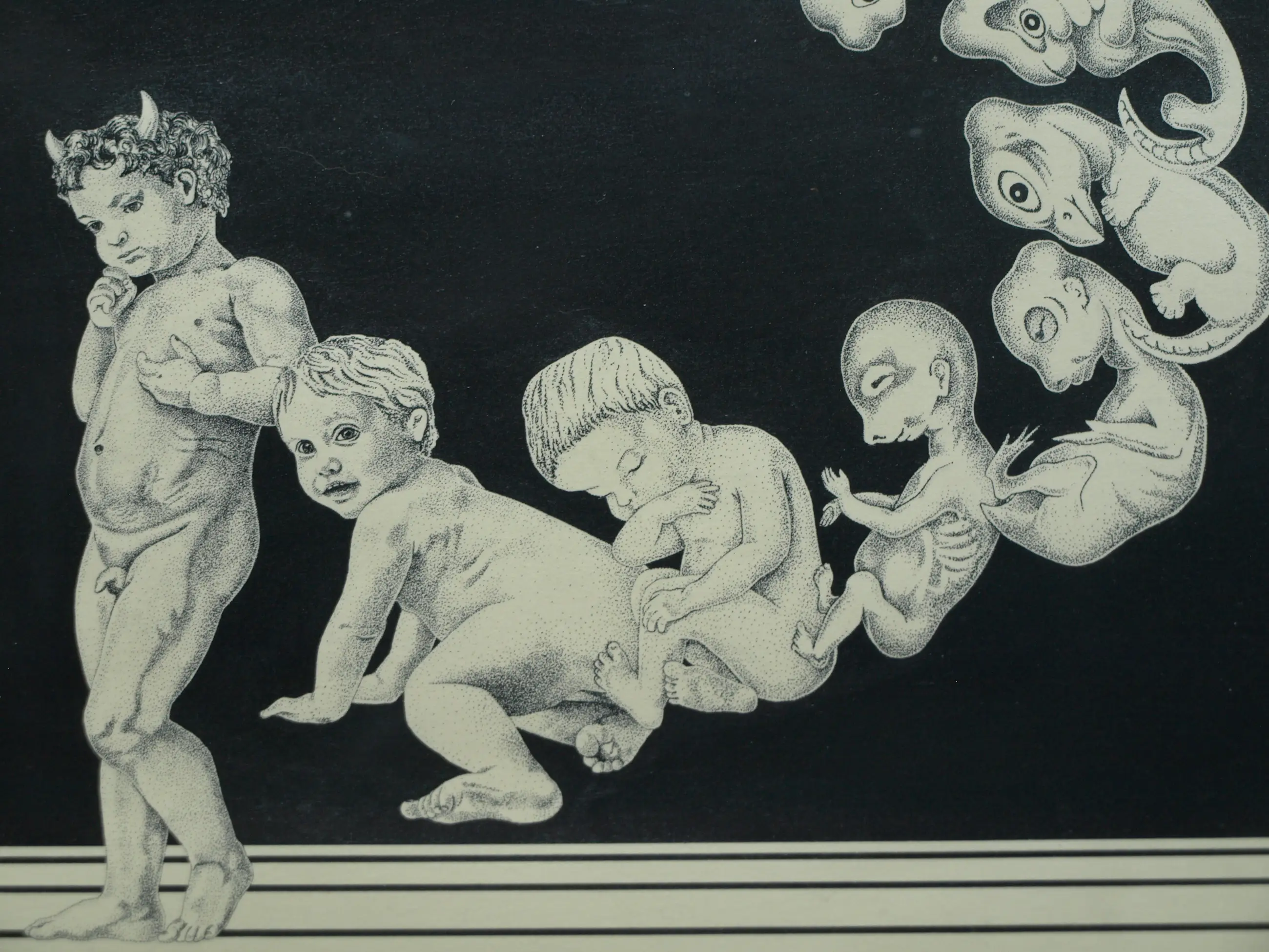 Robert Hallatu - Ingelijste inkttekening , ‘Kringloop…’ – 1978 – Lijst, 49 x 64 cm.