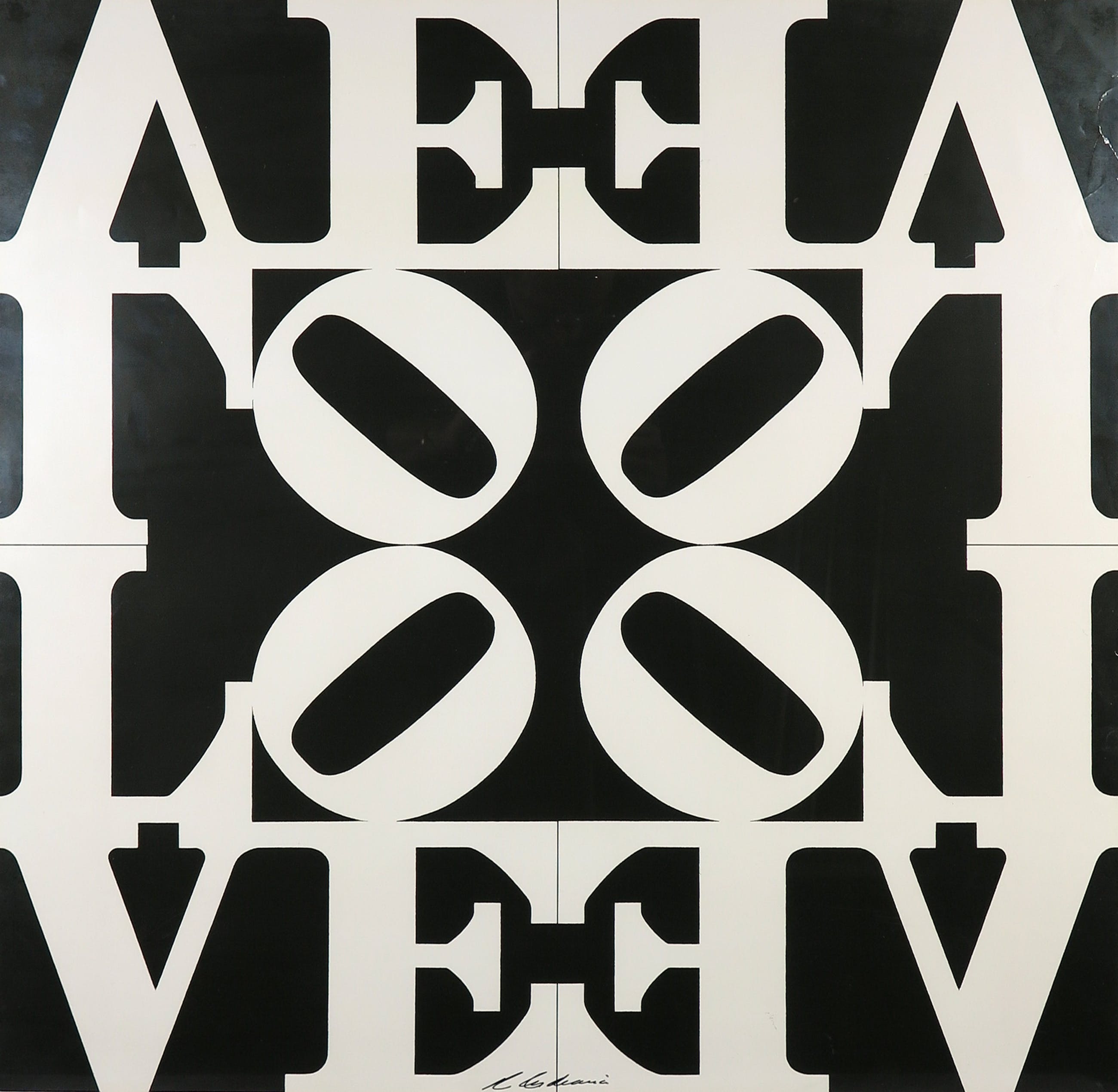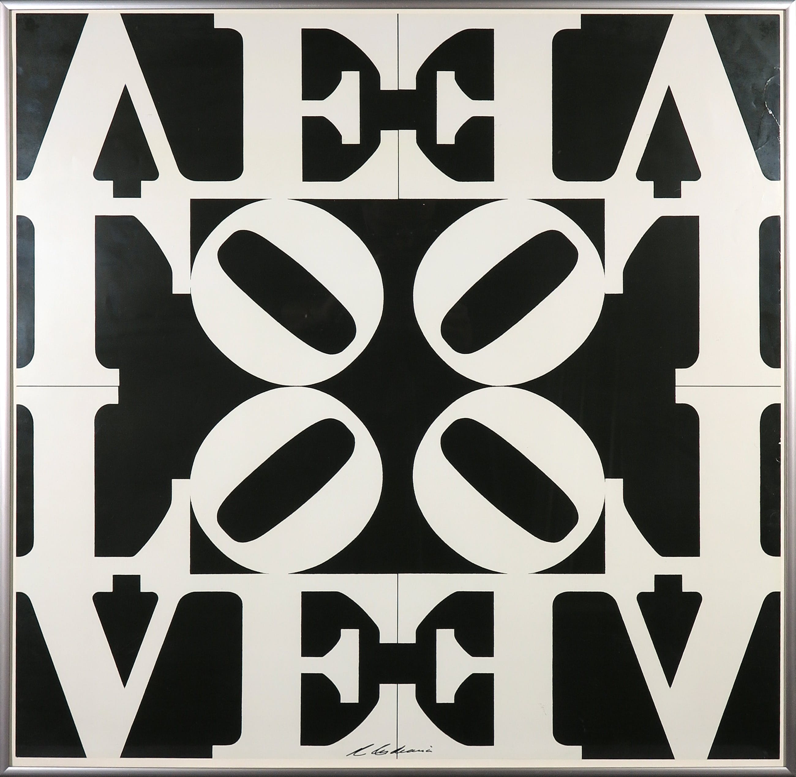 Handgesigneerd offset-gedrukt exemplaar van het beroemde ontwerp 'Love', in zwart-wit uitgevoerd.