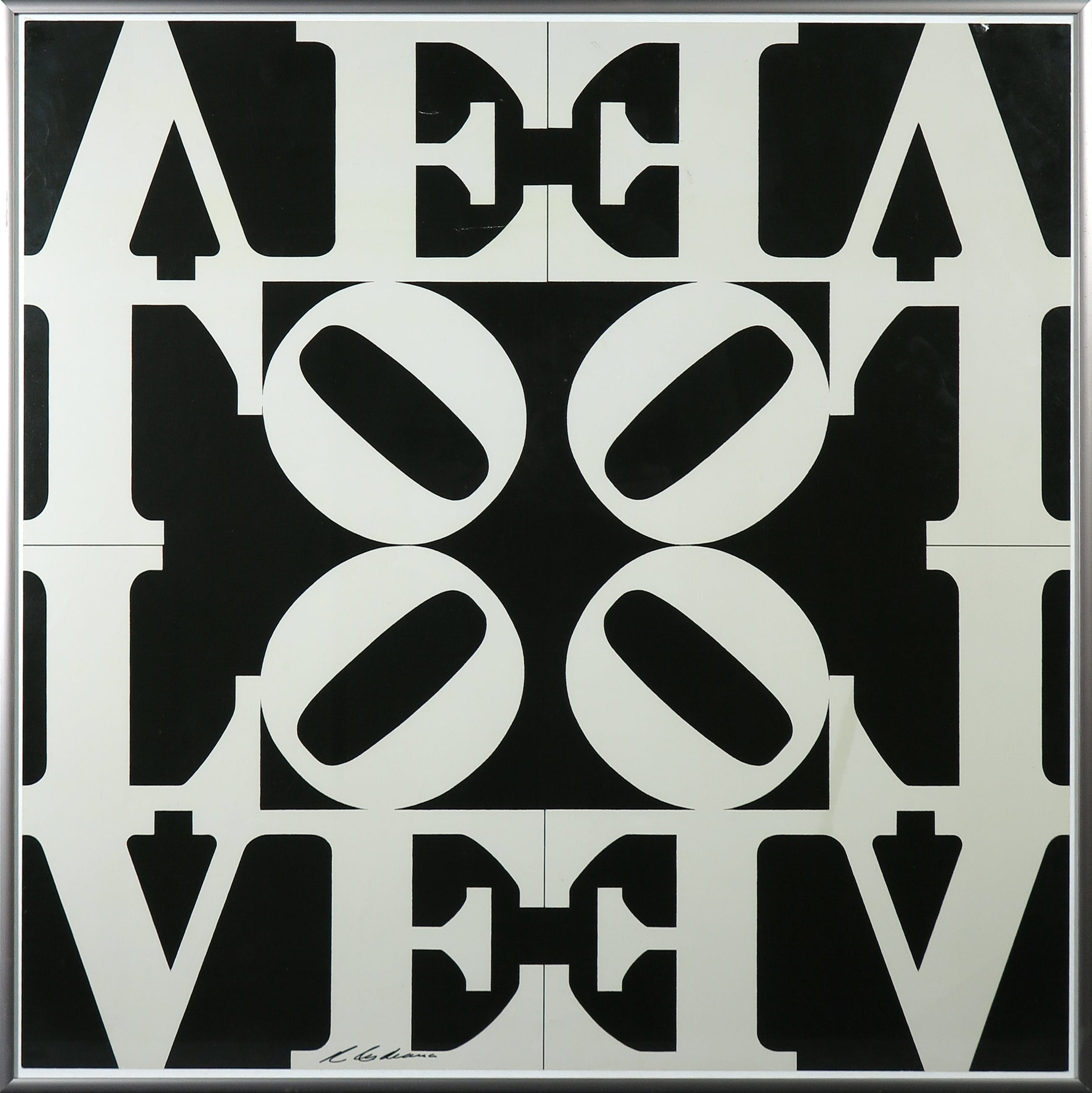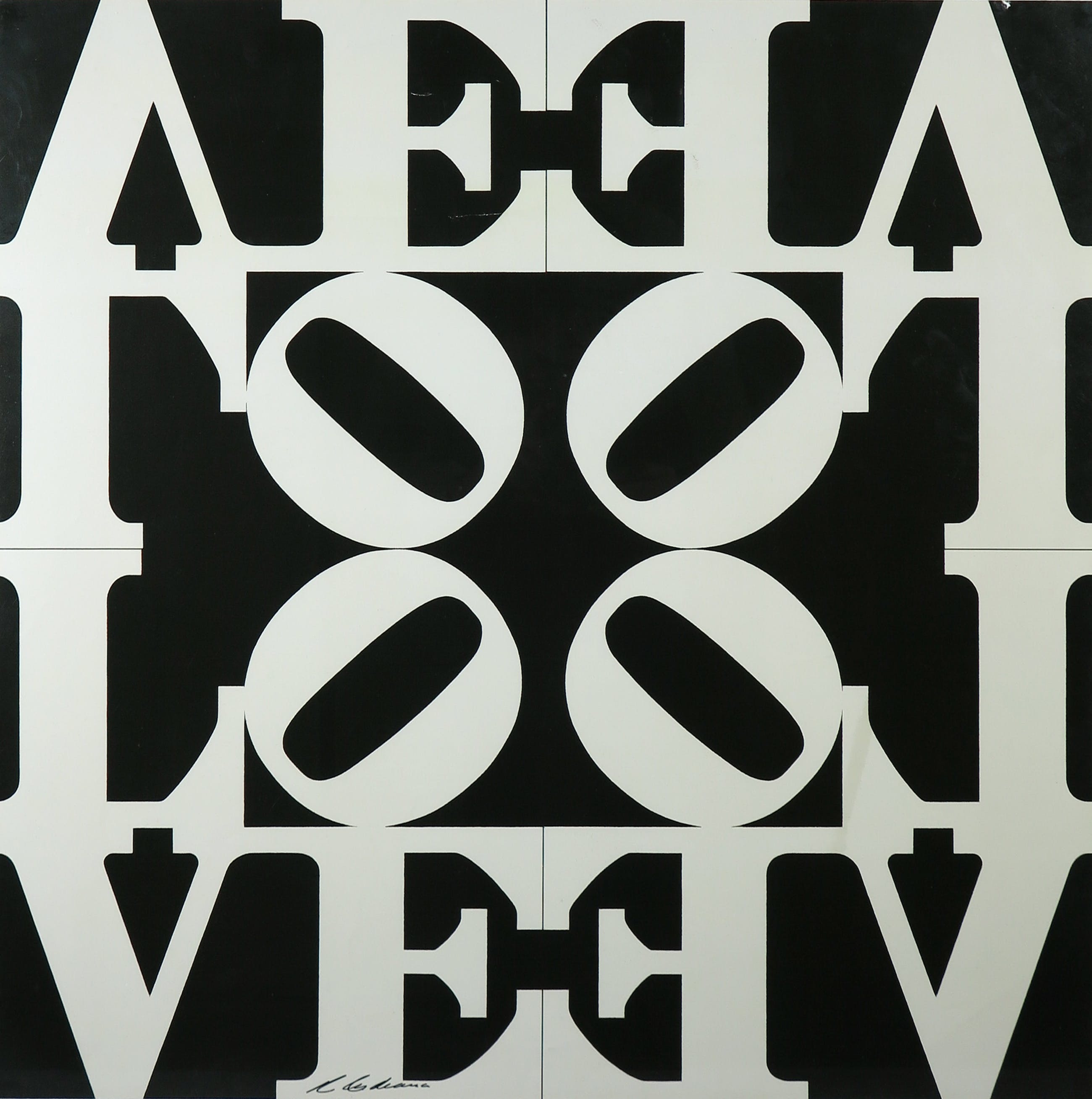 Handgesigneerd offset-gedrukt exemplaar van het beroemde ontwerp 'Love', in zwart-wit uitgevoerd.