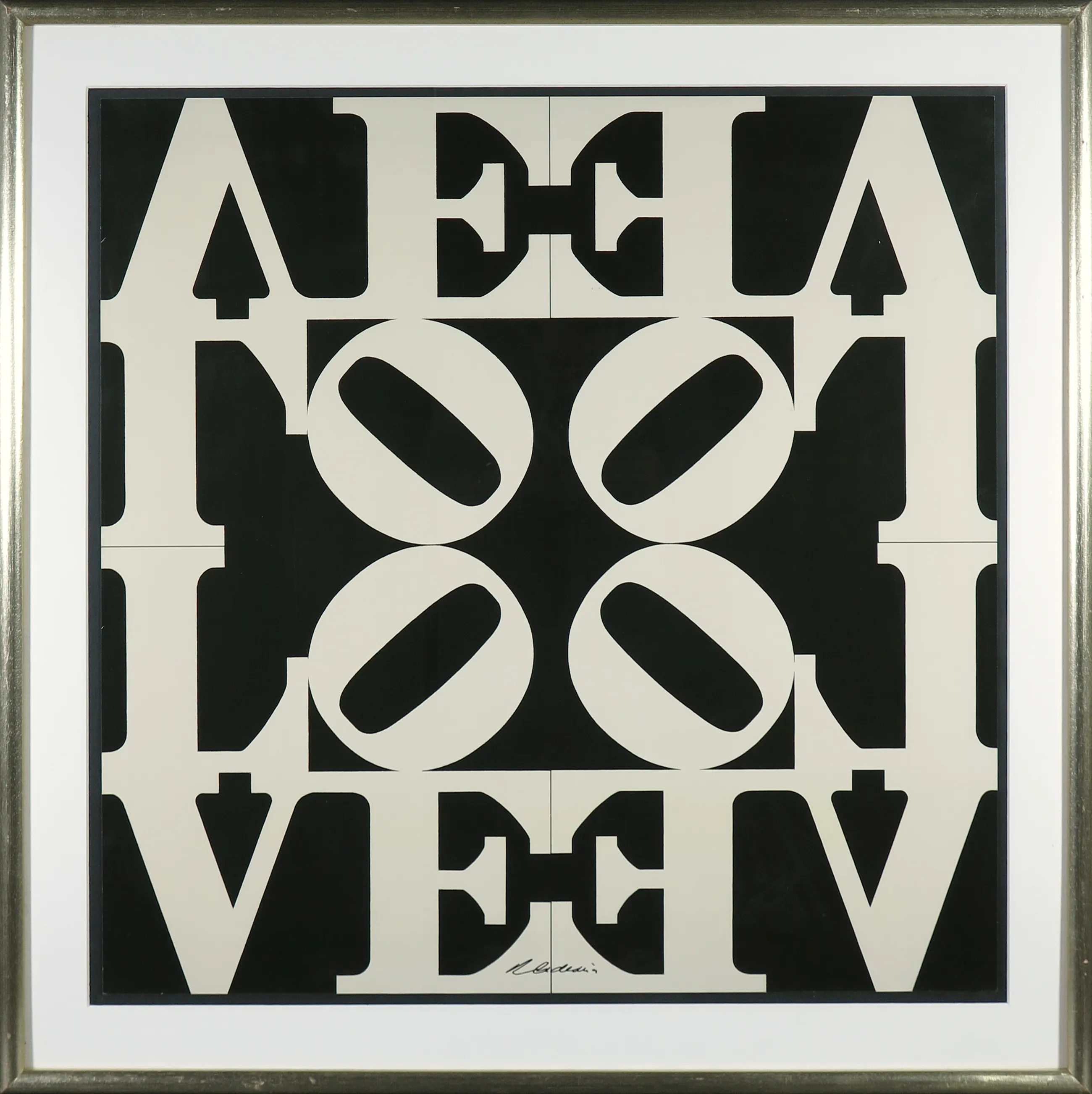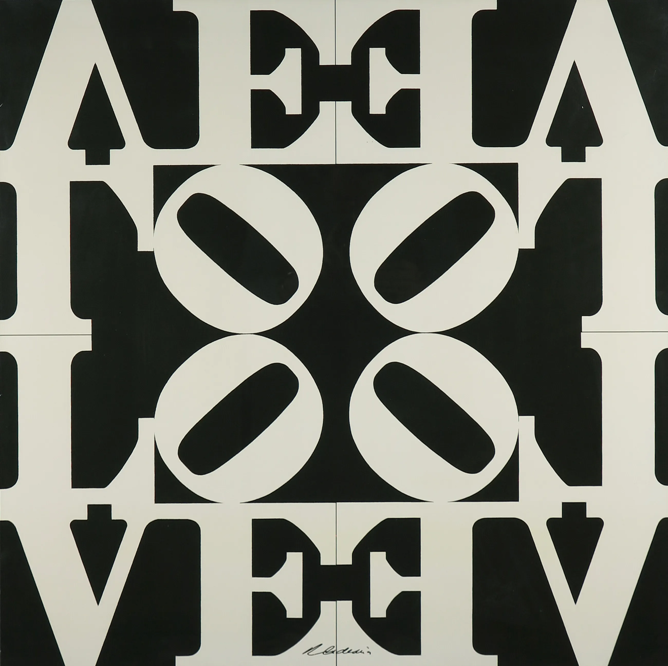 Handgesigneerd offset-gedrukt exemplaar van het beroemde ontwerp 'Love', in zwart-wit uitgevoerd.