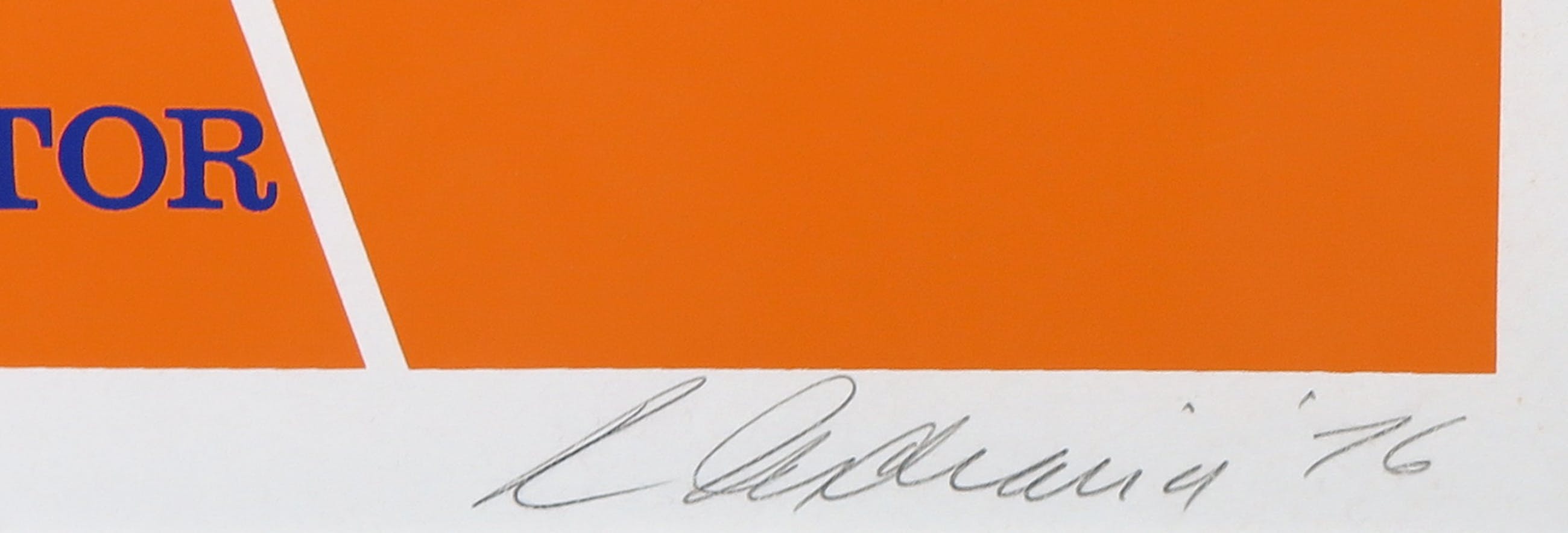 Deze zeefdruk is ook als, ongenummerd, affiche uitgegeven waarbij het wit vervangen werd door zilver.