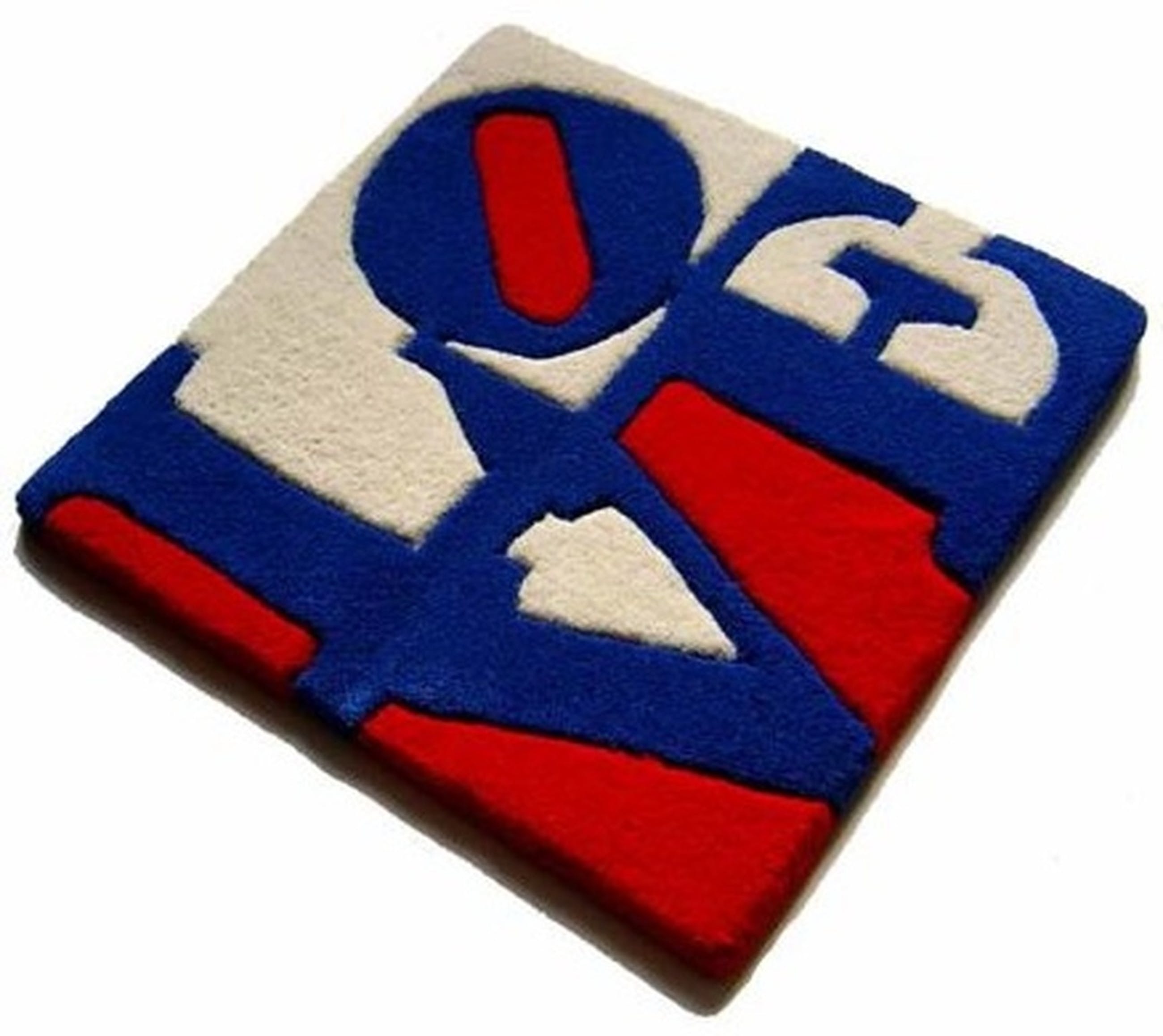 Hoogwaardig wollen wandtapijt met het bekende ontwerp van Robert Indiana. Het wandtapijt is genummerd en drukgesigneerd op het certificaat. Elk afzonderlijk tapijt is met veel vakmanschap met de hand gemaakt door 1 tufter.