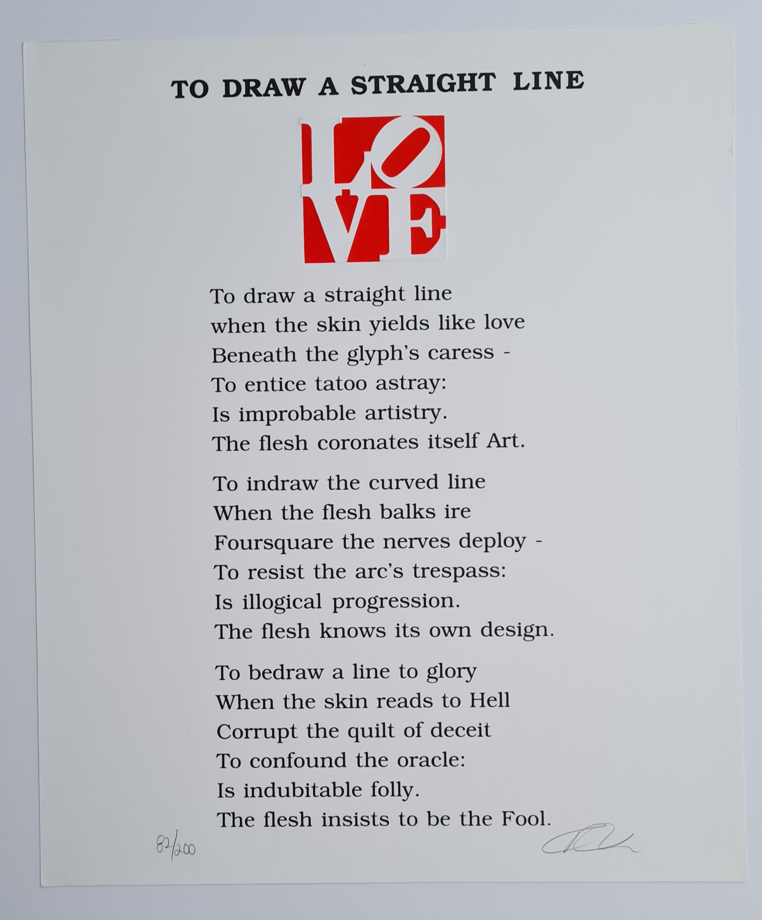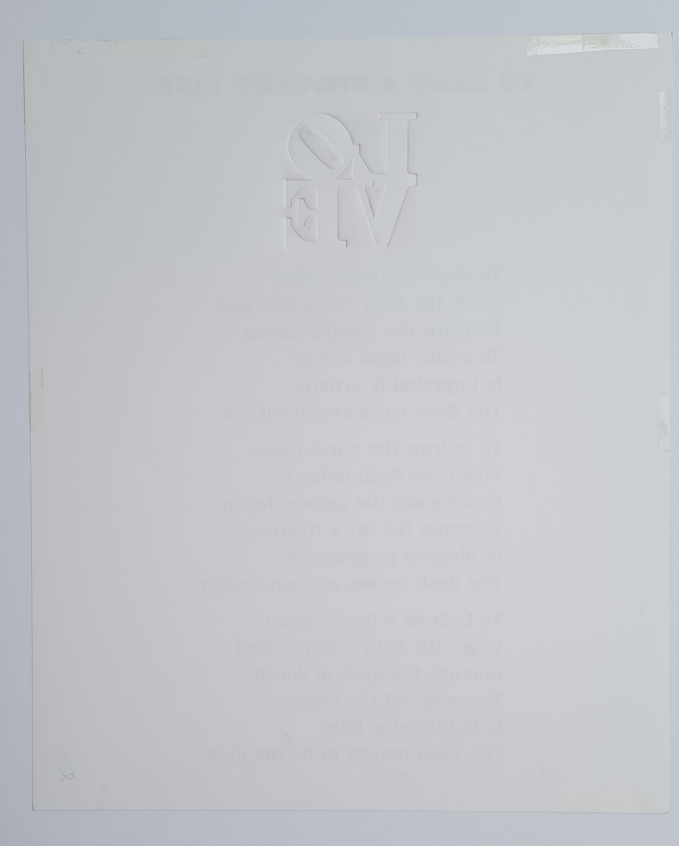 Originele preeg/ zeefdruk en letterpress tekst, gemonogrammeerd en genummerd in potlood.