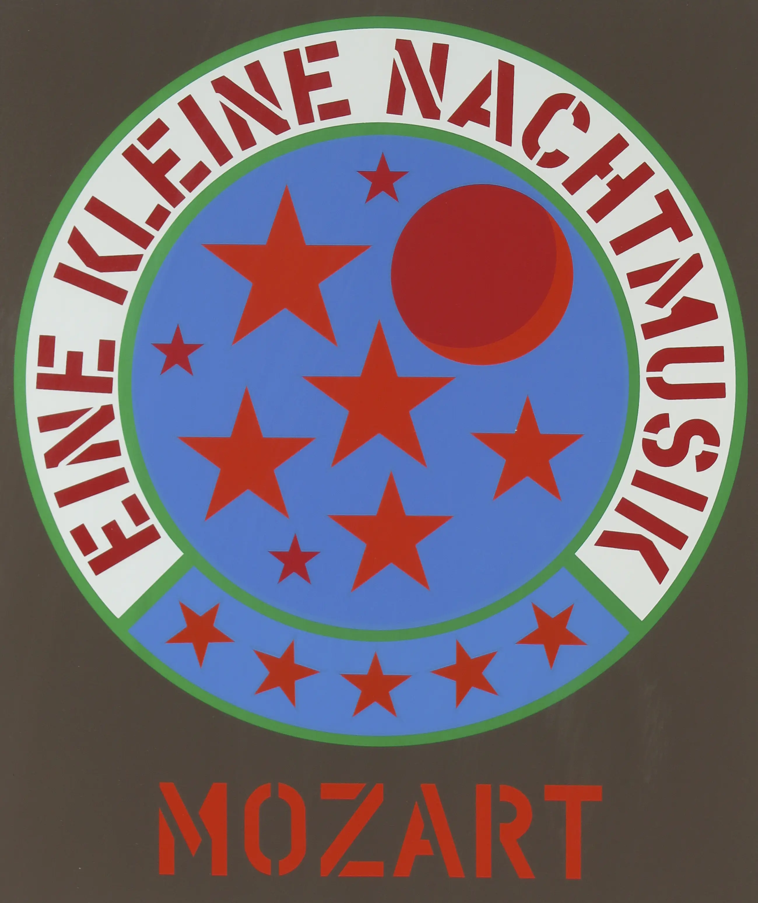 Zeefdruk (ingelijst kalenderblad) 'Eine Kleine Nachtmusik' door Robert Indiana.