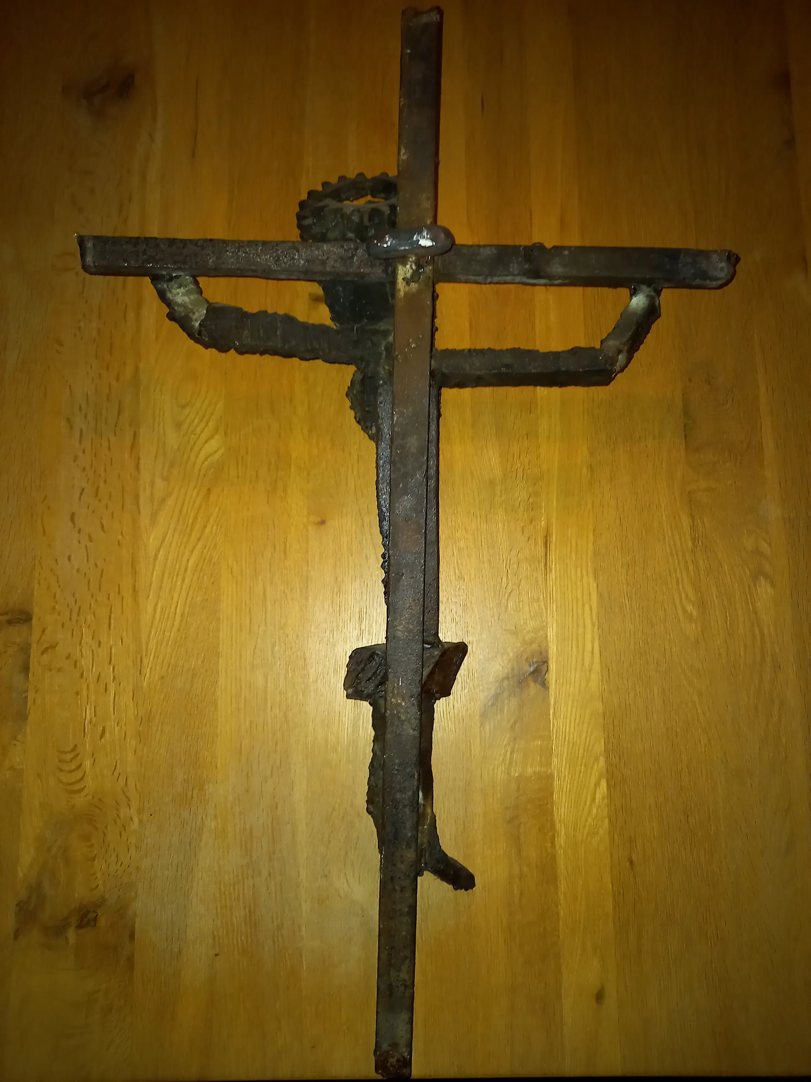 Mooi kruisbeeld gemaakt door de Deense kunstenaar Robert Jacobsen. Dit beeld komt uit de erfenis van mijn stiefvader, wiens vader, de bekende dominee Friedrich Robert August Henkels het beeld zelf ophaalde bij de kunstenaar in Frankrijk. Hiervan heb ik nog een krantenartikel.