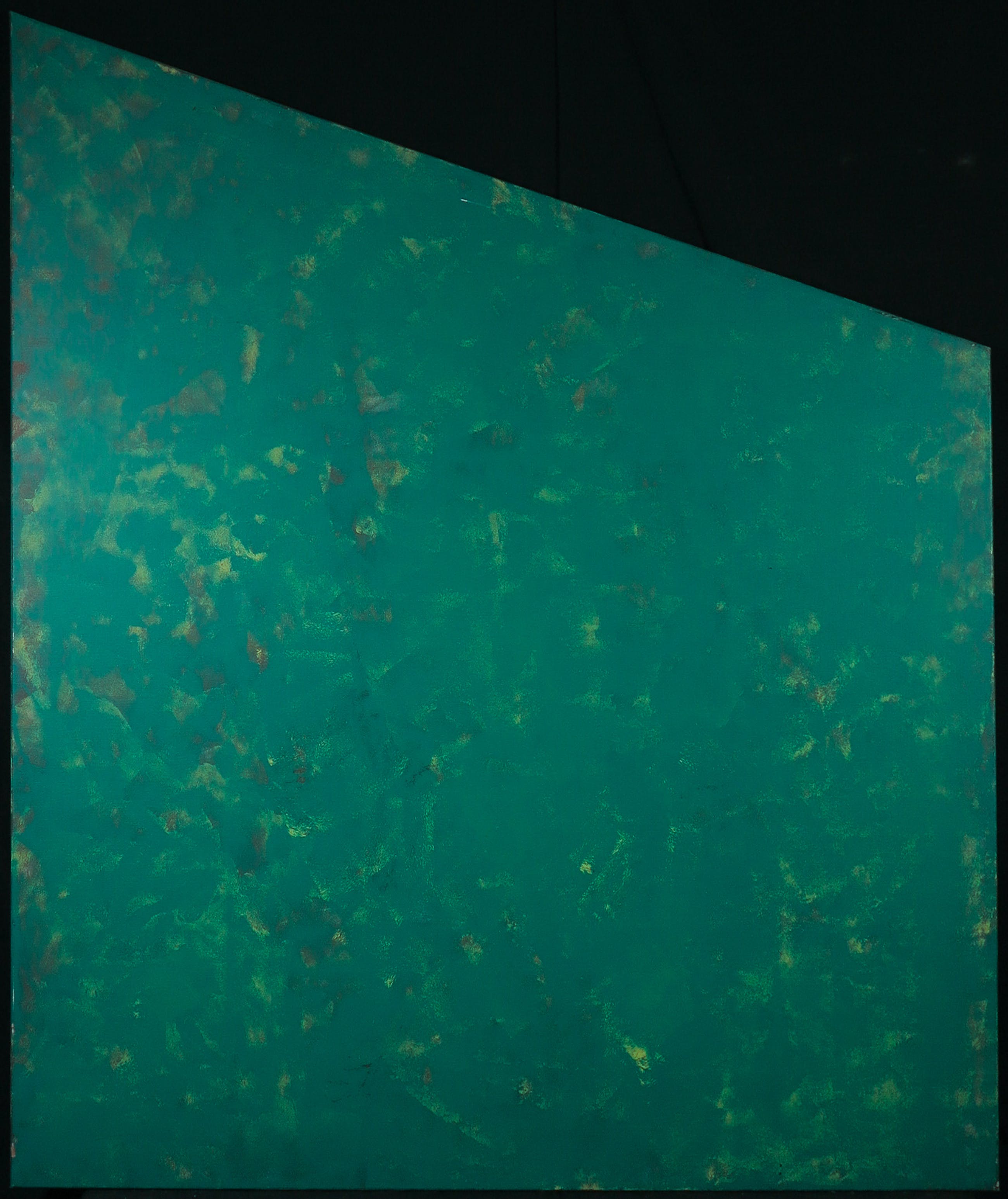 Op de eerste afbeelding is het werk te zien zoals deze volgens de instructie op de achterzijde van het spieraam gehangen moet worden.